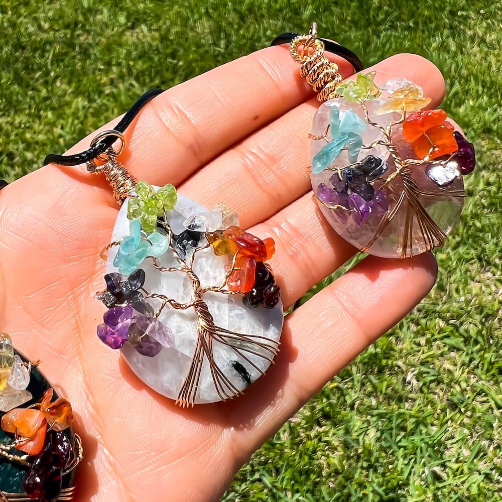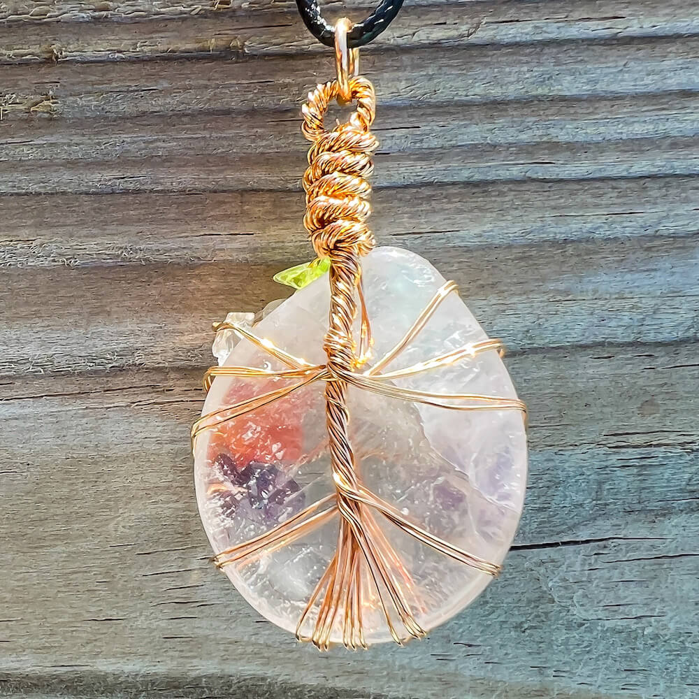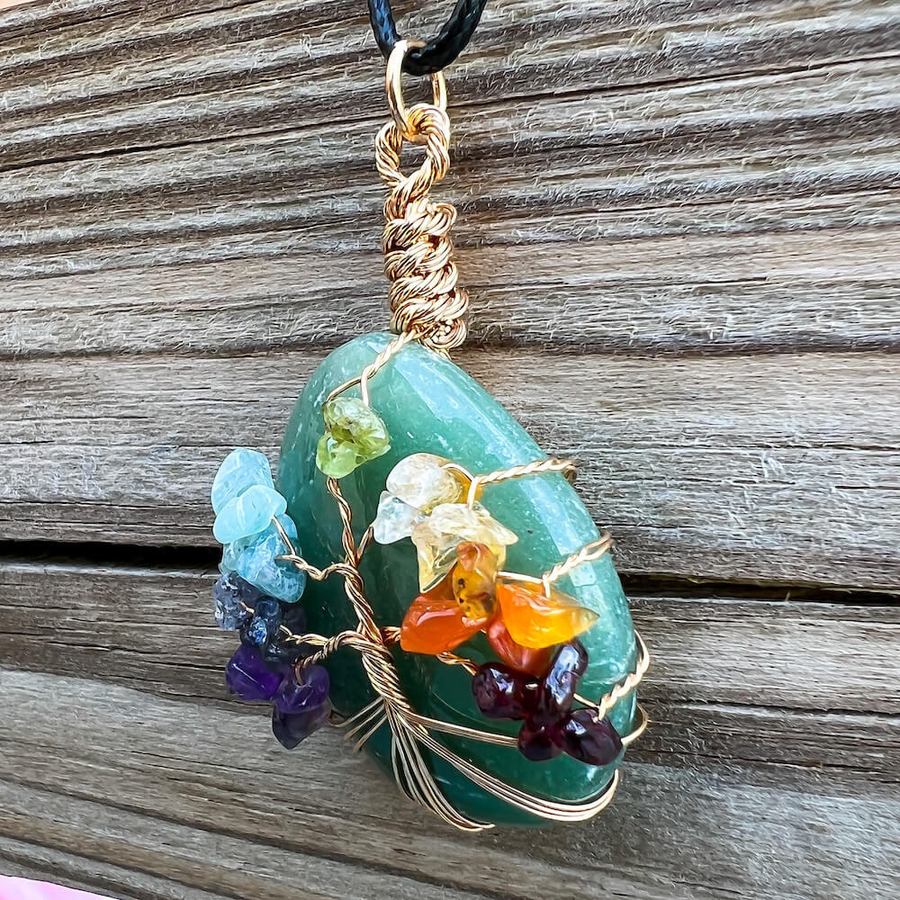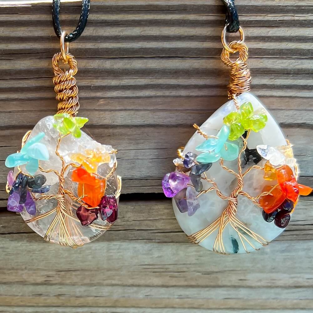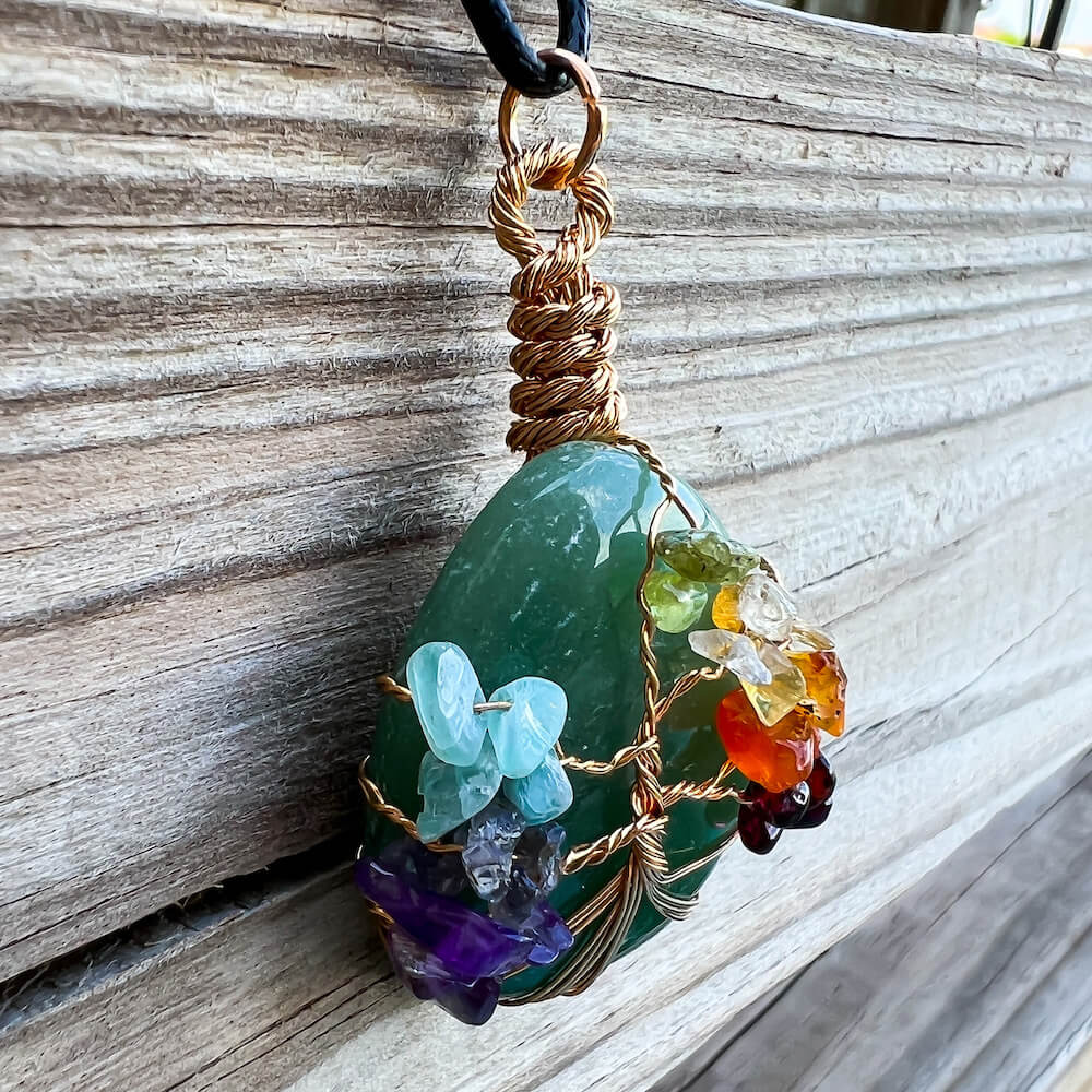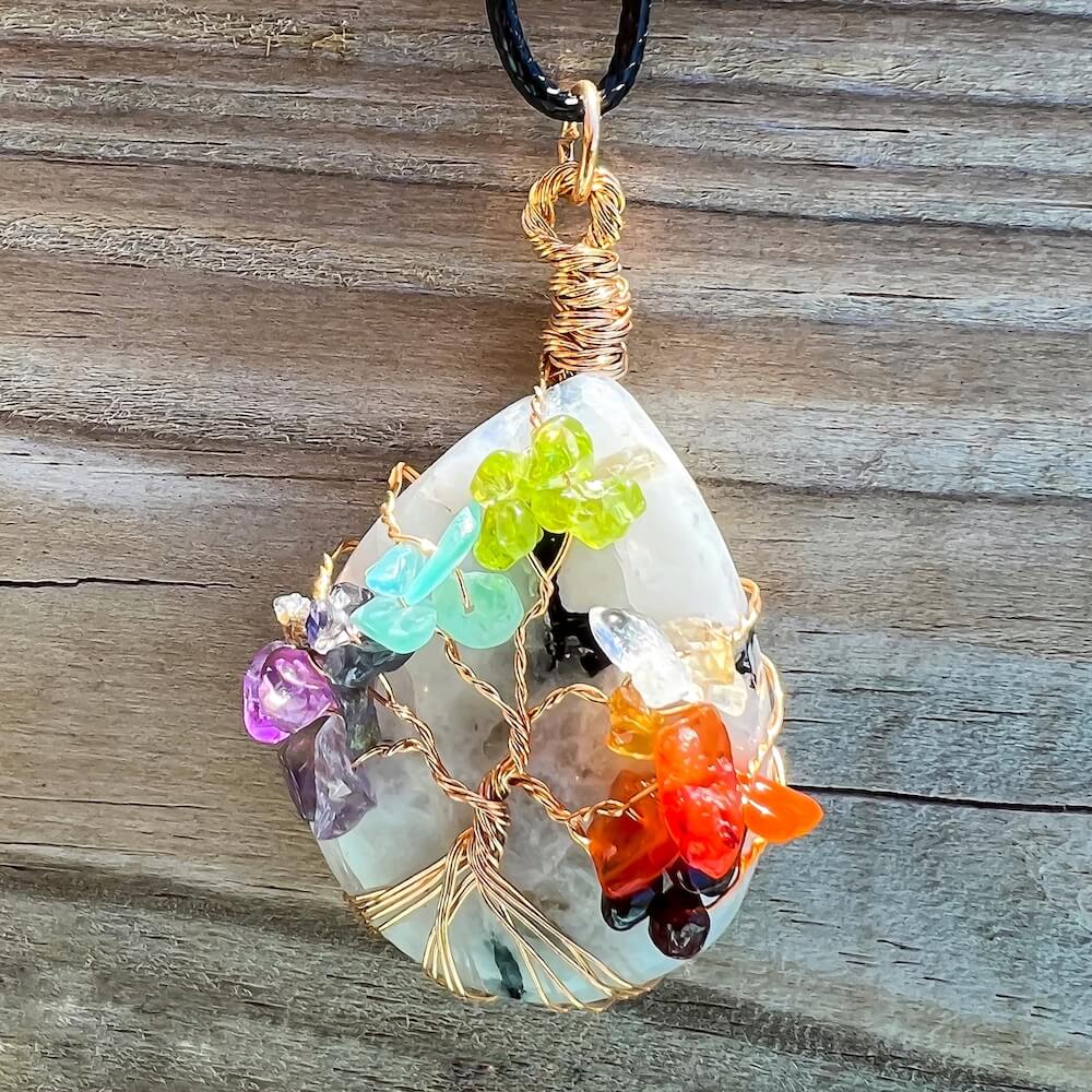 Collar con gota de árbol de la vida de 7 chakras y amatista