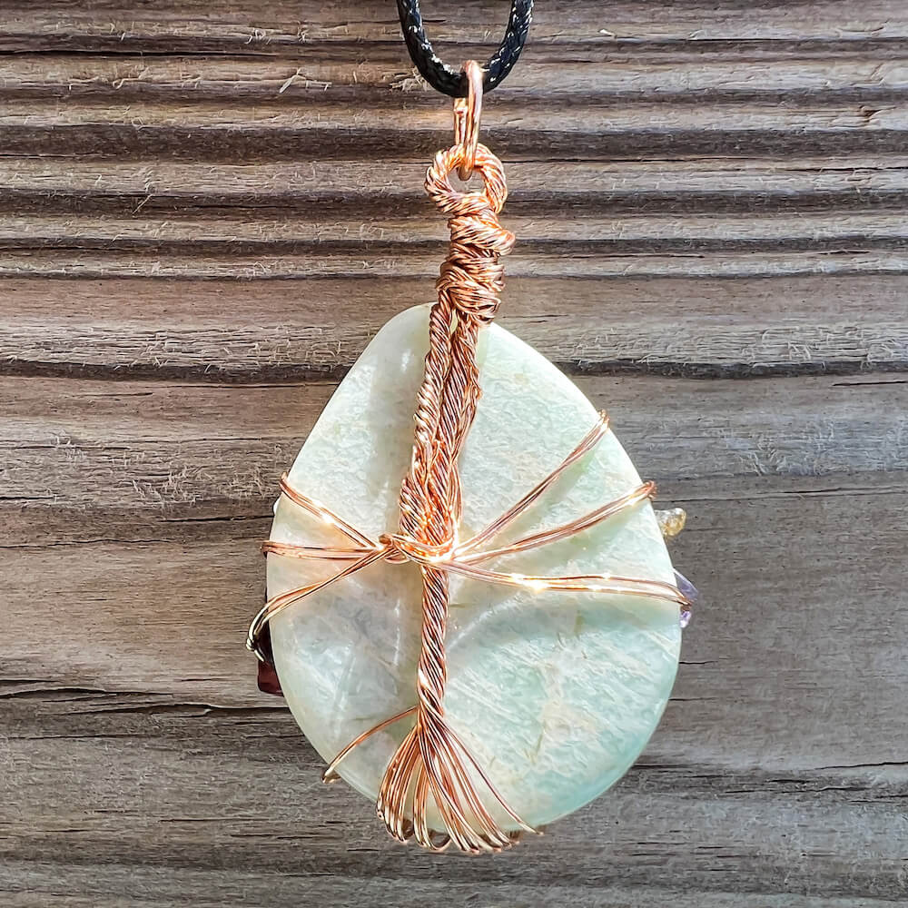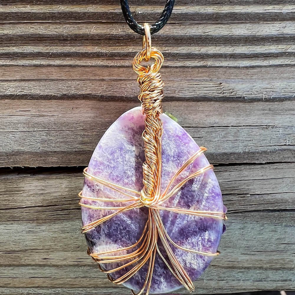 - Piedra Auténtica Amatista pulida envuelta en cobre.
