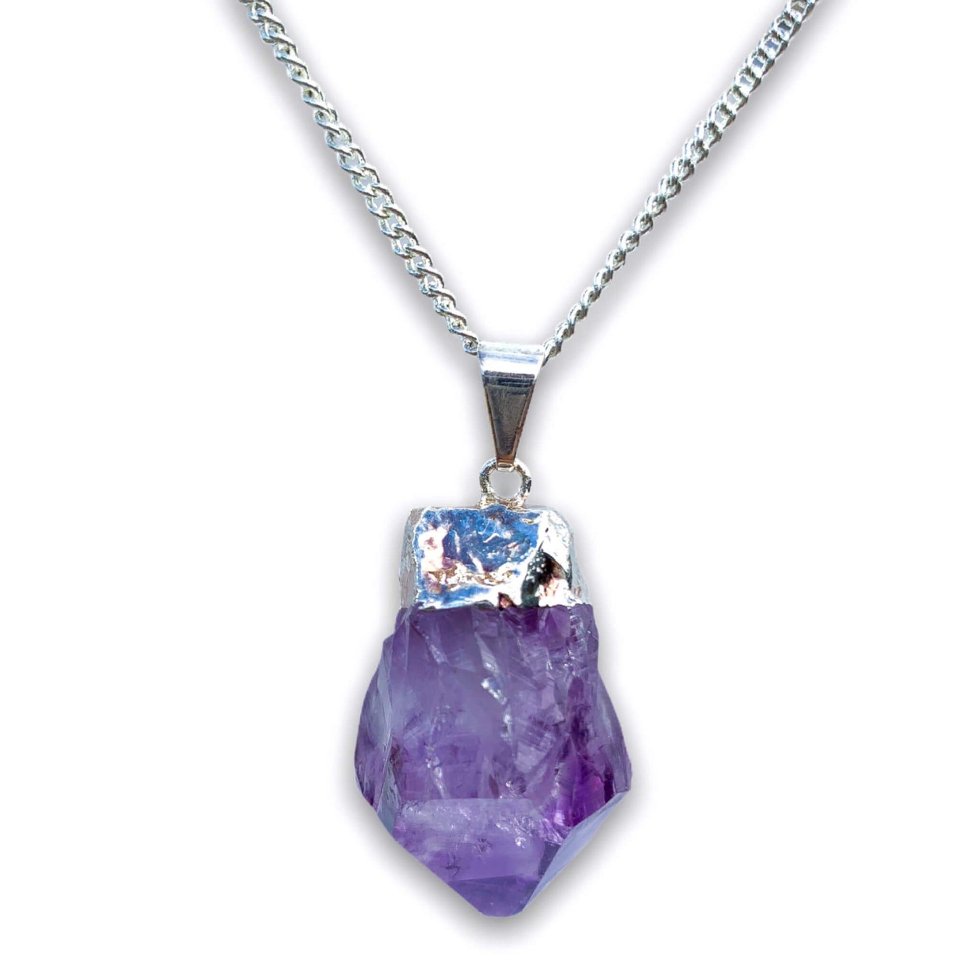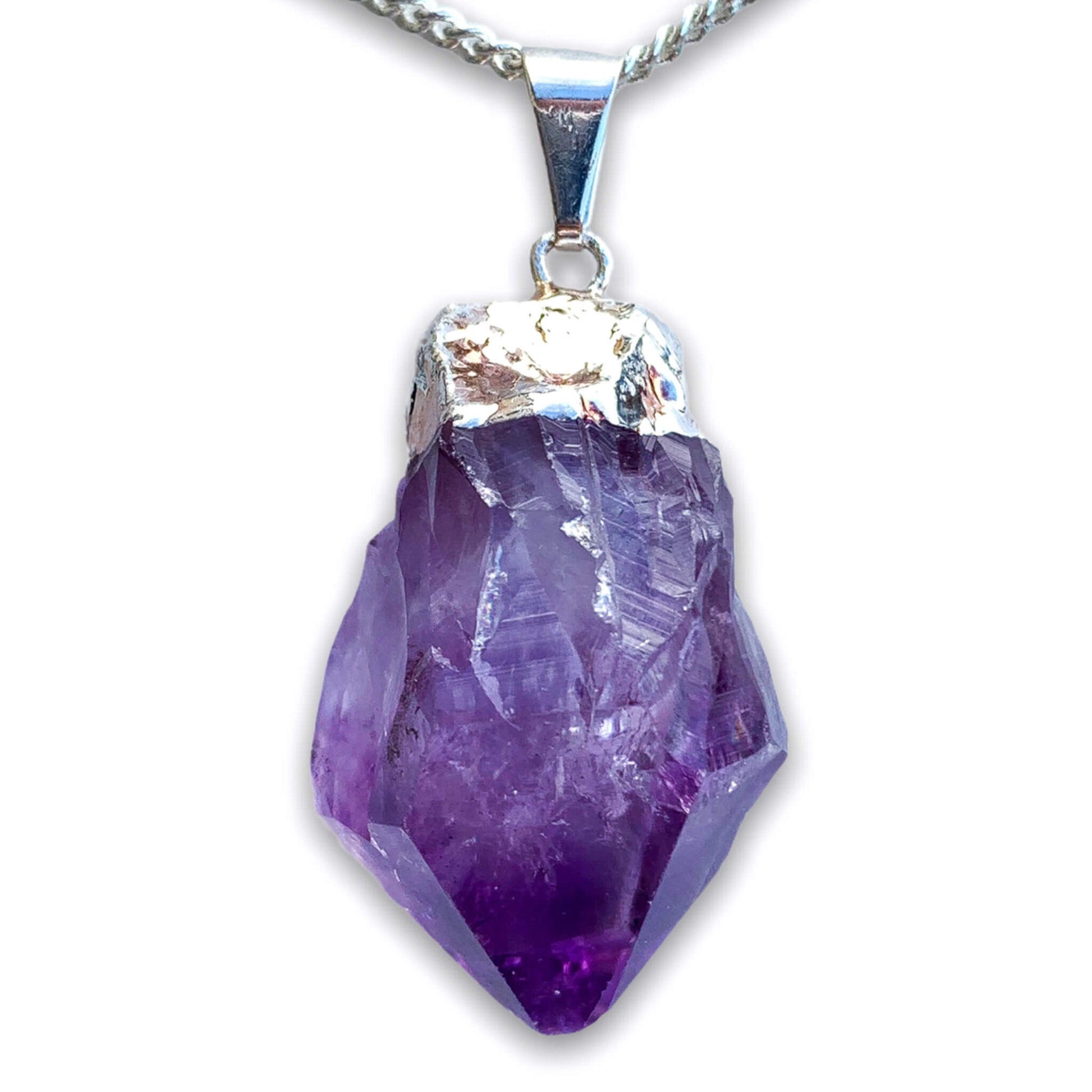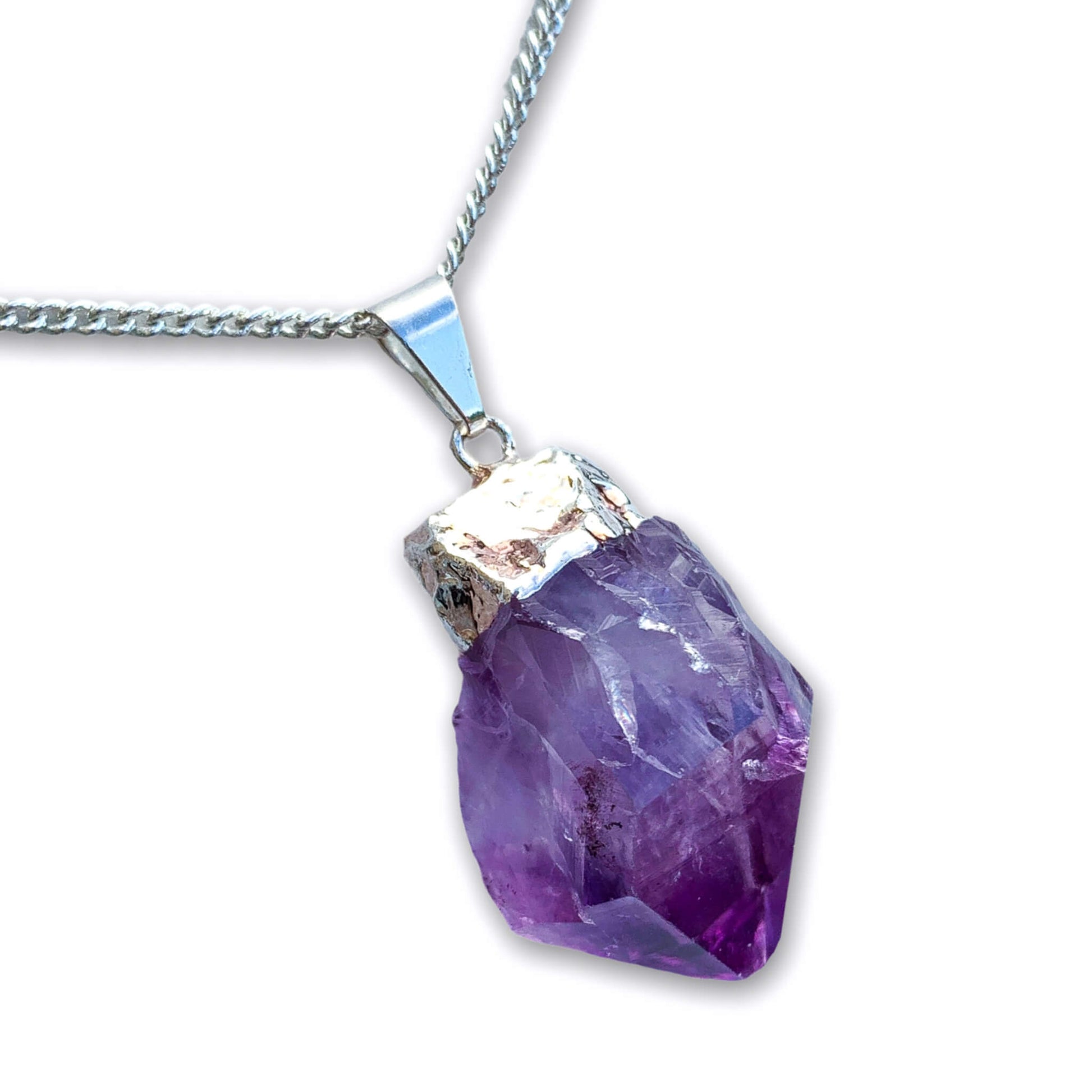 - Auténtica piedra de amatista pulida engarzada en plata de ley