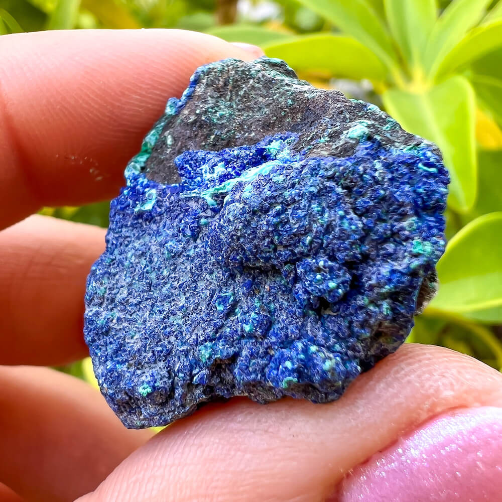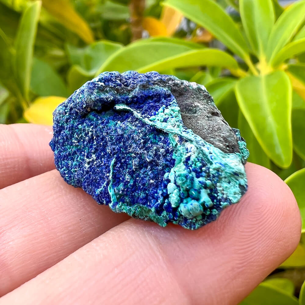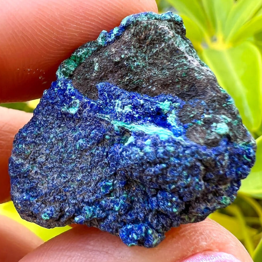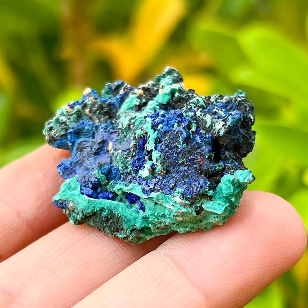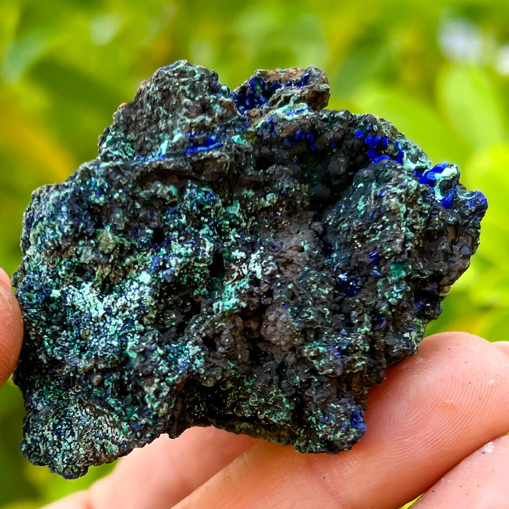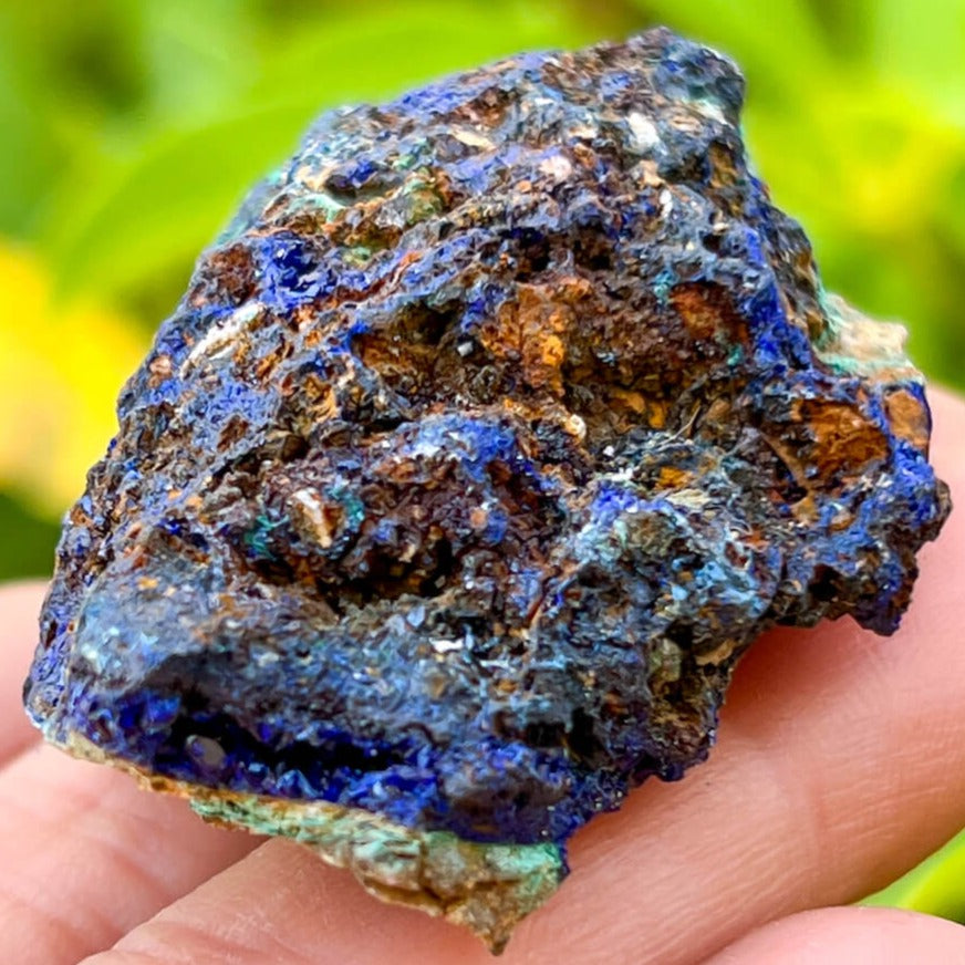 Seems to be mostly pure Azurite. Lots of little crystal inclusions. Not seeing a lot of malachite on it. Very happy with this little rock! Thank you!