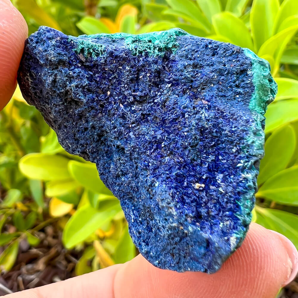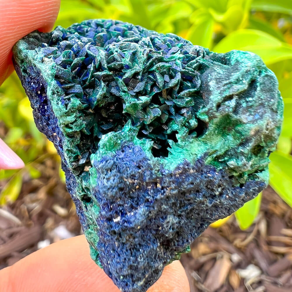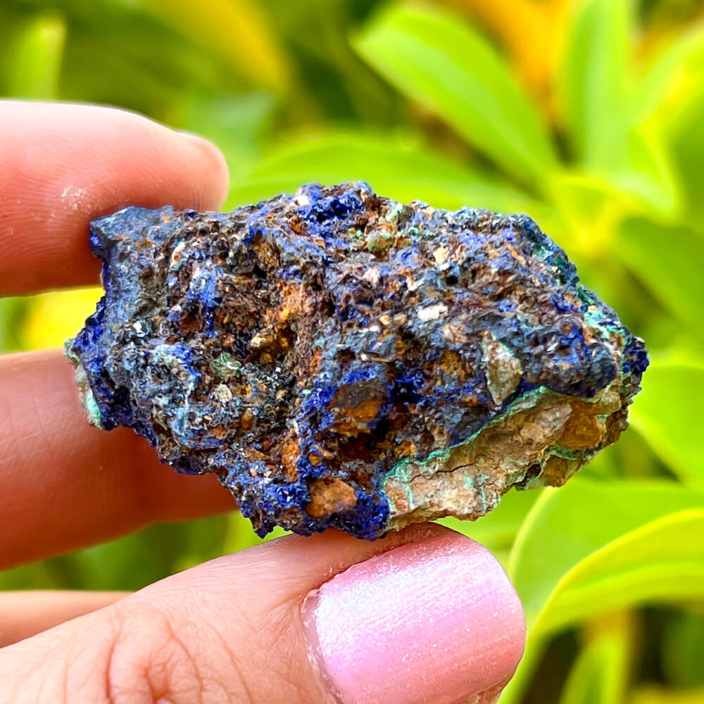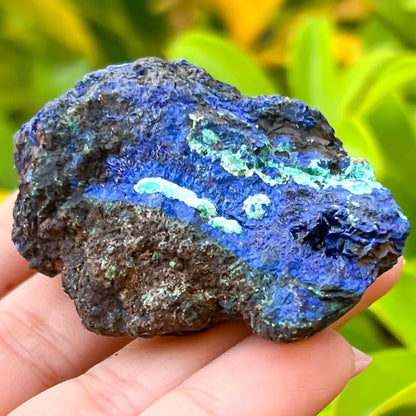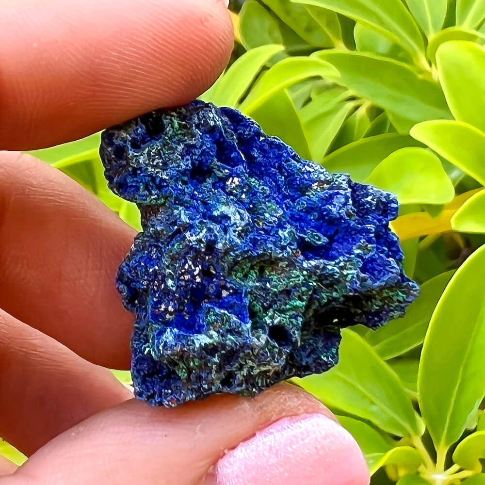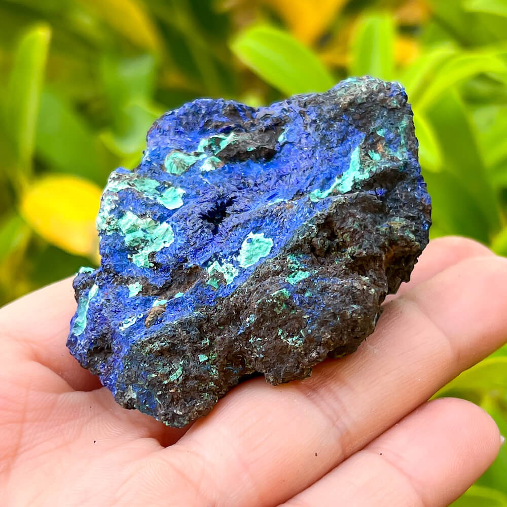 Seems to be mostly pure Azurite. Lots of little crystal inclusions. Not seeing a lot of malachite on it. Very happy with this little rock! Thank you!