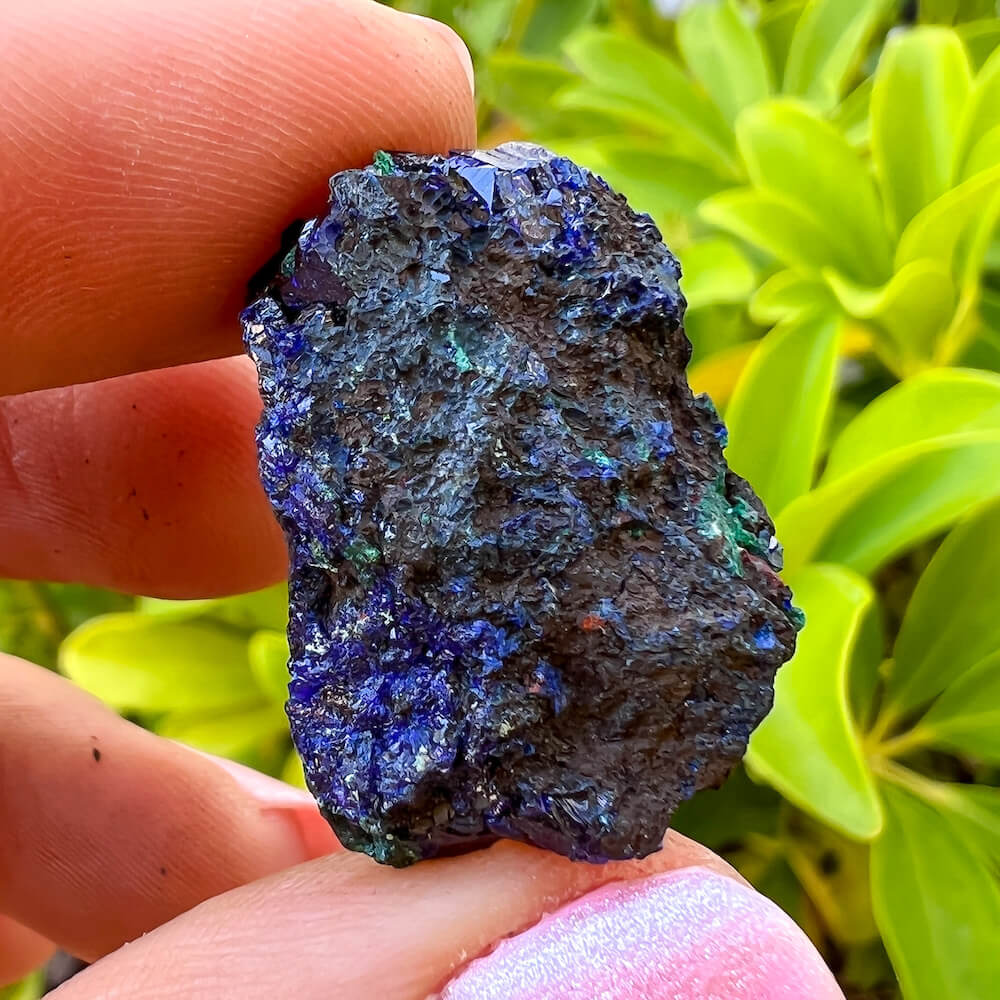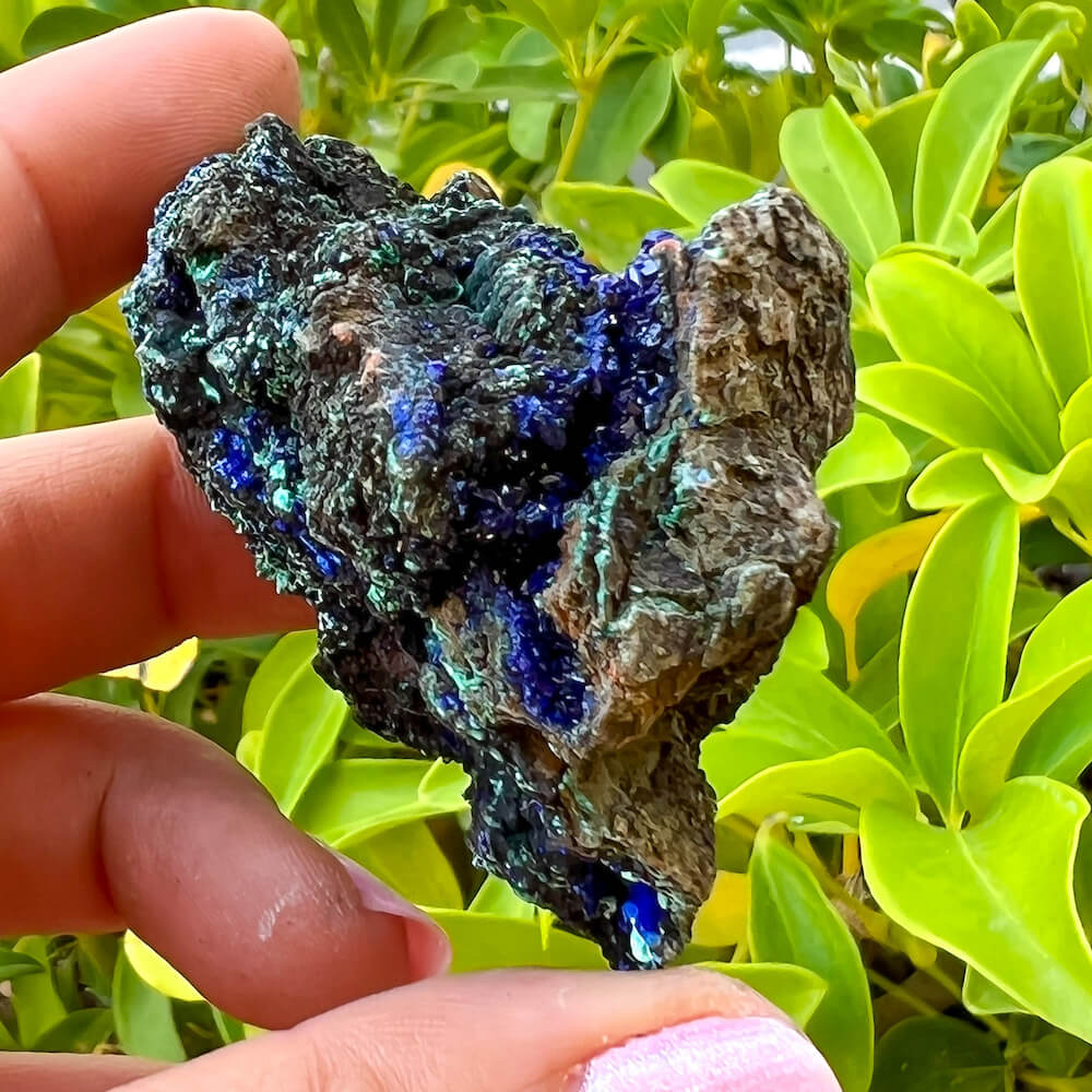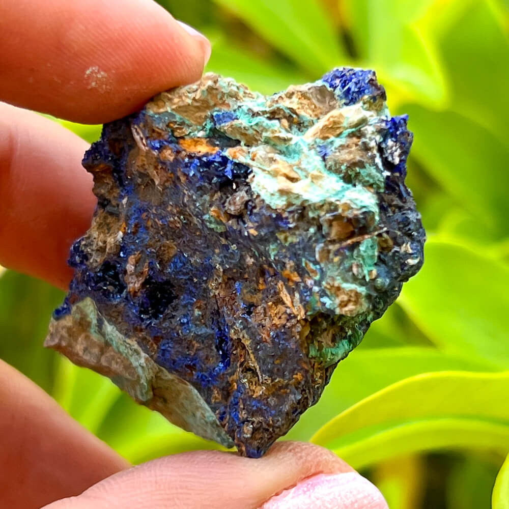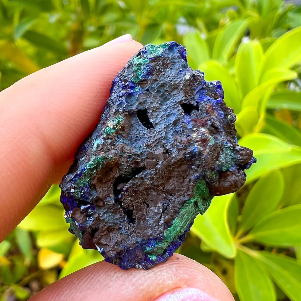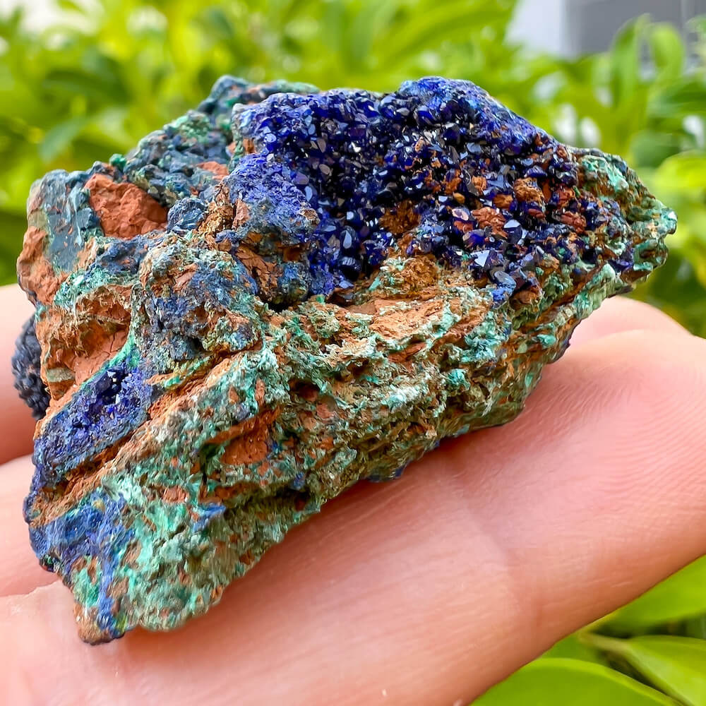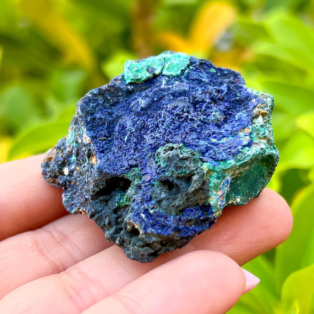 Seems to be mostly pure Azurite. Lots of little crystal inclusions. Not seeing a lot of malachite on it. Very happy with this little rock! Thank you!