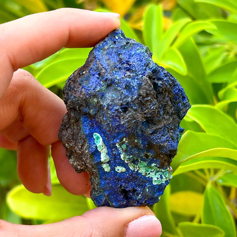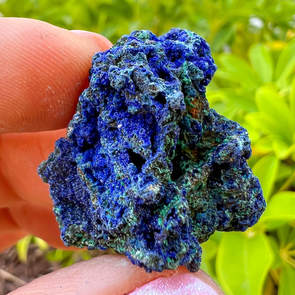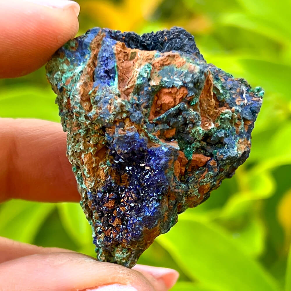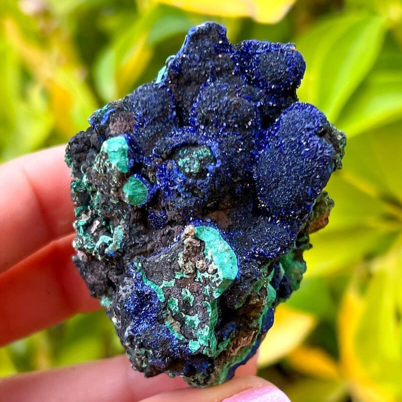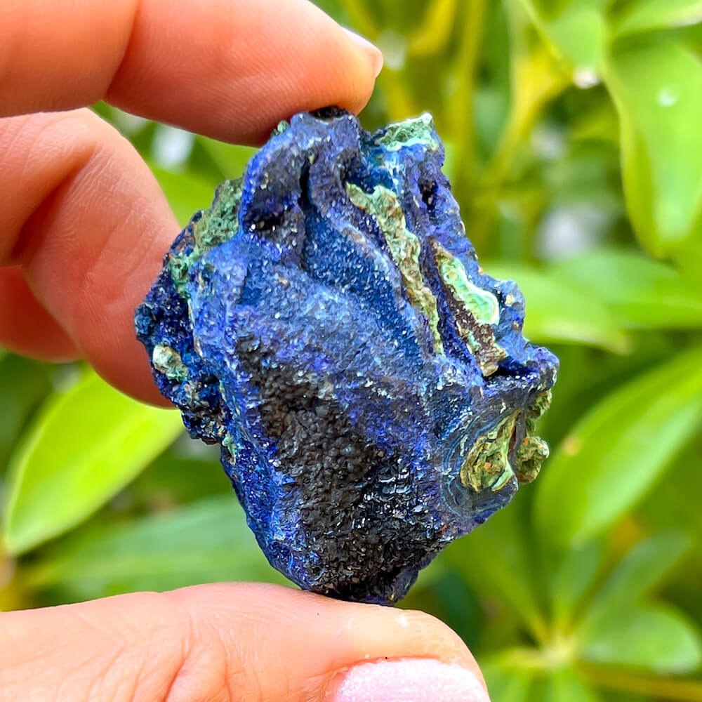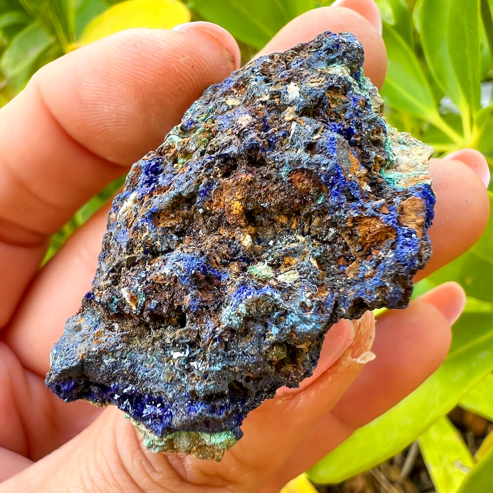 Seems to be mostly pure Azurite. Lots of little crystal inclusions. Not seeing a lot of malachite on it. Very happy with this little rock! Thank you!