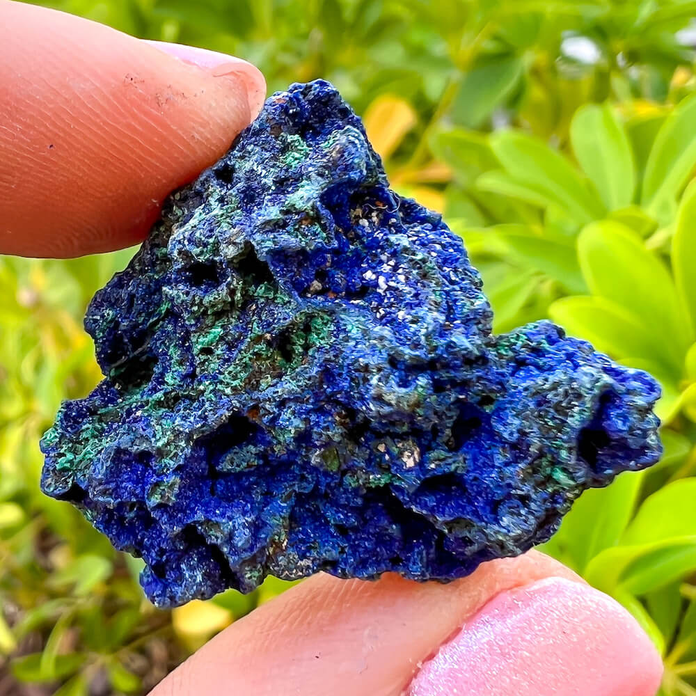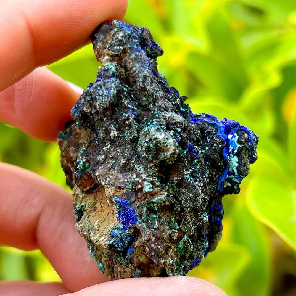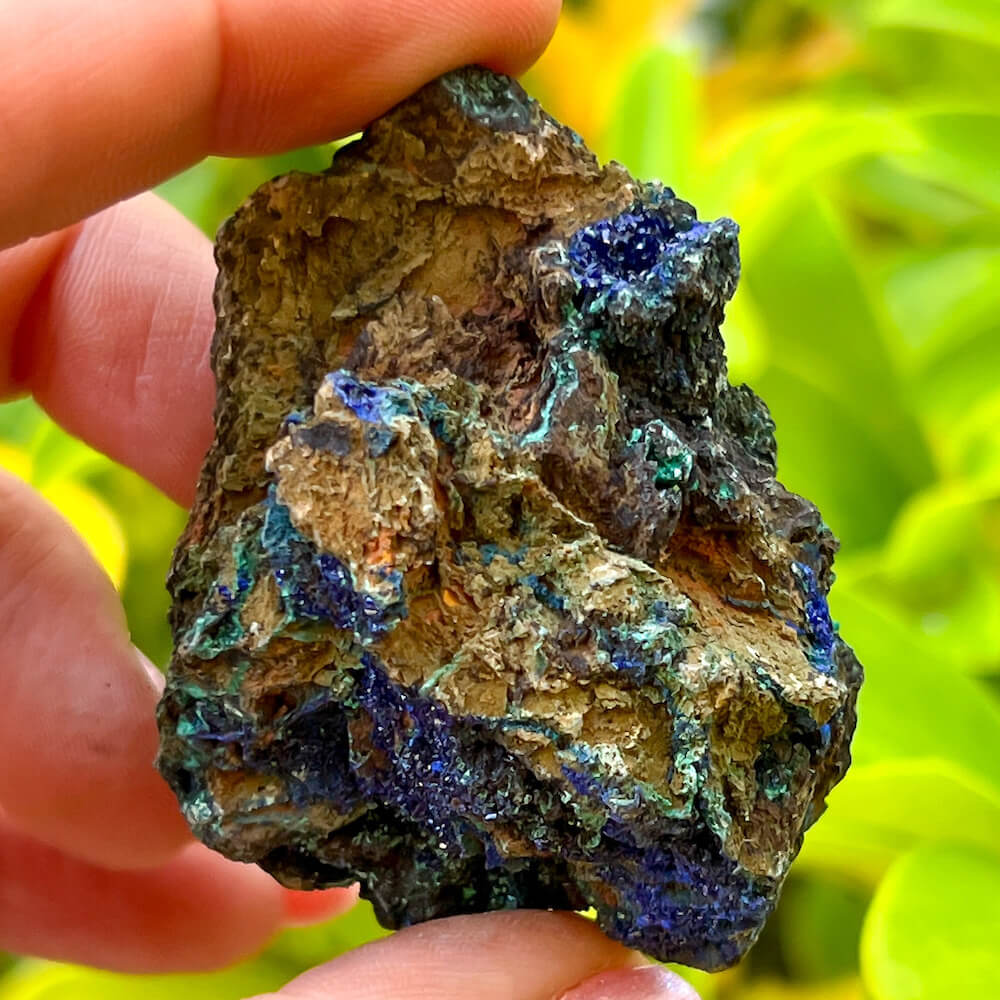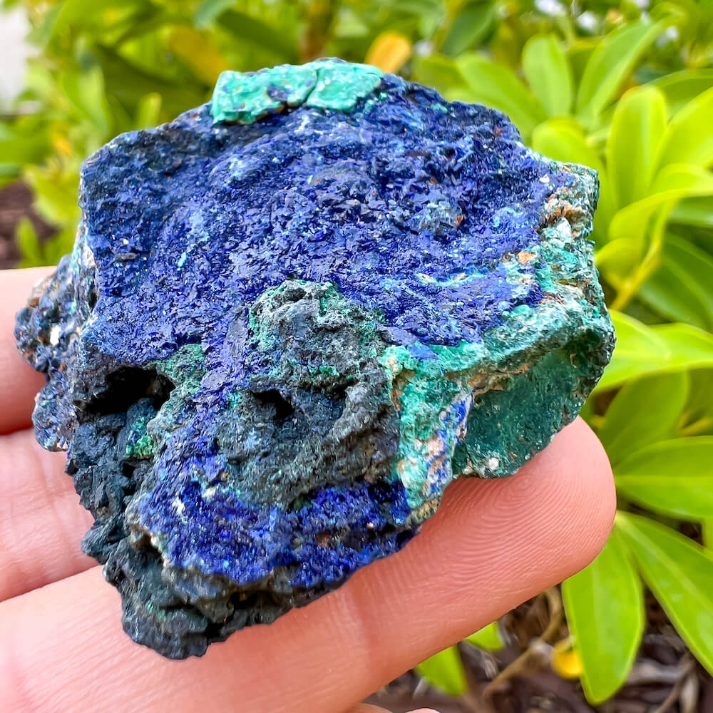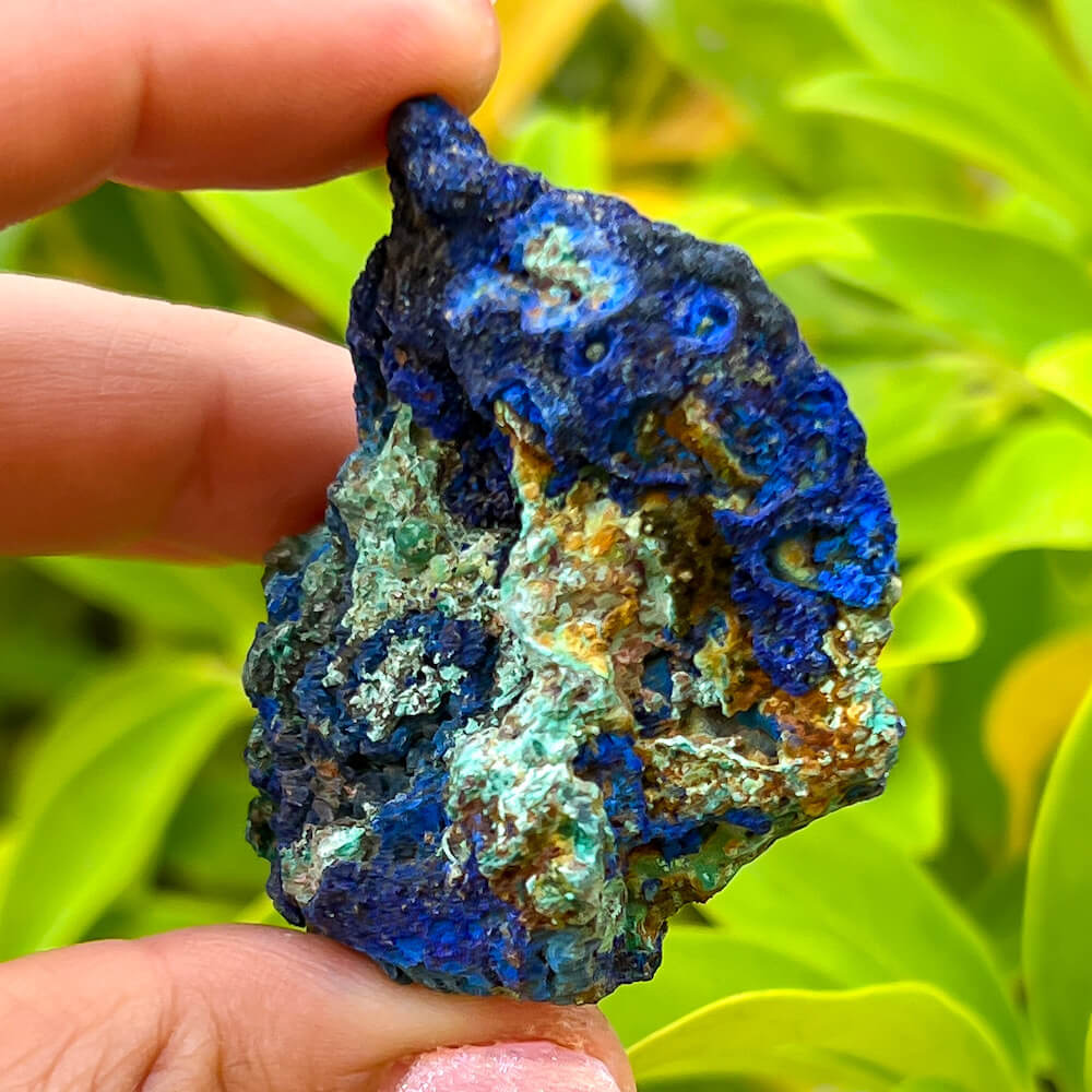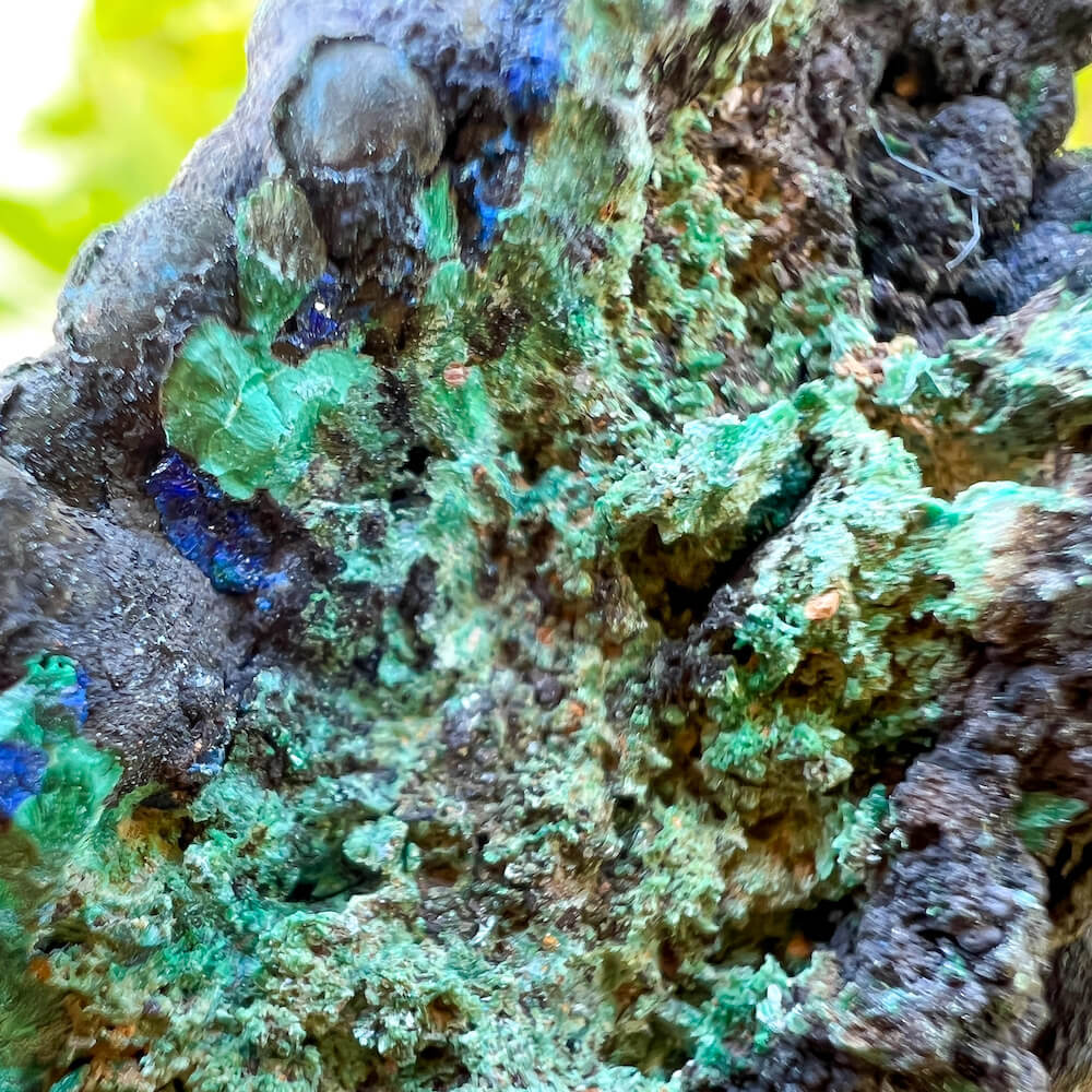 Seems to be mostly pure Azurite. Lots of little crystal inclusions. Not seeing a lot of malachite on it. Very happy with this little rock! Thank you!
