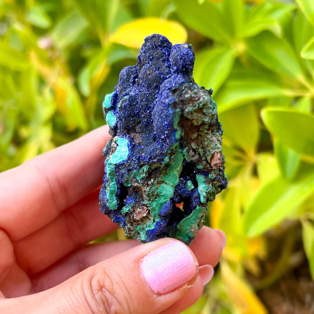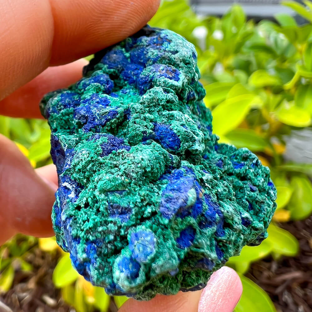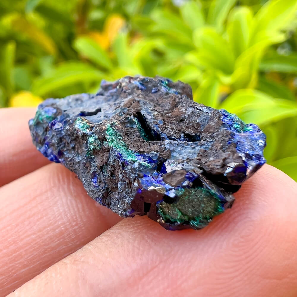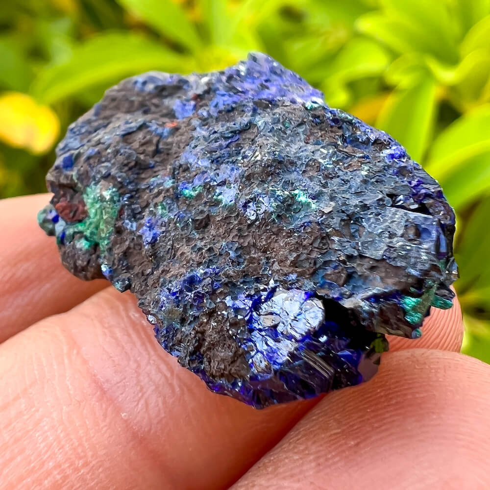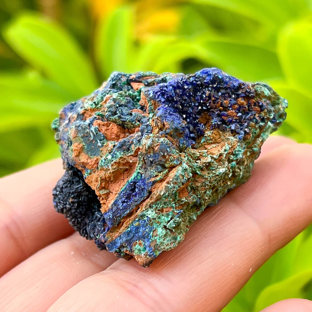Seems to be mostly pure Azurite. Lots of little crystal inclusions. Not seeing a lot of malachite on it. Very happy with this little rock! Thank you!