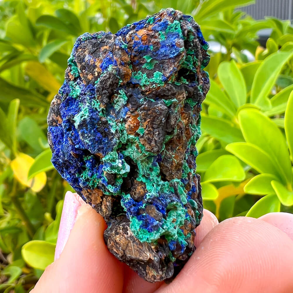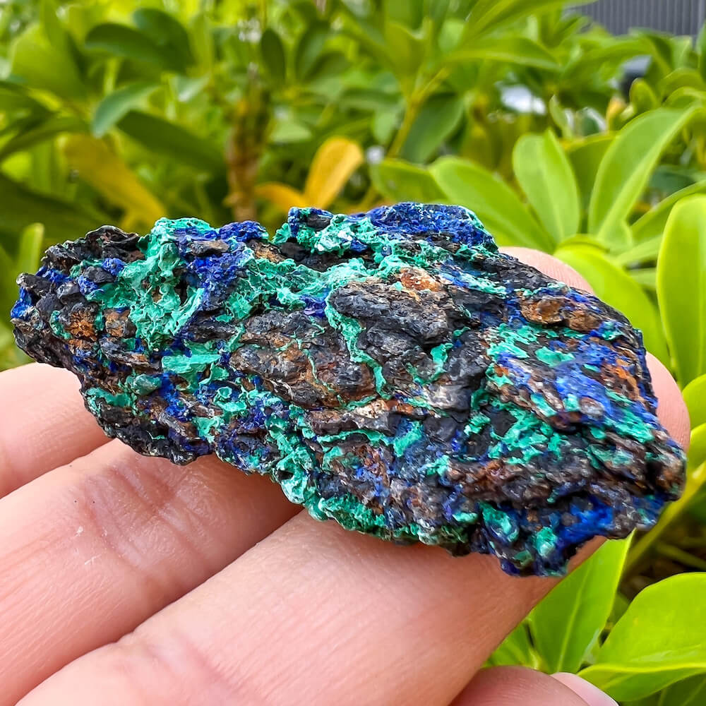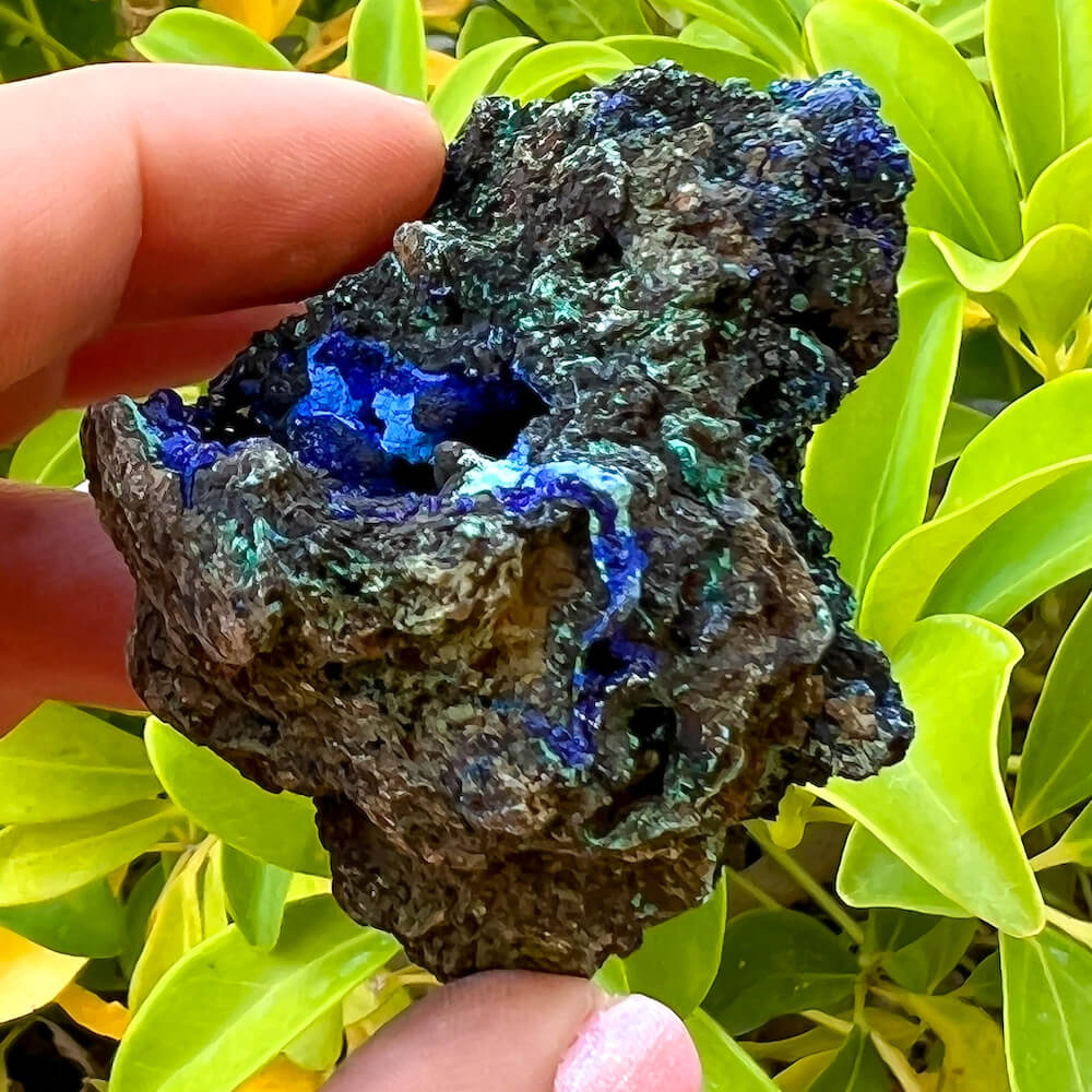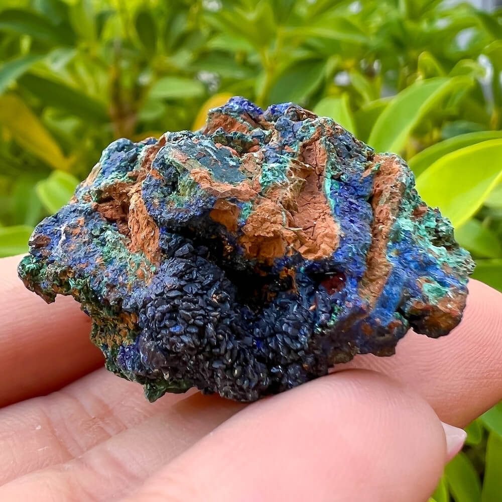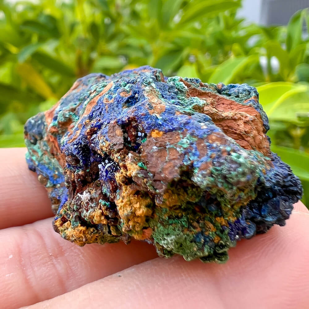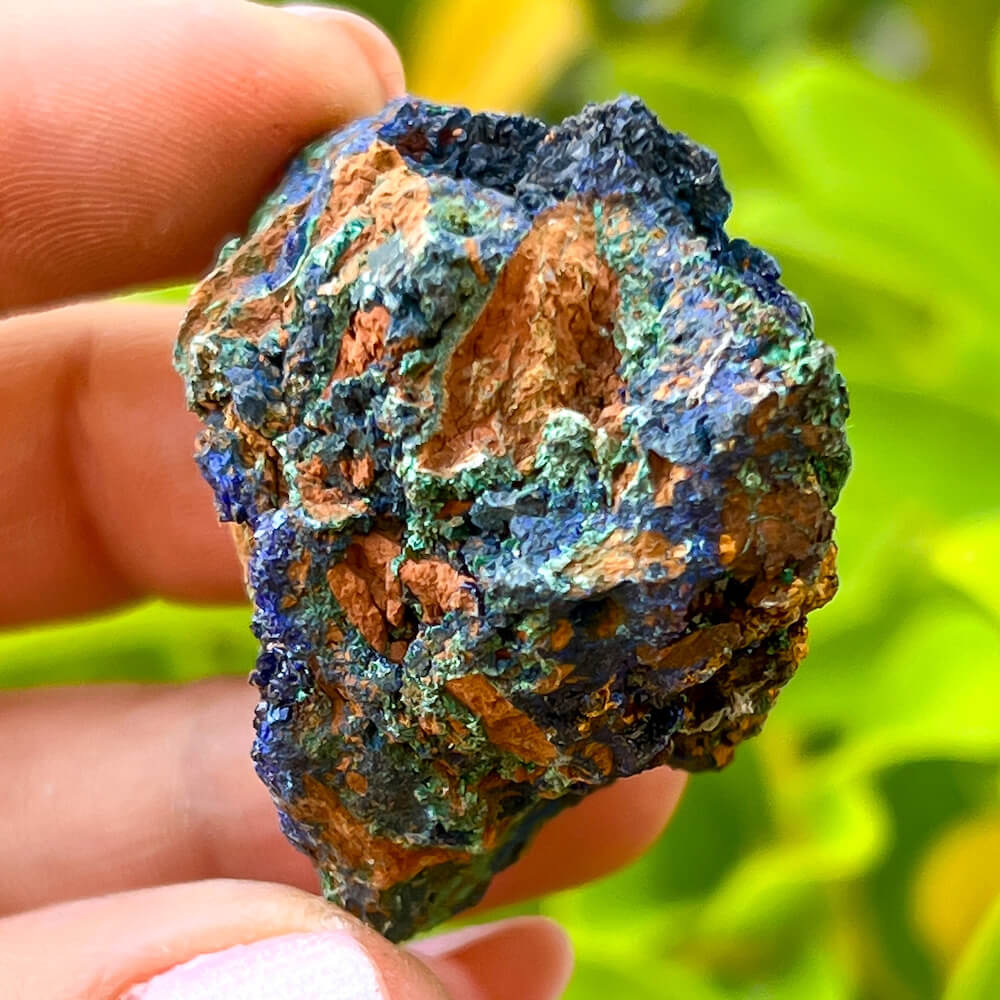 Seems to be mostly pure Azurite. Lots of little crystal inclusions. Not seeing a lot of malachite on it. Very happy with this little rock! Thank you!