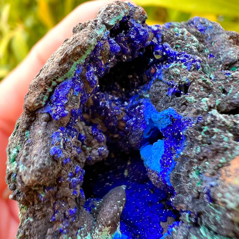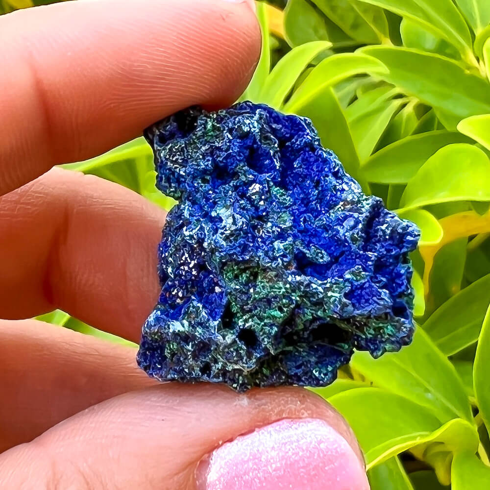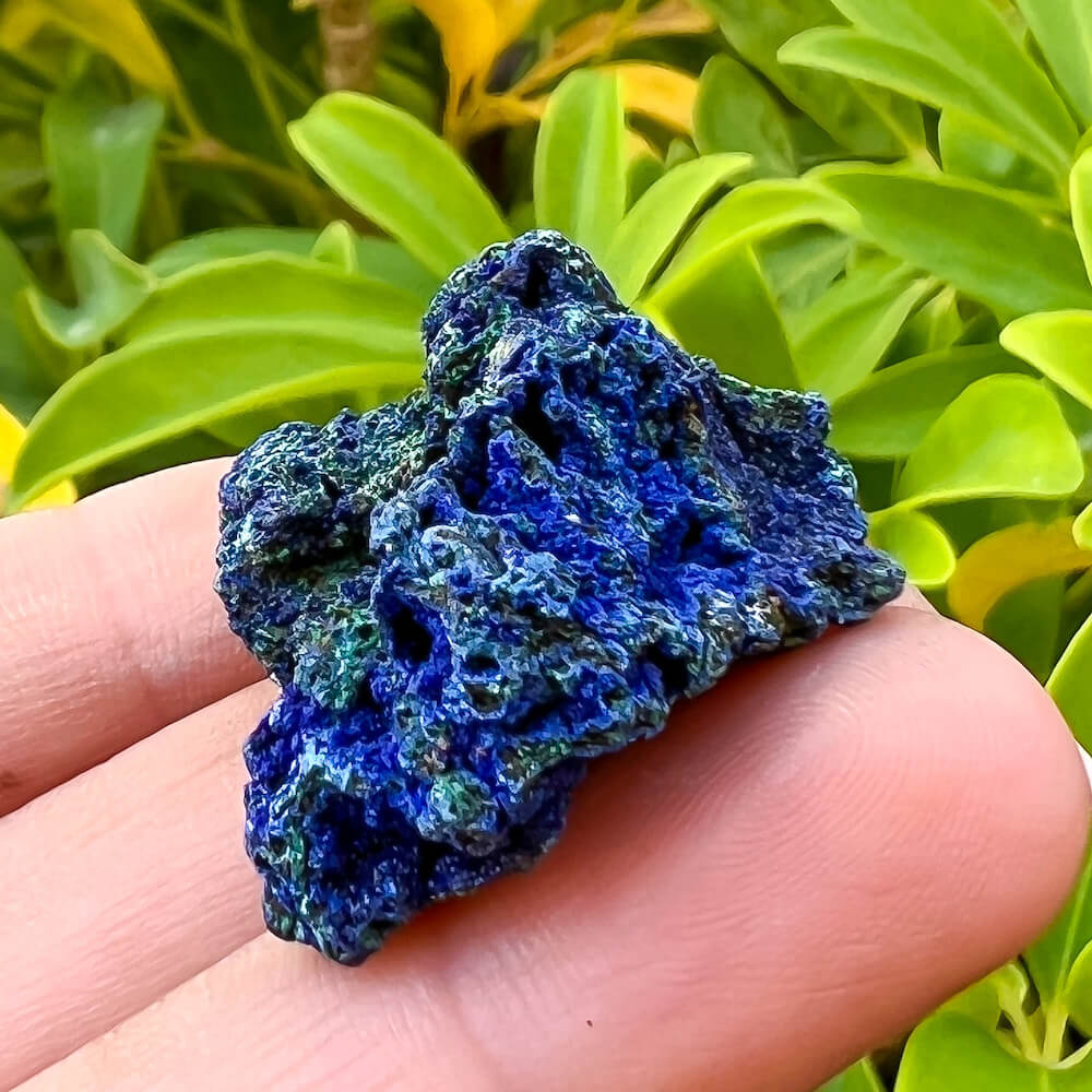 La azurita es una piedra de perspicacia y visión. Es un excelente aliado para abrir y limpiar los chakras del tercer ojo y de la coronilla, estimulando la capacidad psíquica e intuitiva y alineando la visión interior a una guía superior. Azurite puede asistir en la exploración de vidas pasadas o alternativas, y en la recuperación de información y conocimiento de esas vidas. La capacidad de la azurita para estimular la visión interior también es útil para el buscador espiritual. Como buscadores, debemos monitorear constantemente nuestros pensamientos y motivos en un esfuerzo por mejorarnos mental, psíquicamente y espiritualmente.