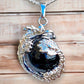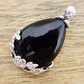 - Auténtico Pulido Piedra de ágata negra engastado en plateado