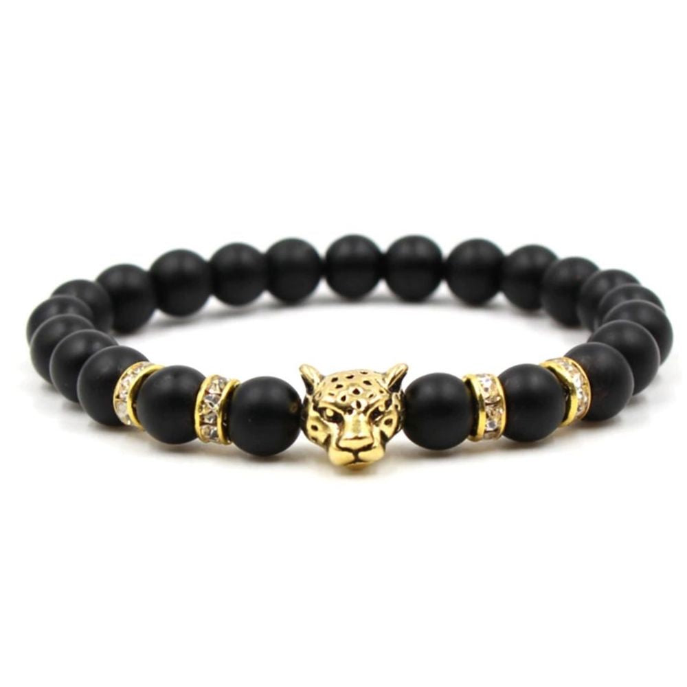 Pulsera de leopardo dorado con piedra mate de ónix negro