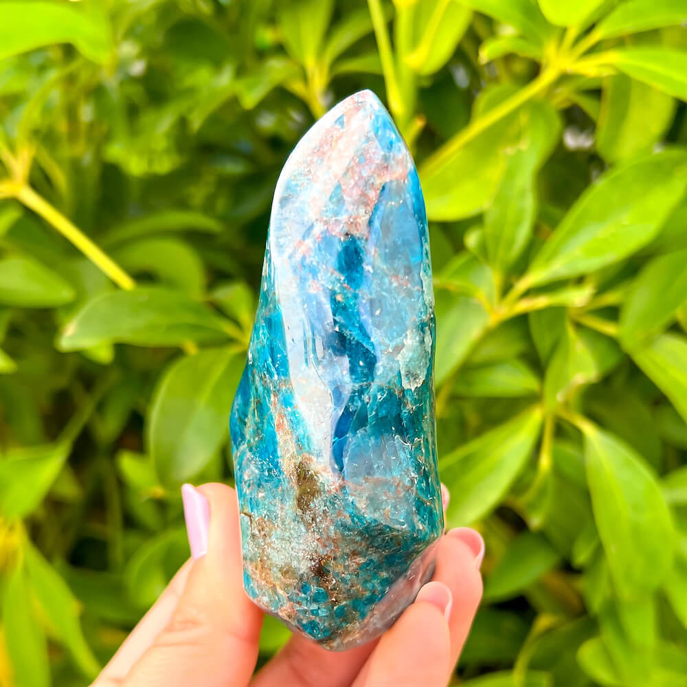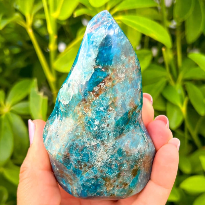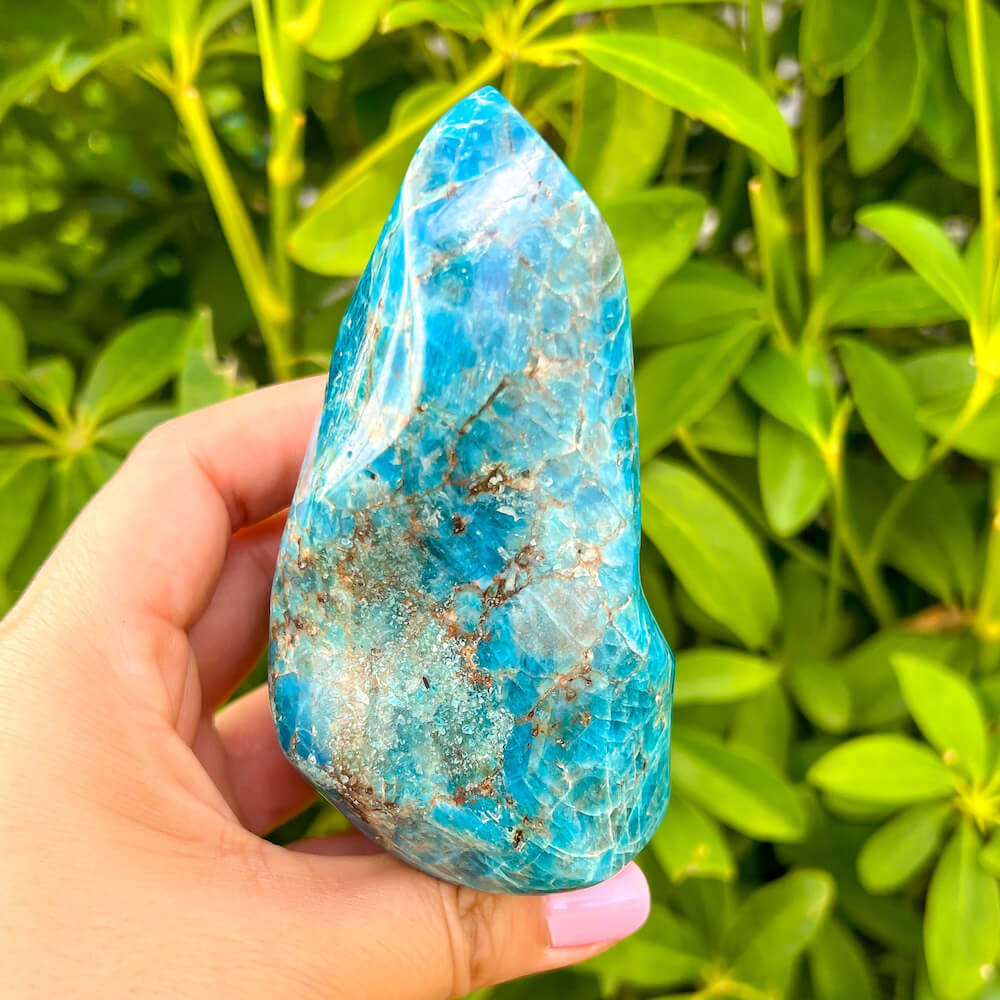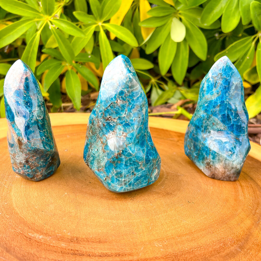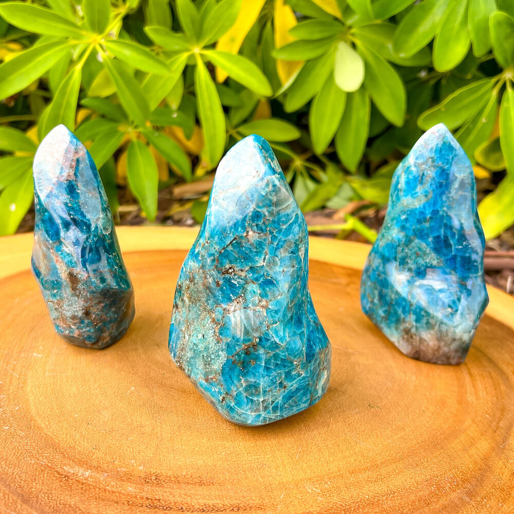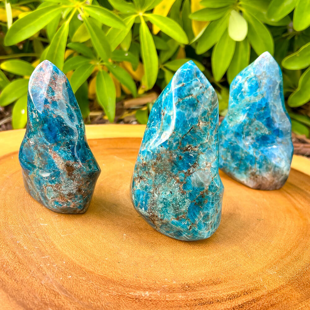 La apatita es una piedra preciosa de manifestación, ya que puede ayudarlo a ver las cosas con claridad e identificar cualquier cosa que le impida alcanzar sus objetivos más deseados. La apatita azul es una piedra motivadora que promueve la independencia y la ambición. La apatita, de color azul, es una de las piedras de nacimiento naturales de los nacidos mientras el mundo espera el equinoccio vernal y la primavera (19 de febrero - 19 de marzo).