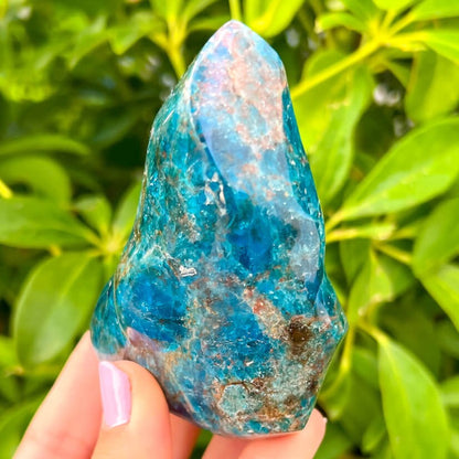 La apatita es una piedra de manifestación. Está relacionado con el servicio y las actividades humanitarias. Apatite está en sintonía con el futuro, pero se conecta con vidas pasadas. Estimula el desarrollo de nuestros dones psíquicos y sintonización espiritual, profundizando la meditación y ayudando a la comunicación y la autoexpresión en todos los niveles. Equilibra los cuerpos físico, emocional, mental y espiritual, y los chakras, eliminando la hiperactividad y estimulando la hipoactividad.
