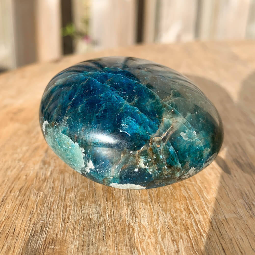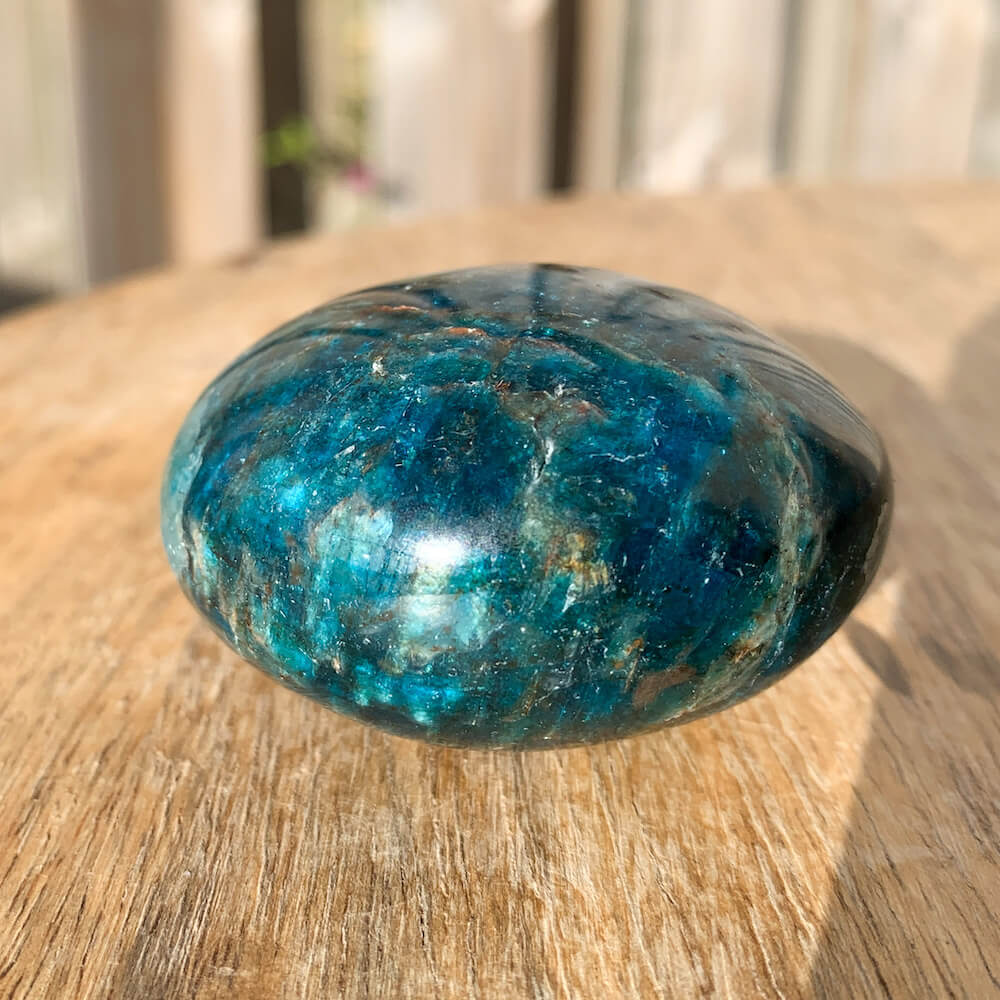 La apatita es una piedra de manifestación. Está relacionado con el servicio y las actividades humanitarias. Apatite está en sintonía con el futuro, pero se conecta con vidas pasadas. Estimula el desarrollo de nuestros dones psíquicos y sintonización espiritual, profundizando la meditación y ayudando a la comunicación y la autoexpresión en todos los niveles. Equilibra los cuerpos físico, emocional, mental y espiritual, y los chakras, eliminando la hiperactividad y estimulando la hipoactividad.