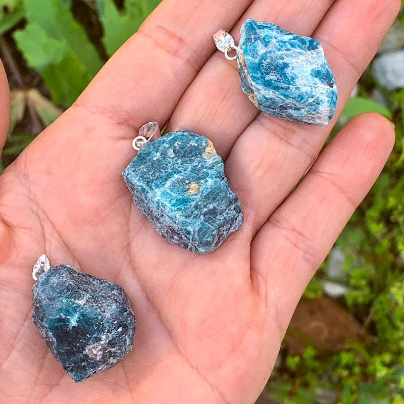 La apatita es una piedra preciosa de manifestación, ya que puede ayudarlo a ver las cosas con claridad e identificar cualquier cosa que le impida alcanzar sus objetivos más deseados. La apatita azul es una piedra motivadora que promueve la independencia y la ambición. La apatita, de color azul, es una de las piedras de nacimiento naturales de los nacidos mientras el mundo espera el equinoccio vernal y la primavera (19 de febrero - 19 de marzo).