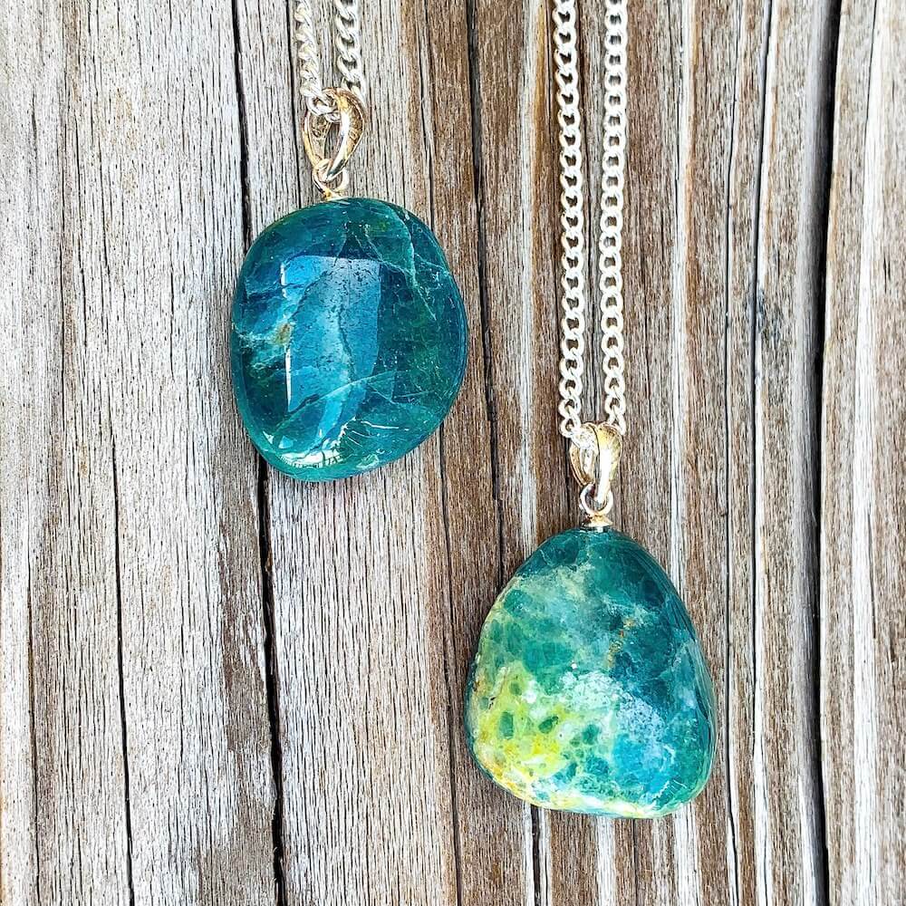 La apatita es una piedra de manifestación. Está relacionado con el servicio y las actividades humanitarias. Apatite está en sintonía con el futuro, pero se conecta con vidas pasadas. Estimula el desarrollo de nuestros dones psíquicos y sintonización espiritual, profundizando la meditación y ayudando a la comunicación y la autoexpresión en todos los niveles. Equilibra los cuerpos físico, emocional, mental y espiritual, y los chakras, eliminando la hiperactividad y estimulando la hipoactividad.