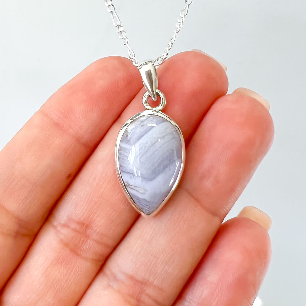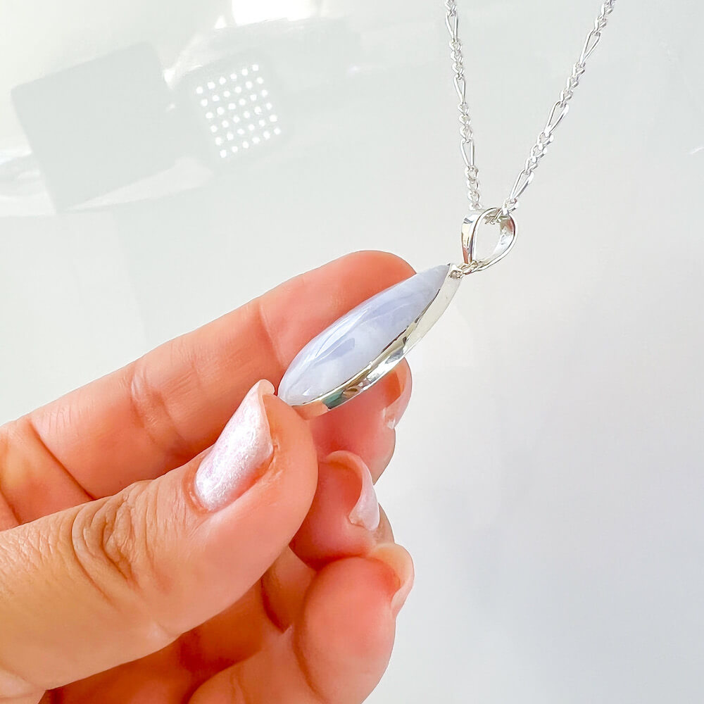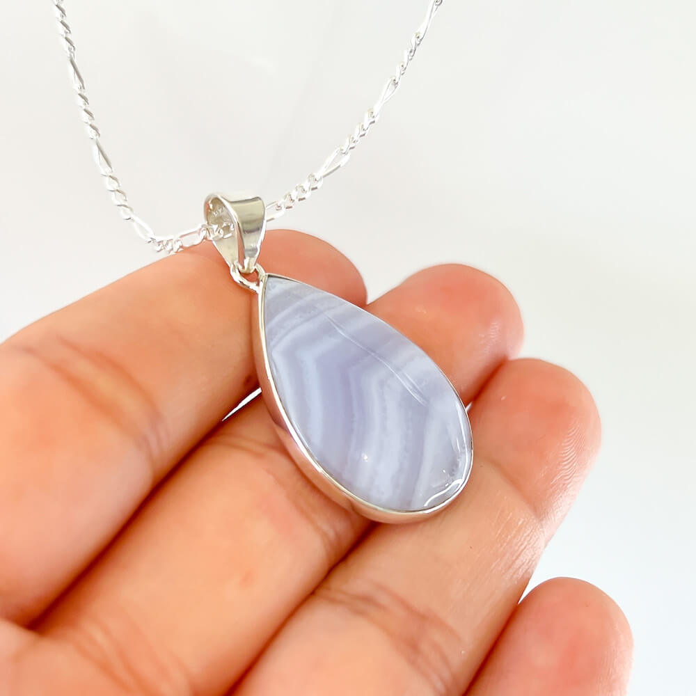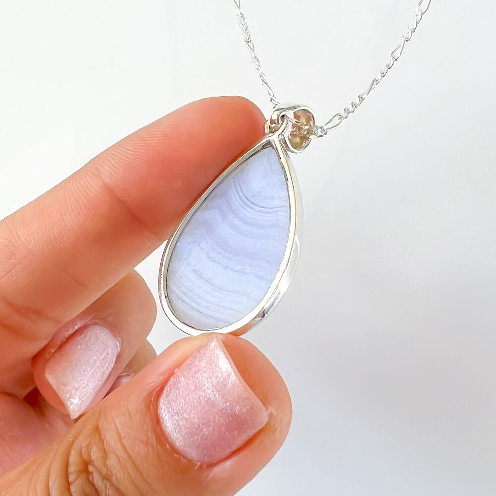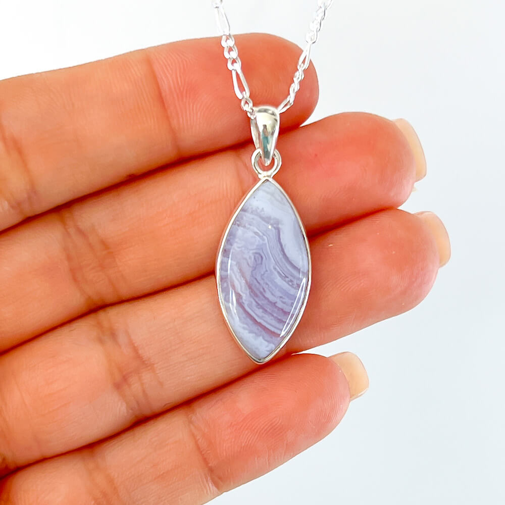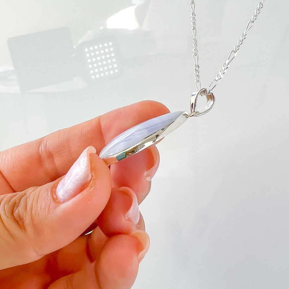 Collar con colgante de plata esterlina con ágata de encaje azul - A