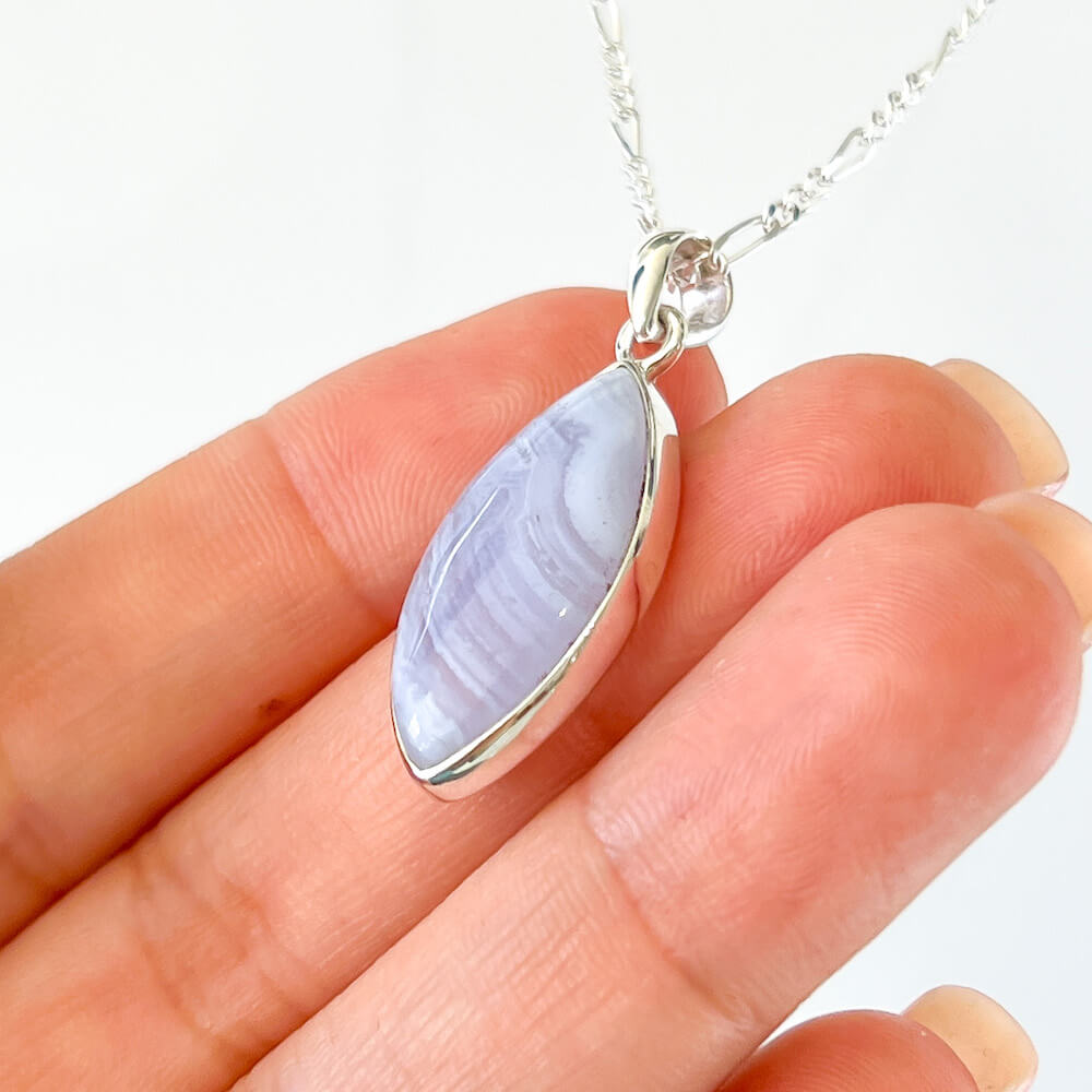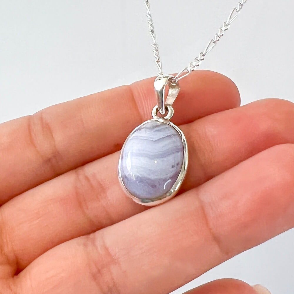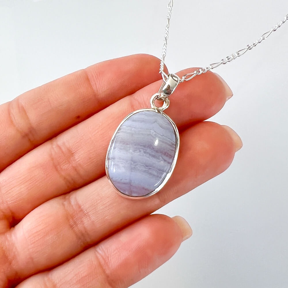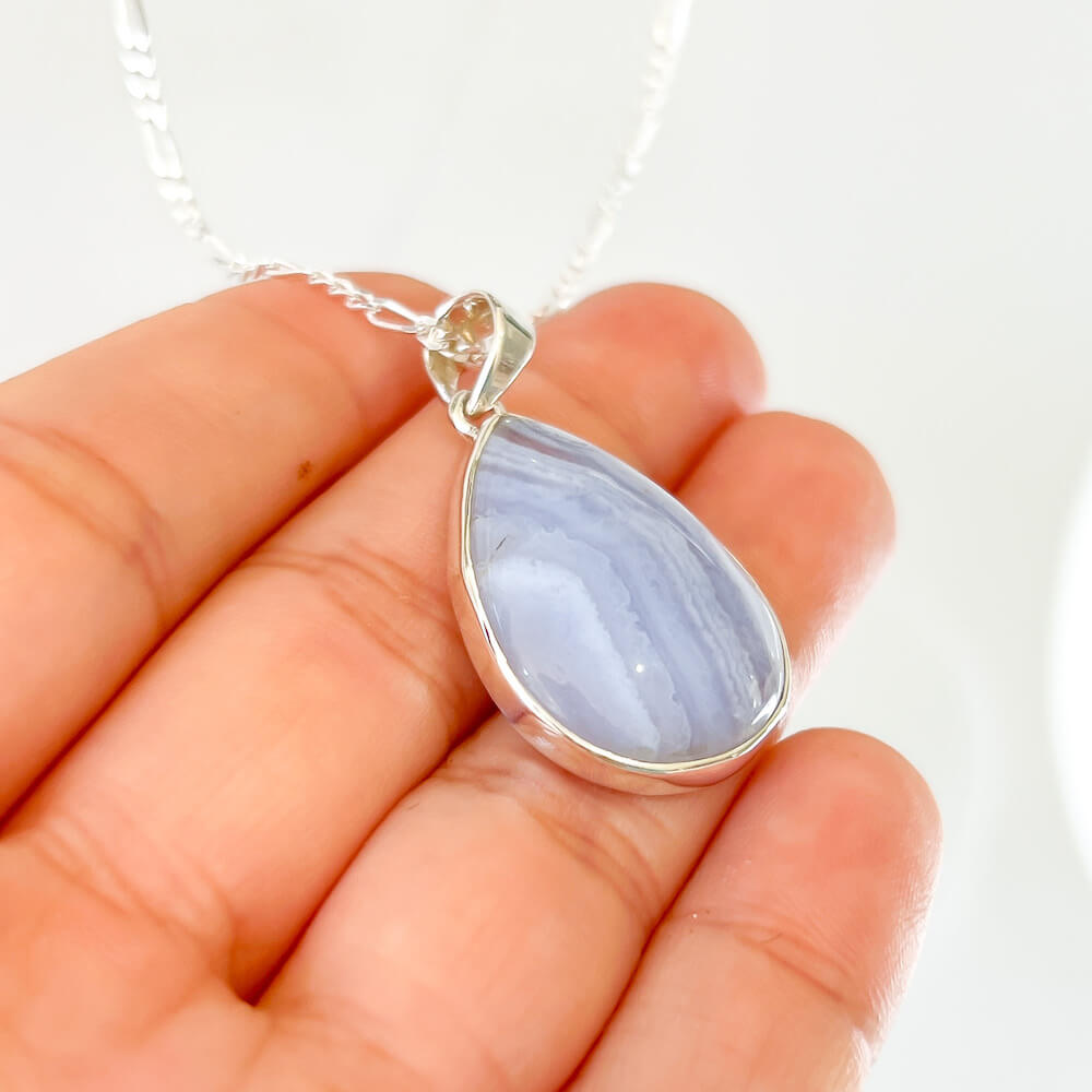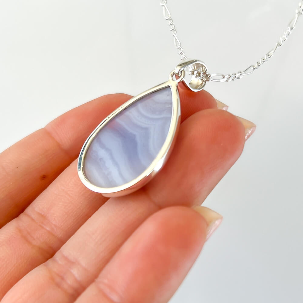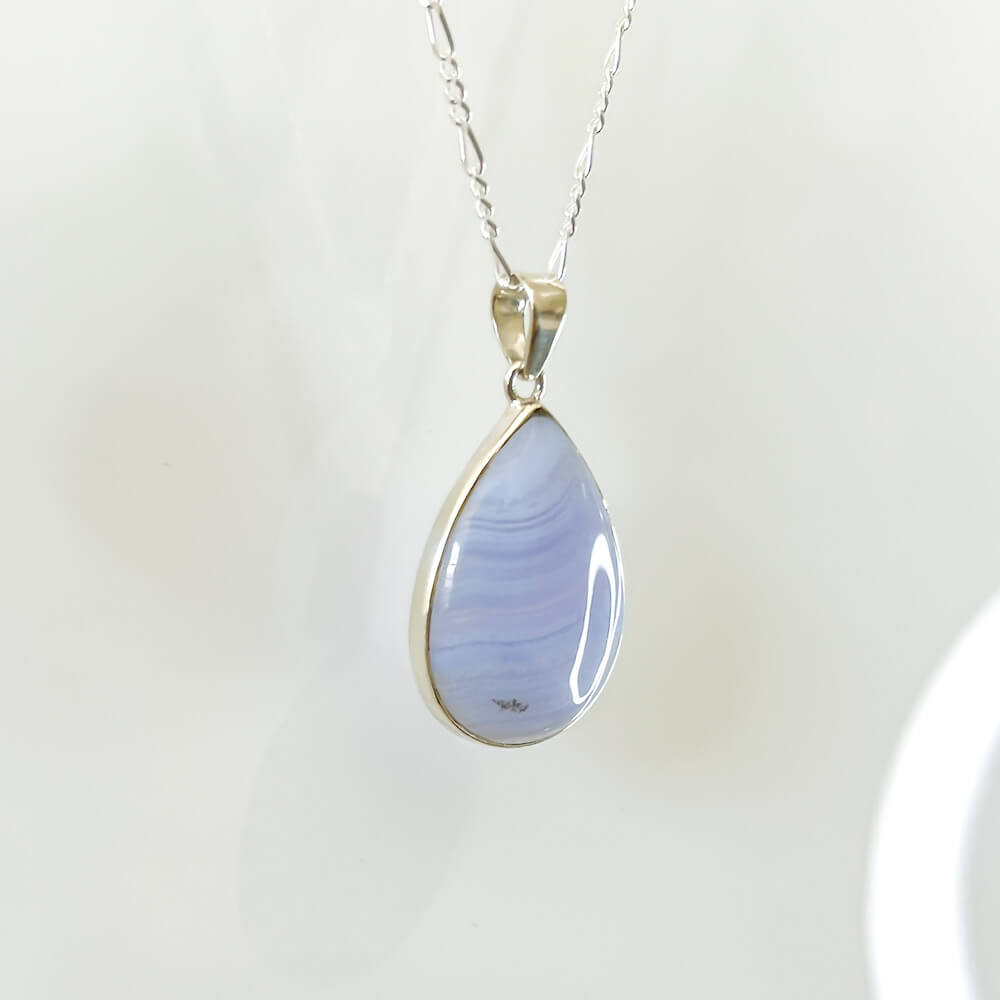 Collar con colgante de plata esterlina con ágata de encaje azul - A
