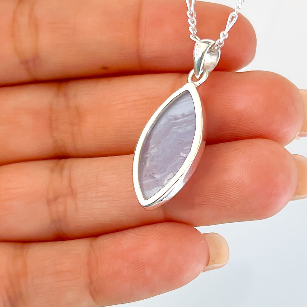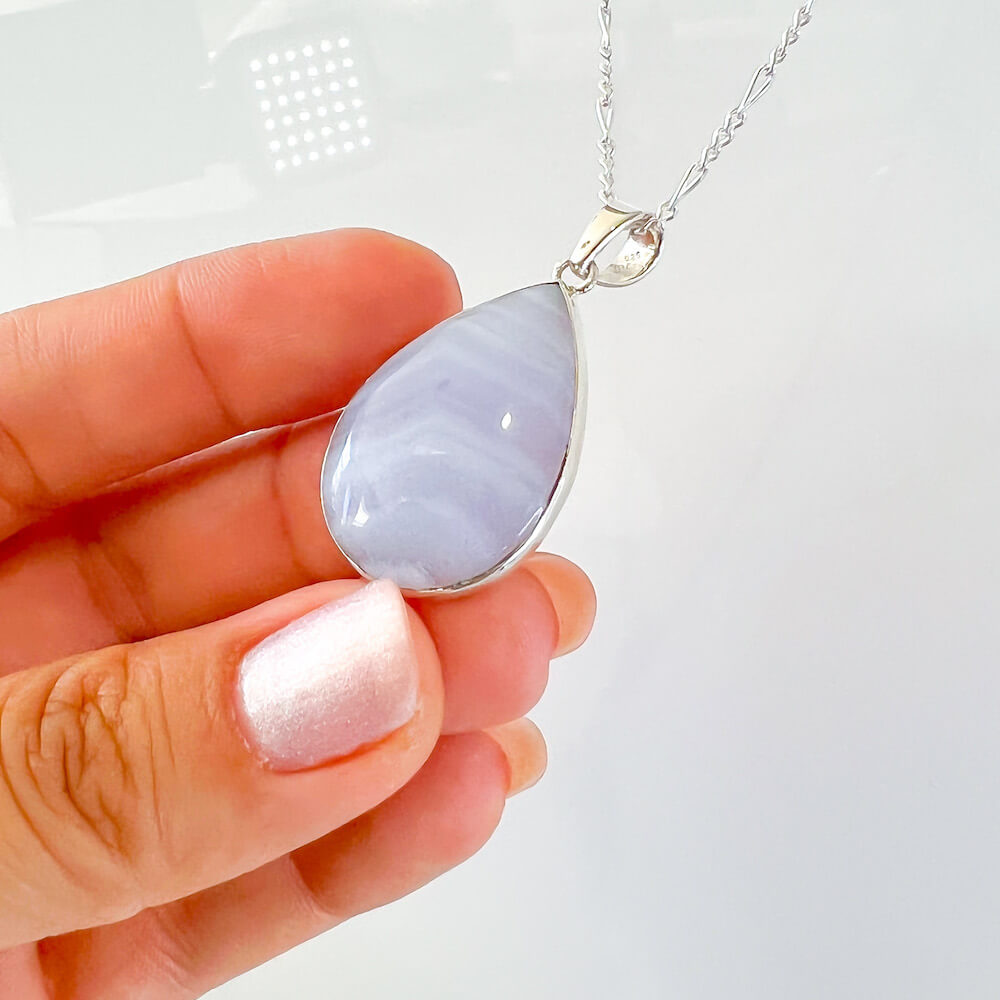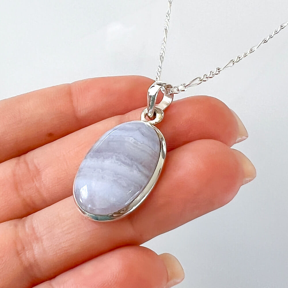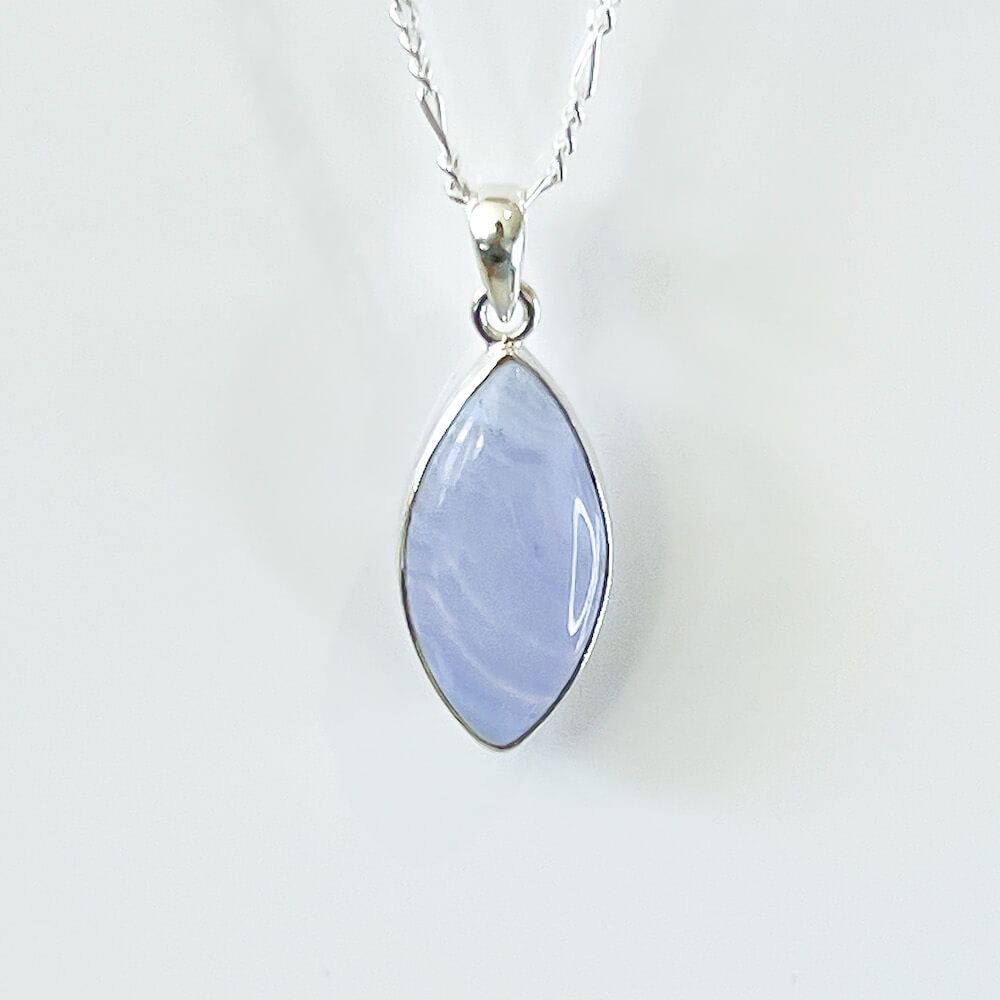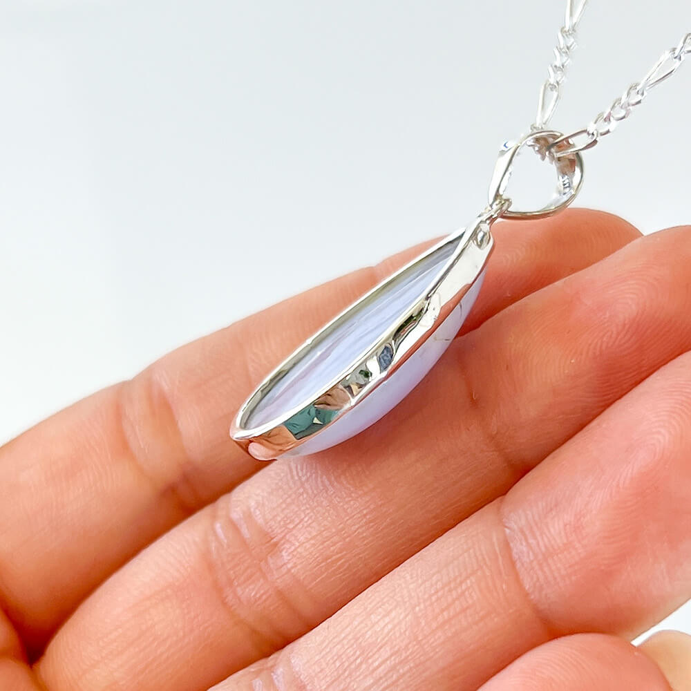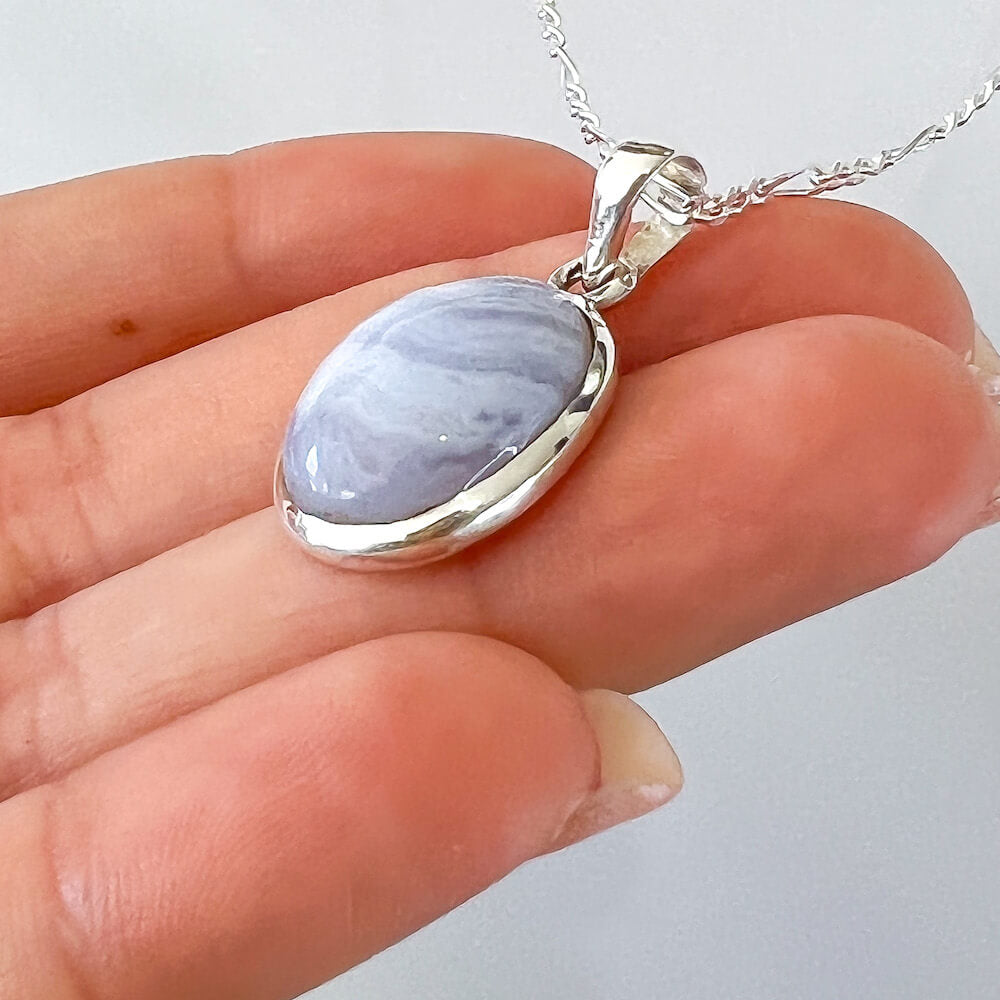 Collar con colgante de plata esterlina con ágata de encaje azul - A