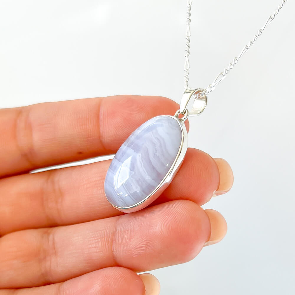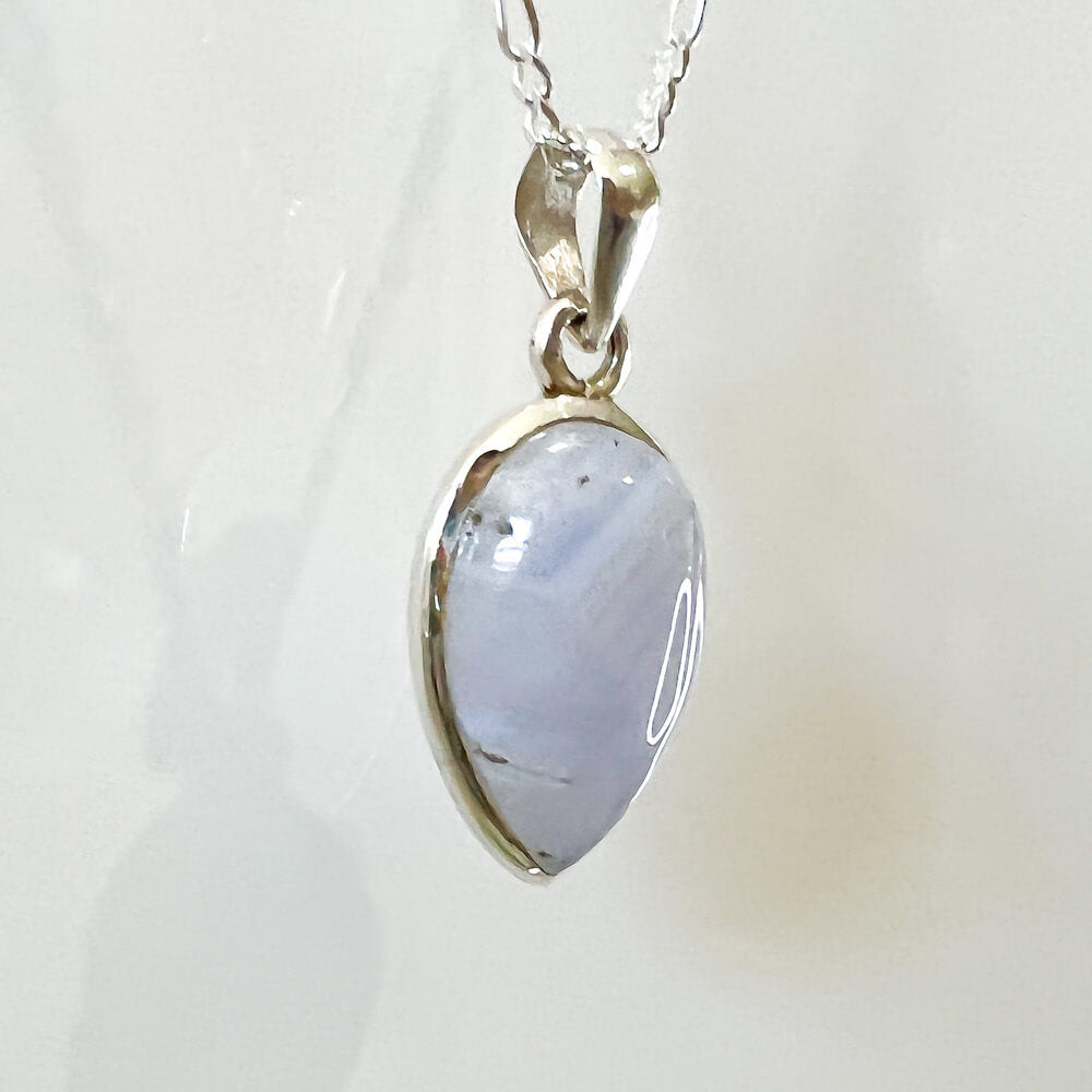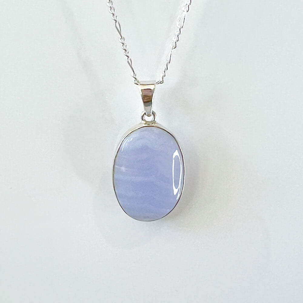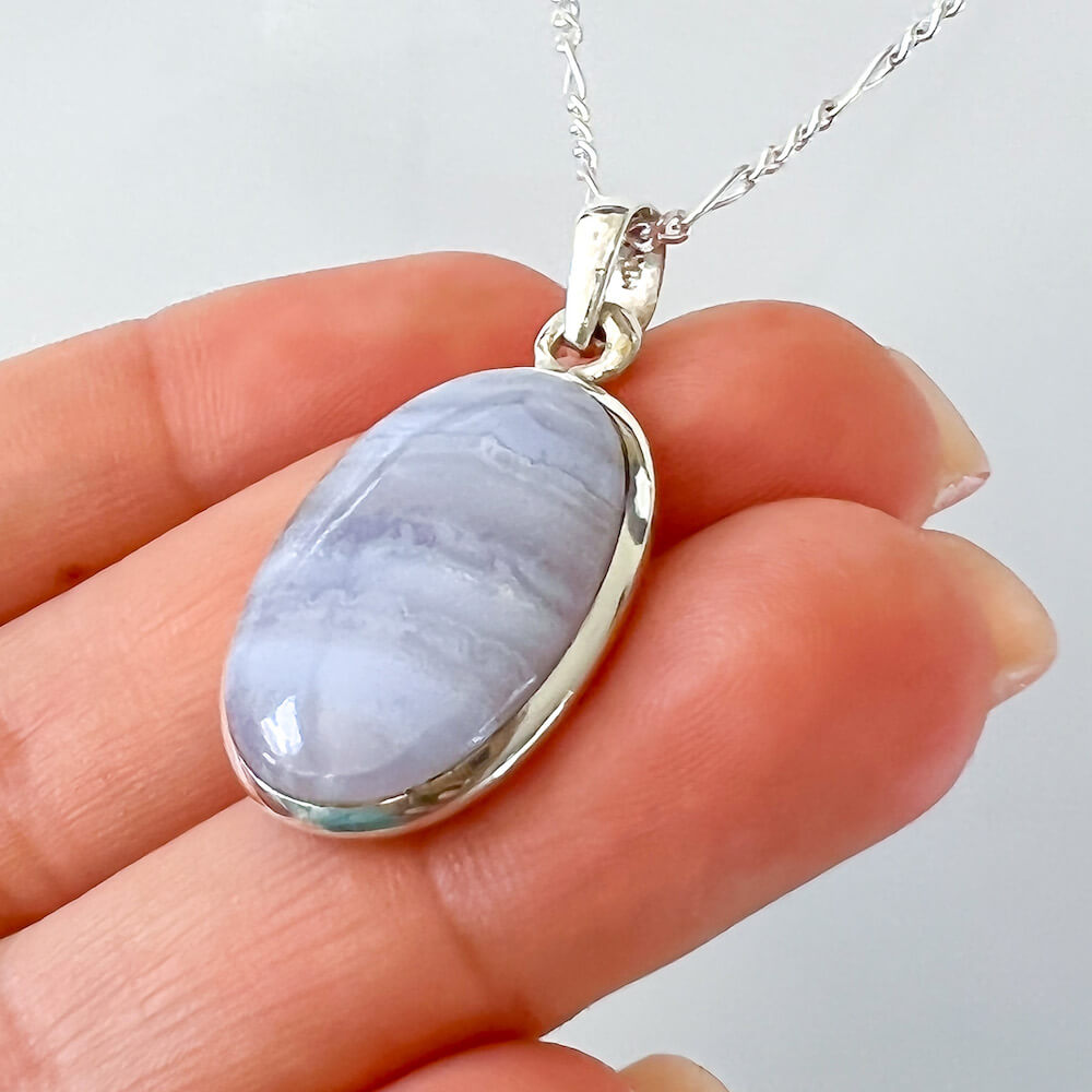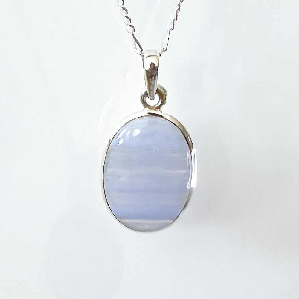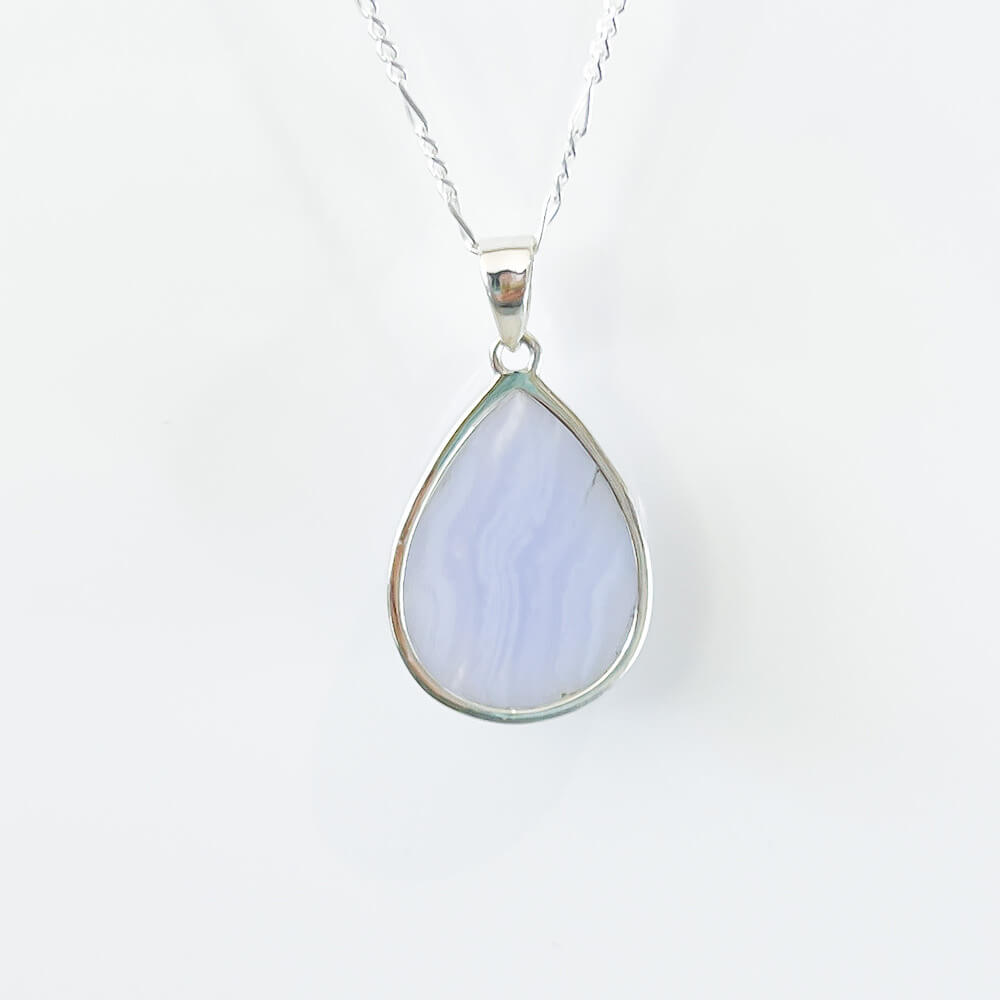 Collar con colgante de plata esterlina con ágata de encaje azul - A