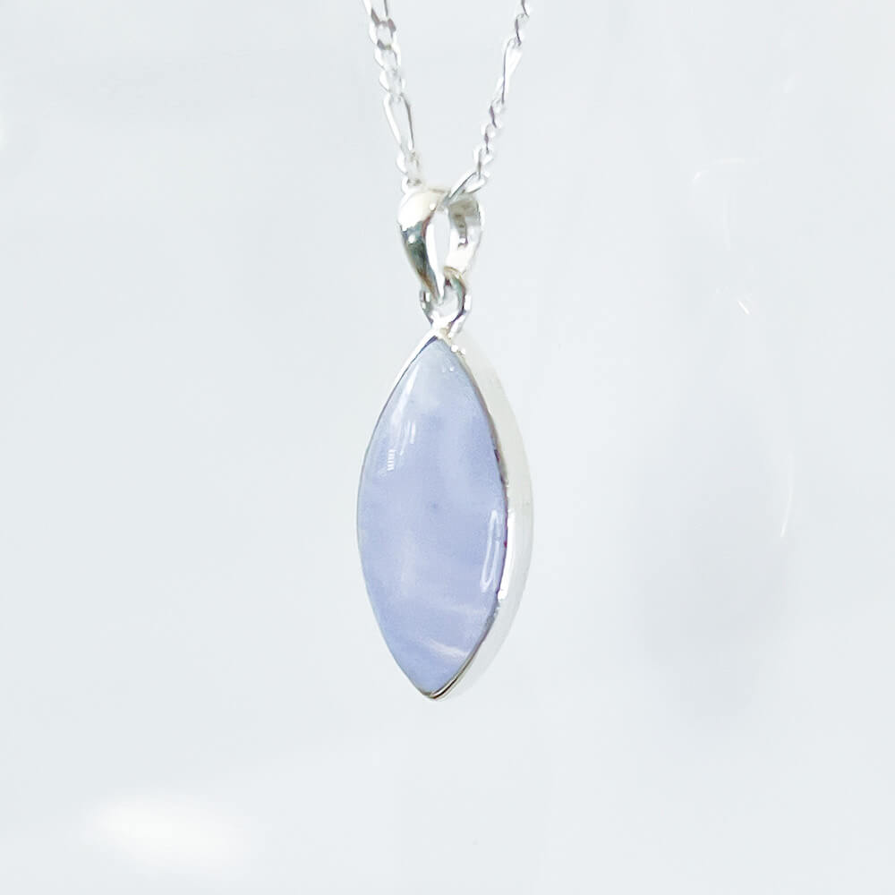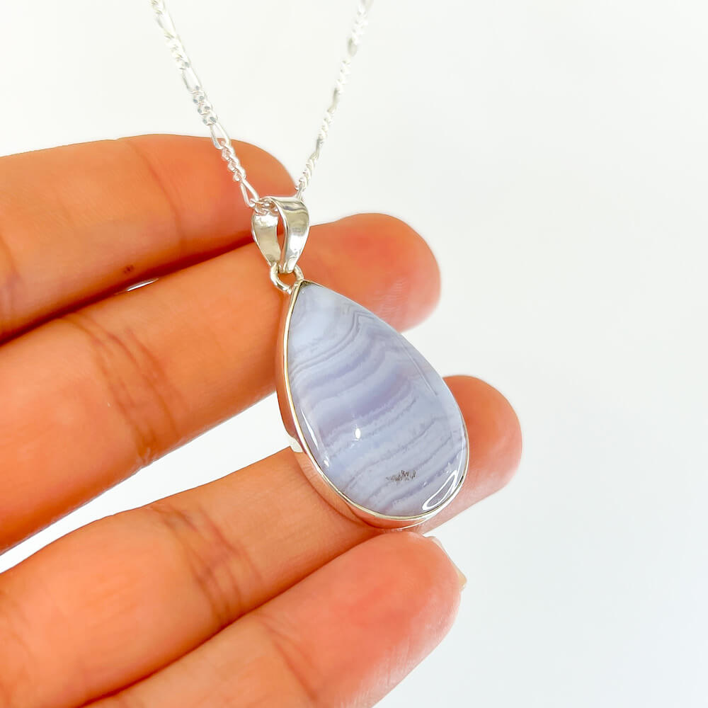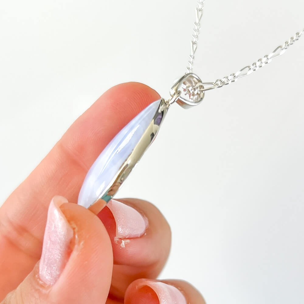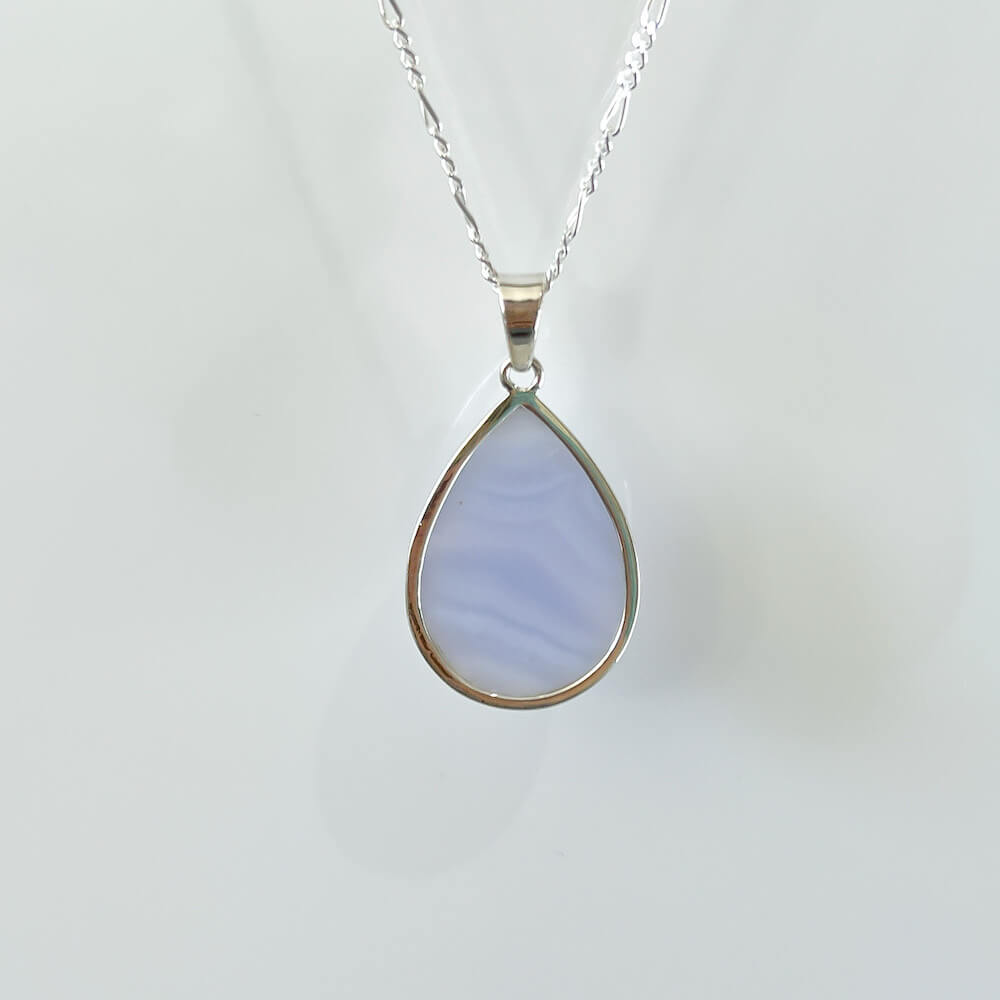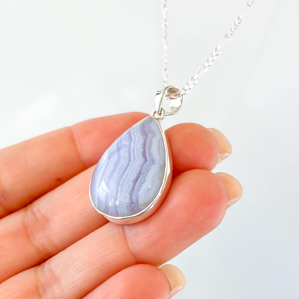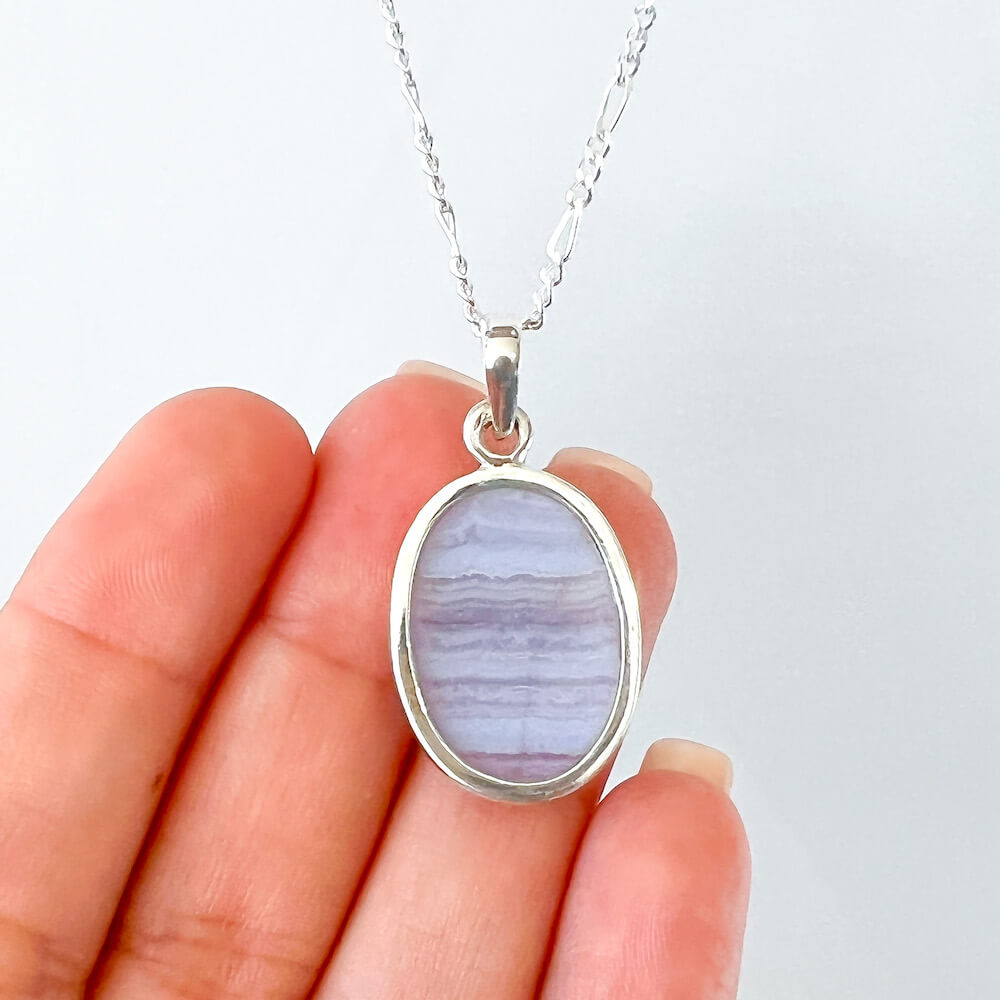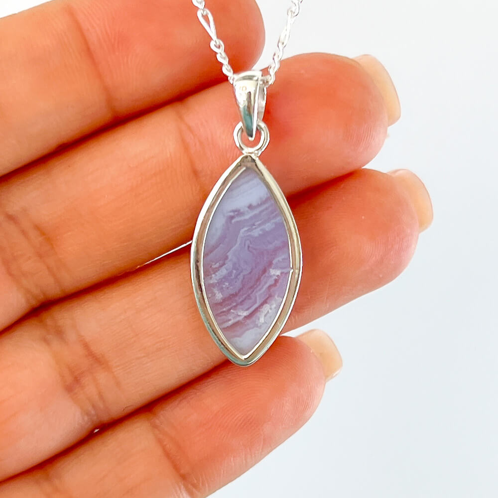 Collar con colgante de plata esterlina con ágata de encaje azul - A