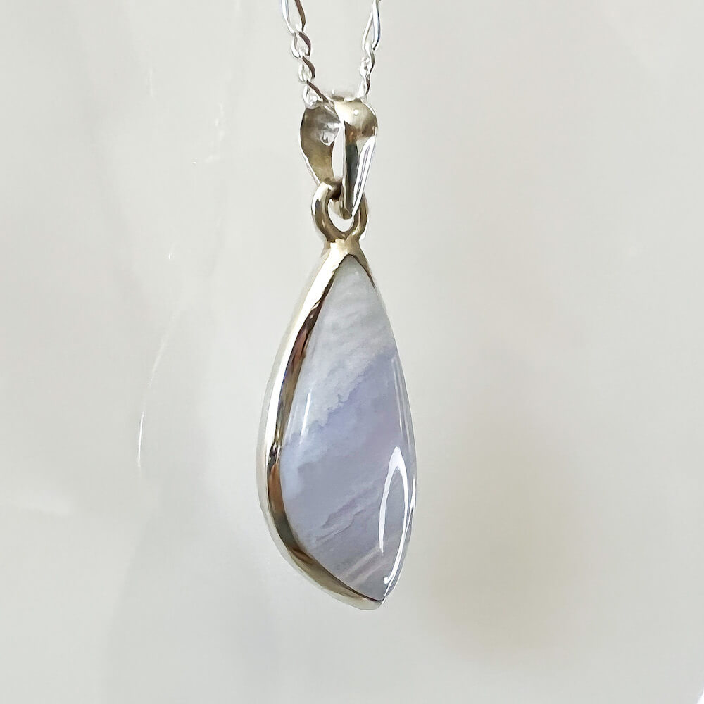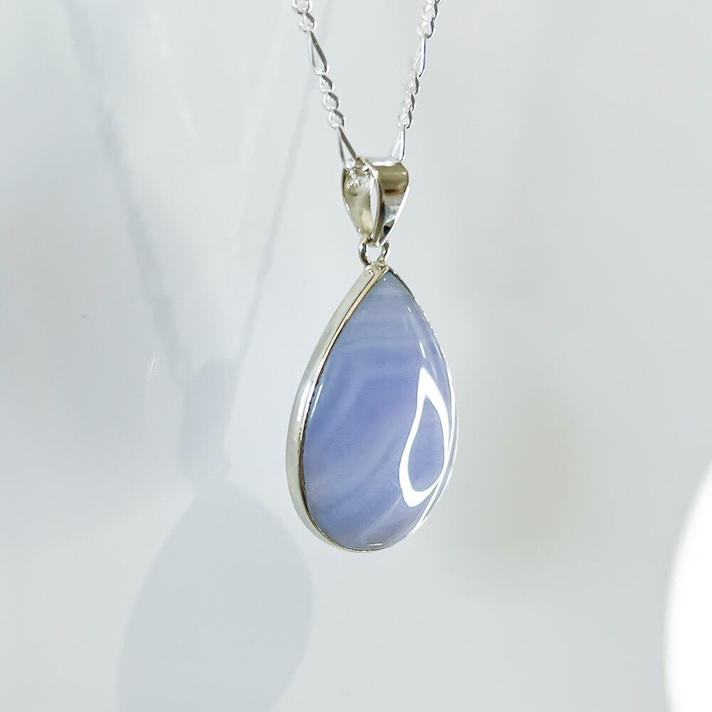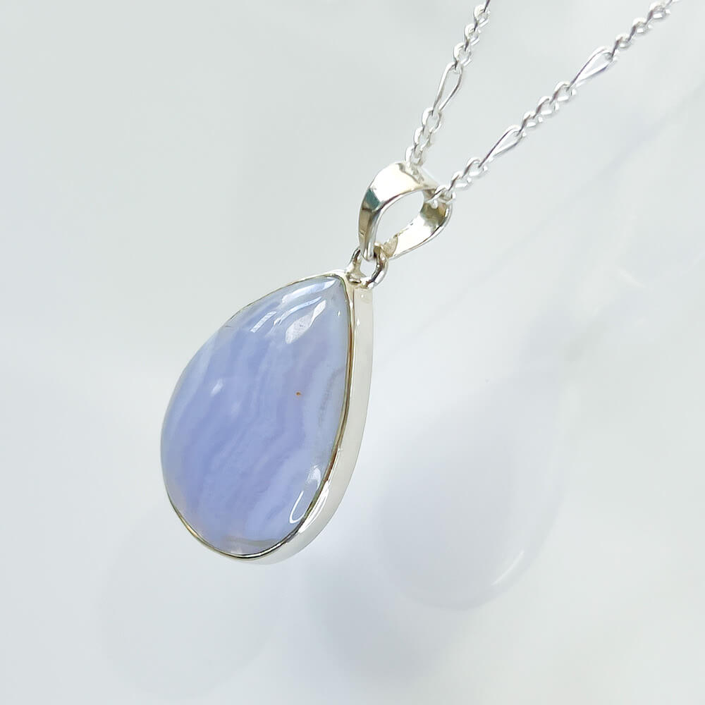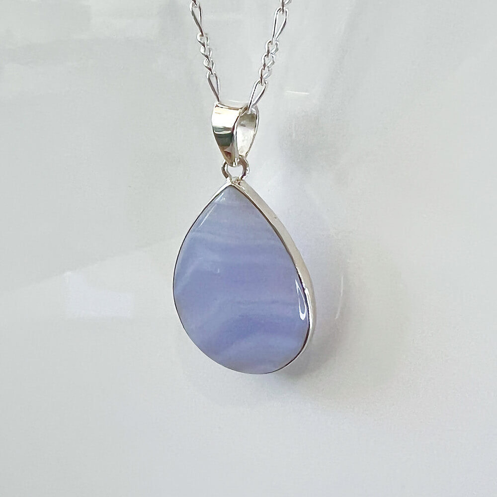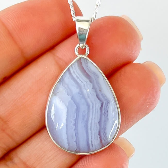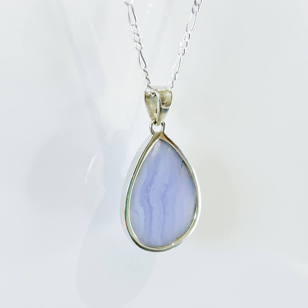 Collar con colgante de plata esterlina con ágata de encaje azul - A