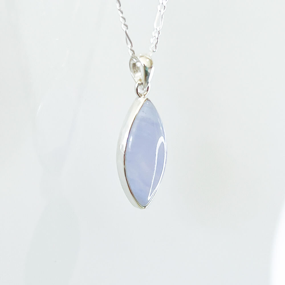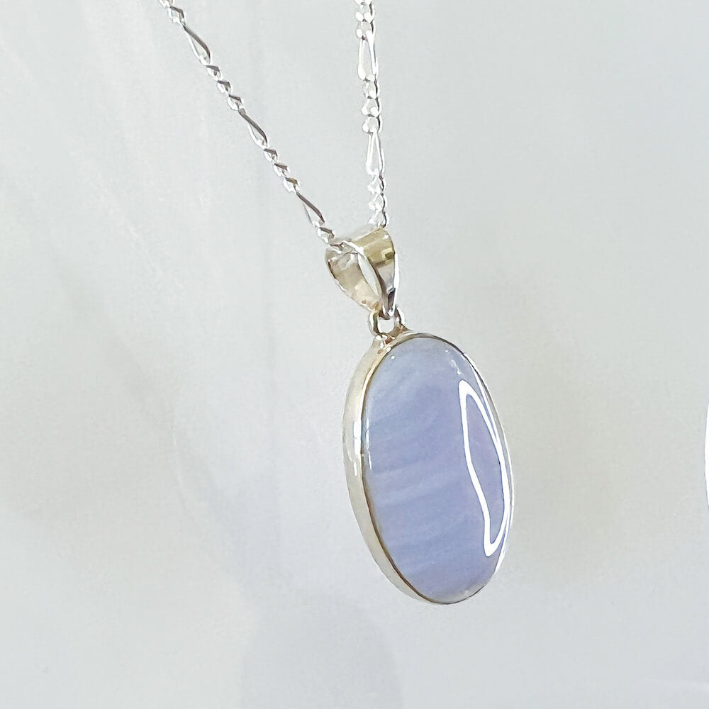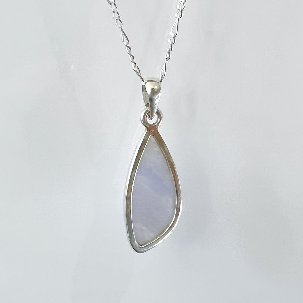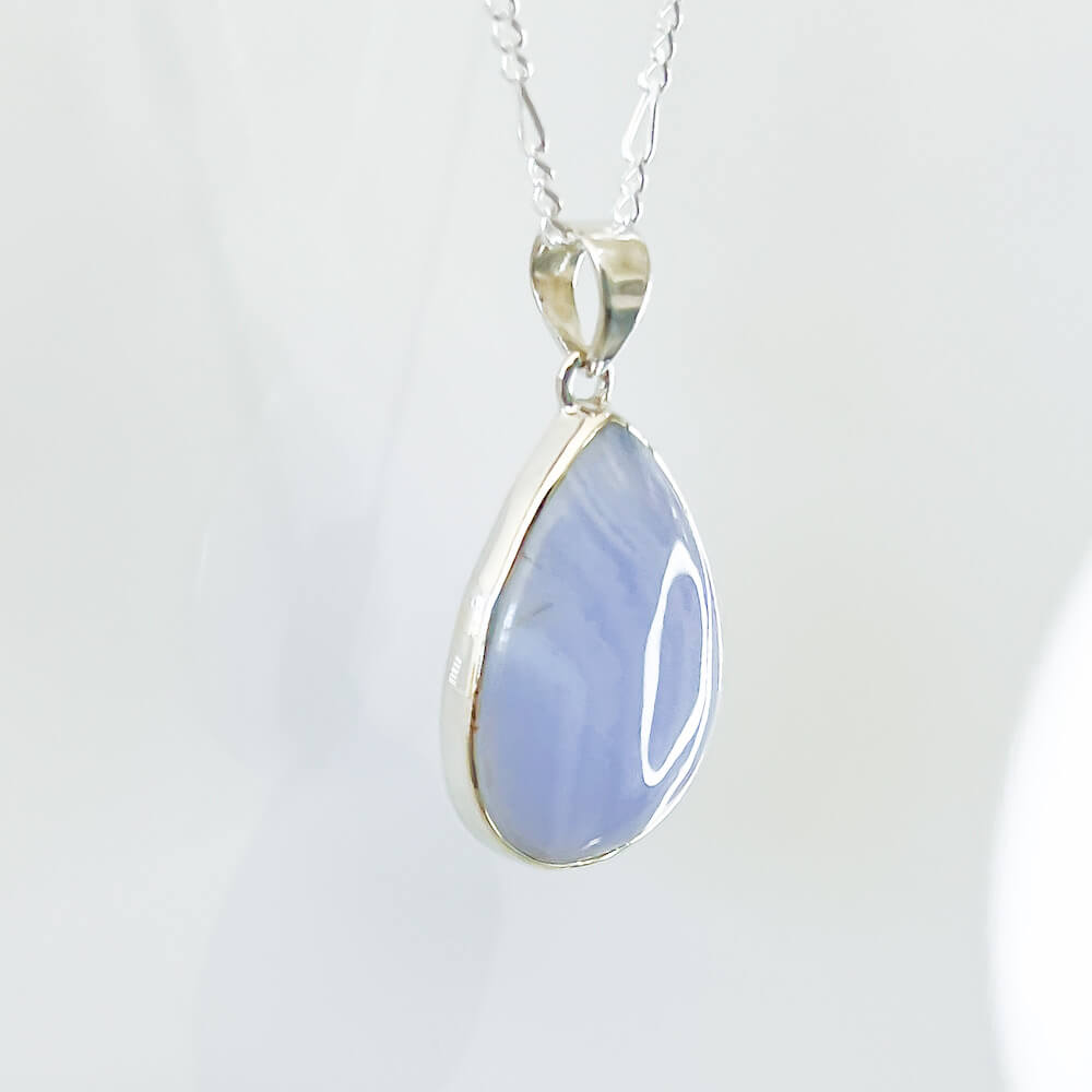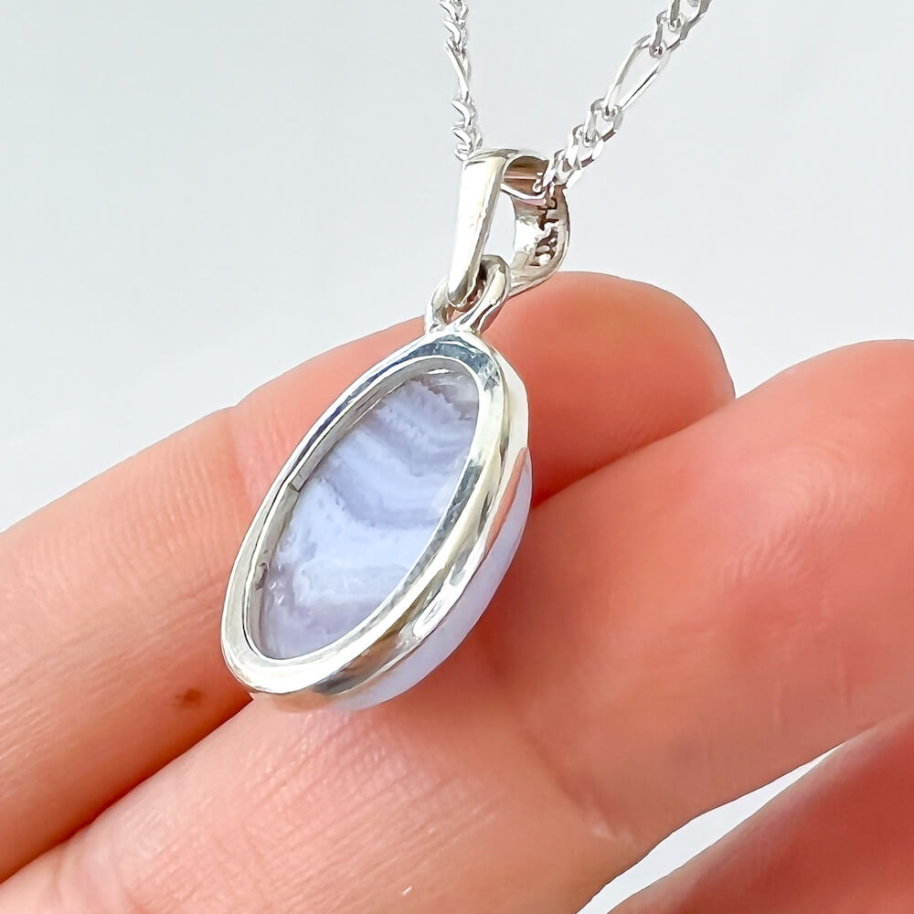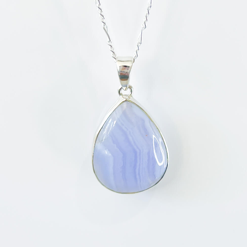 Collar con colgante de plata esterlina con ágata de encaje azul - A