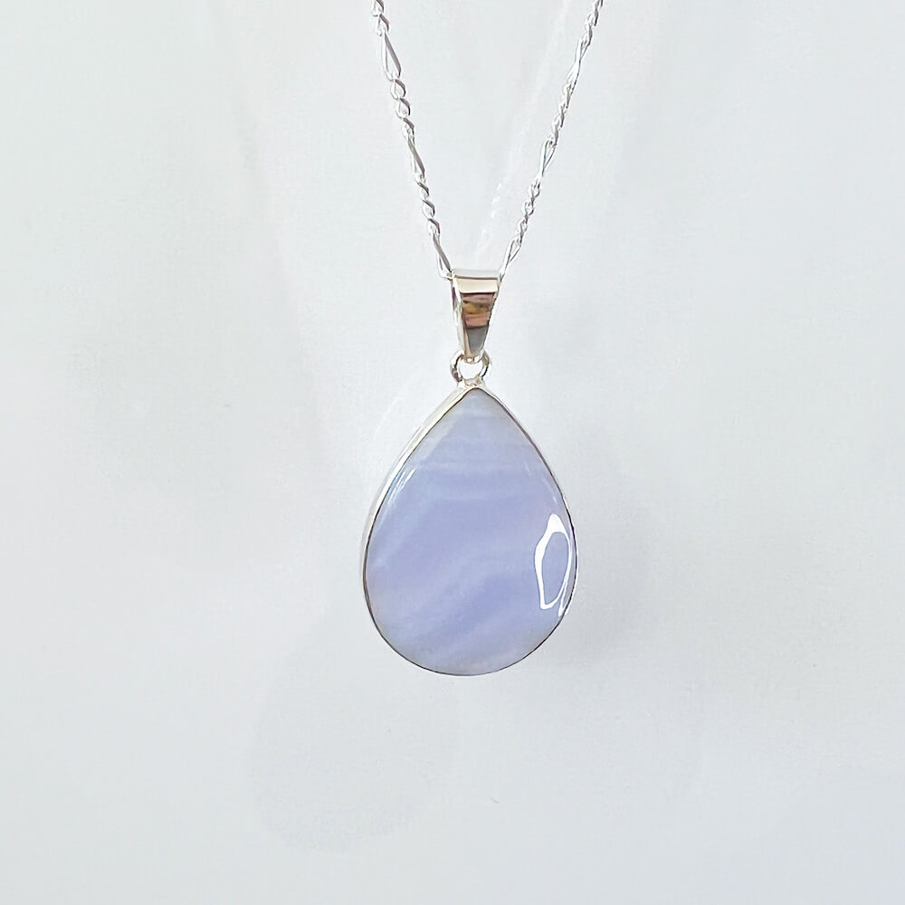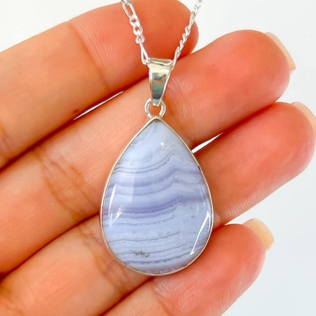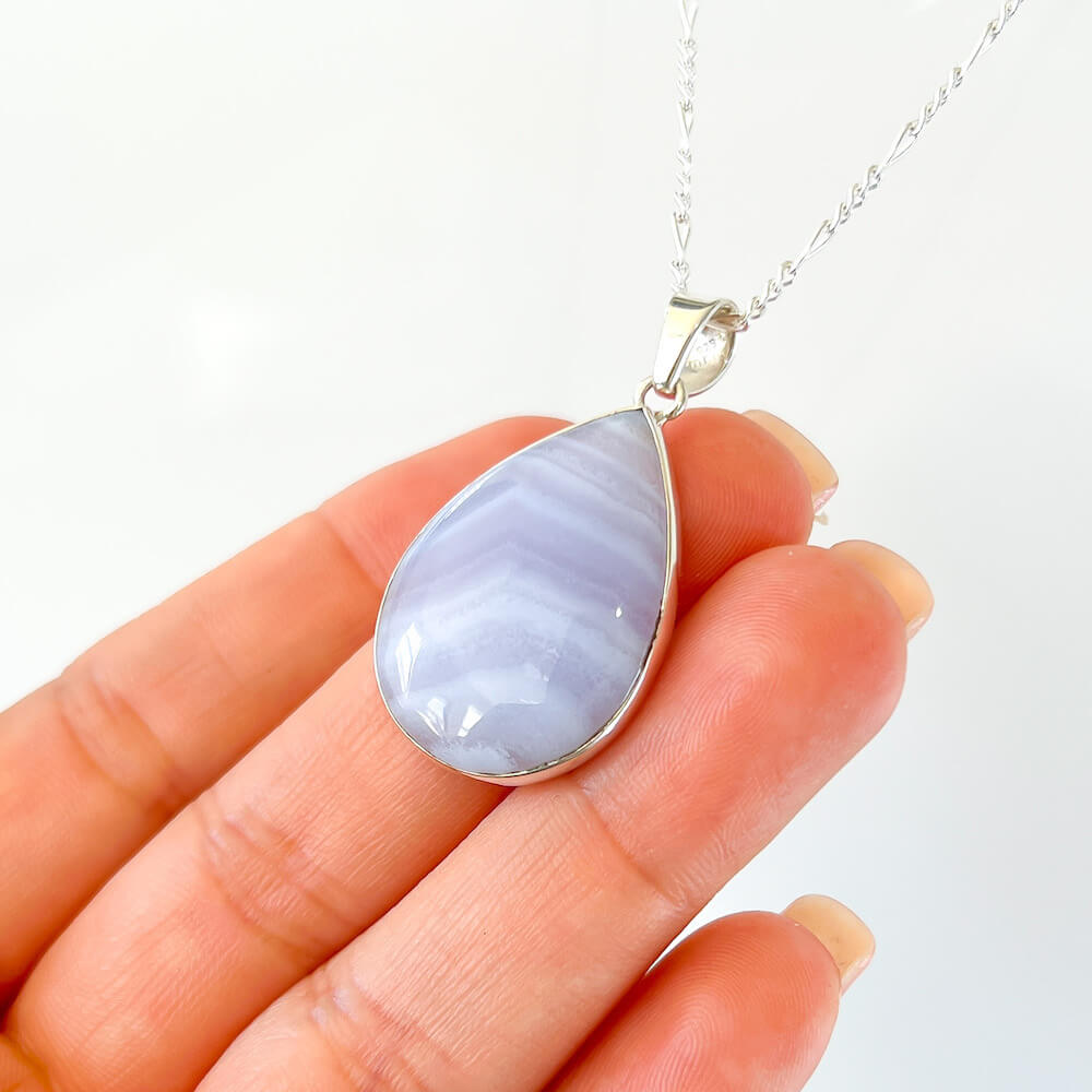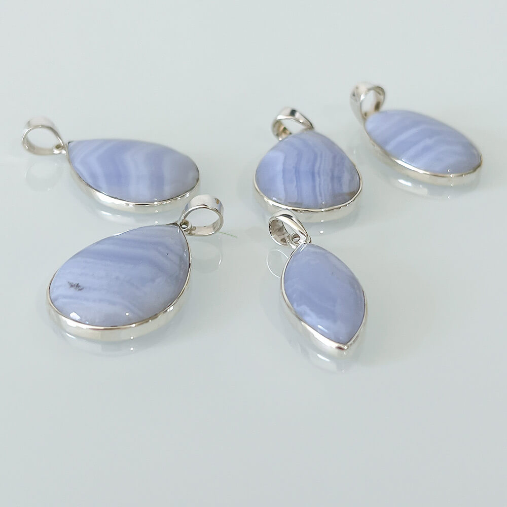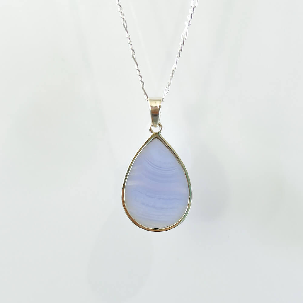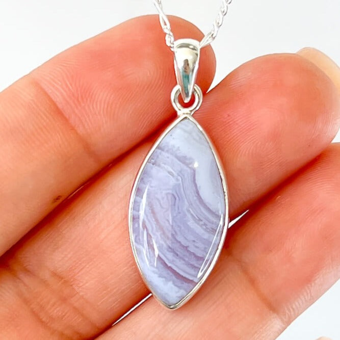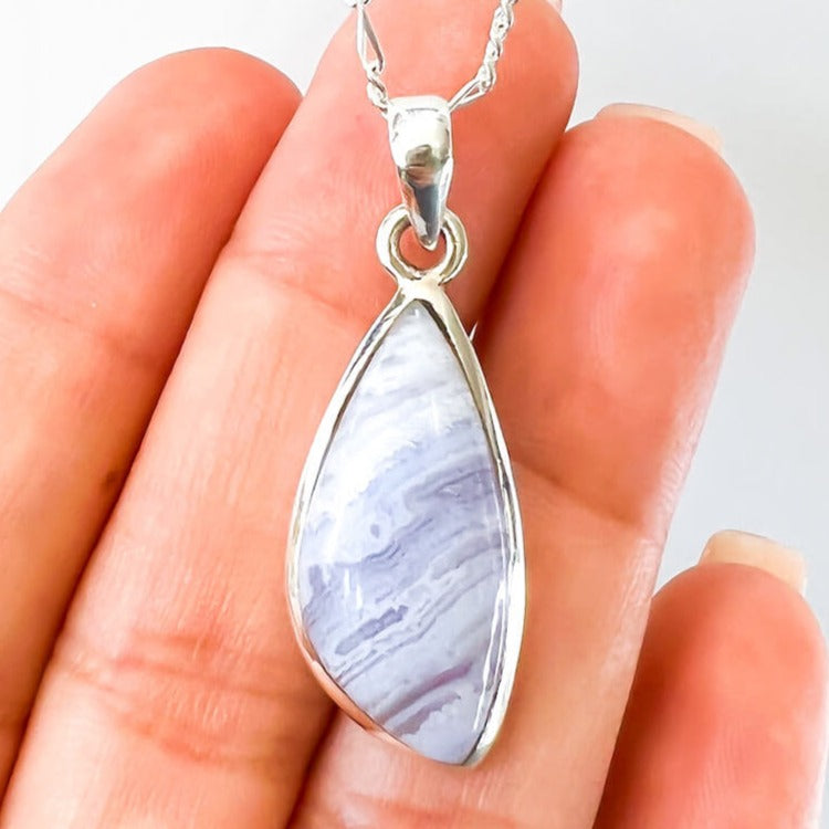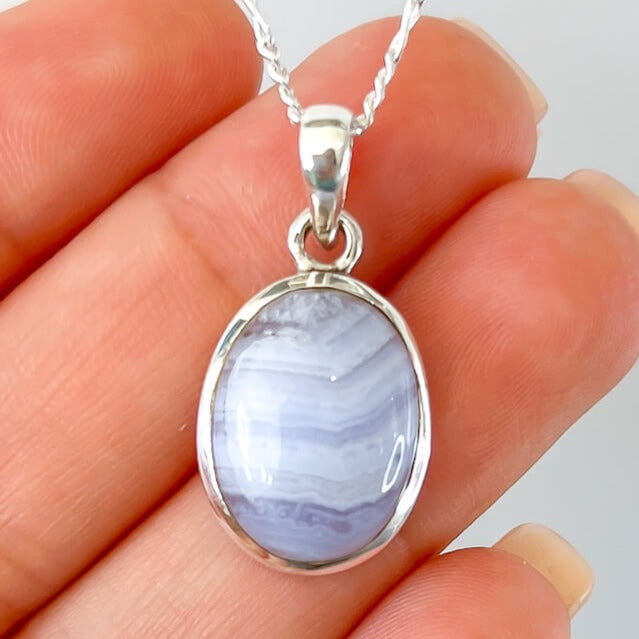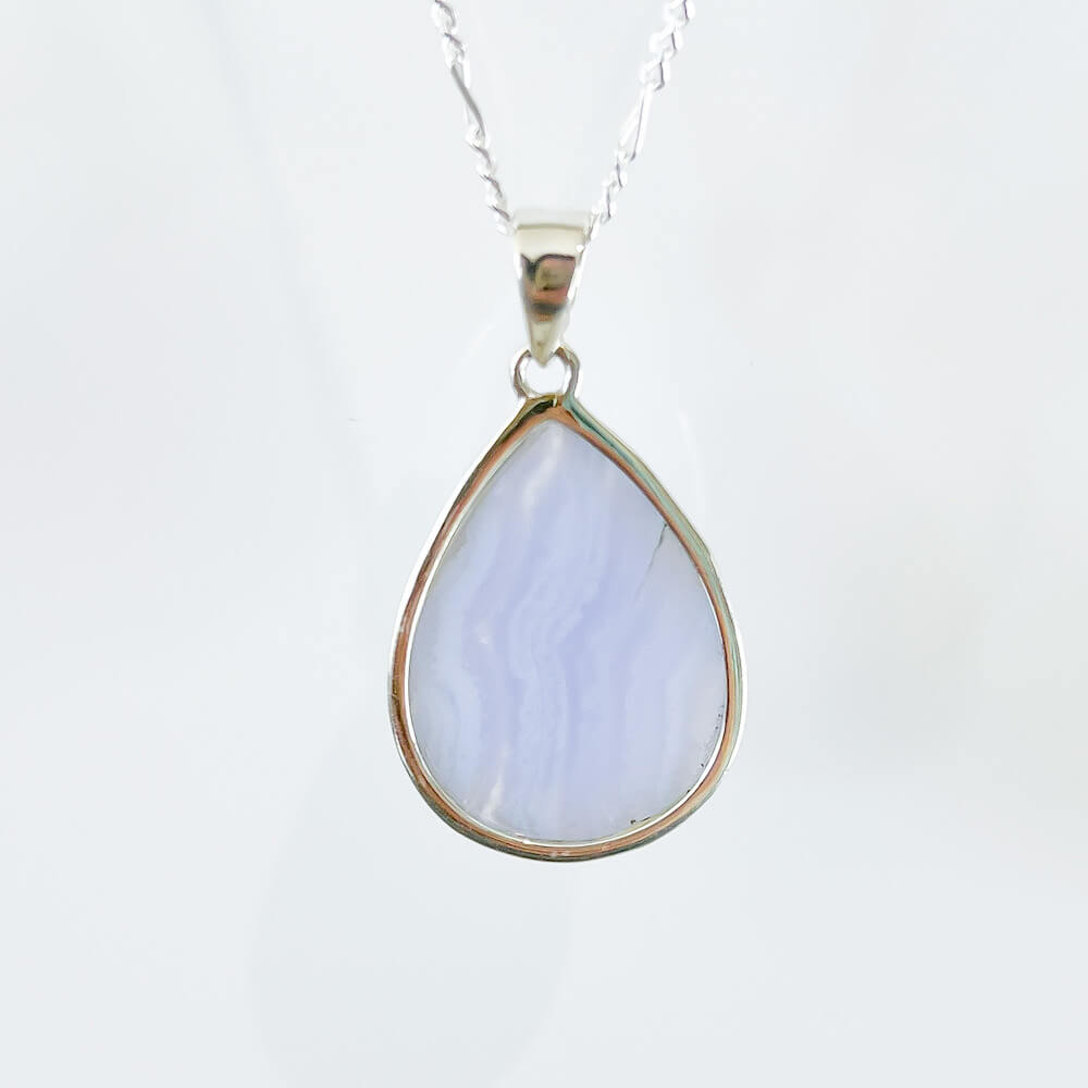 Collar con colgante de plata esterlina con ágata de encaje azul - A