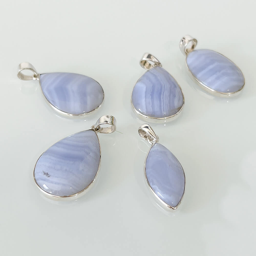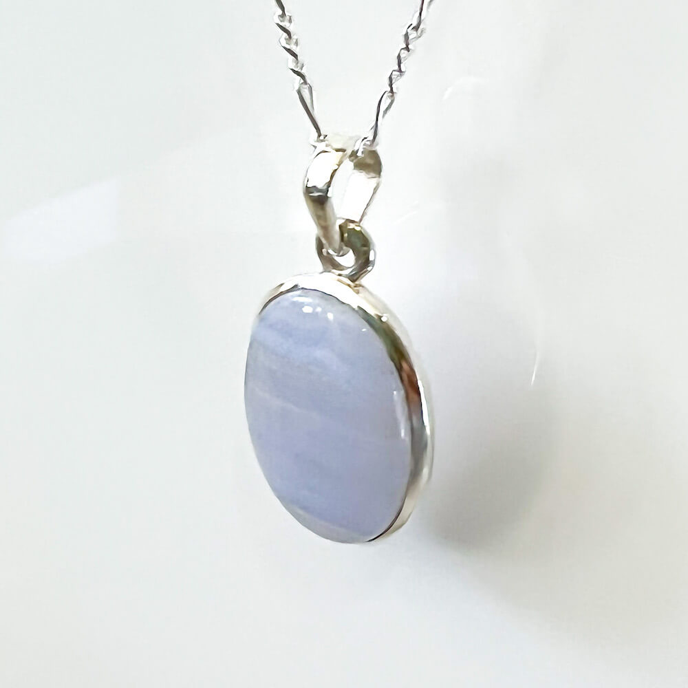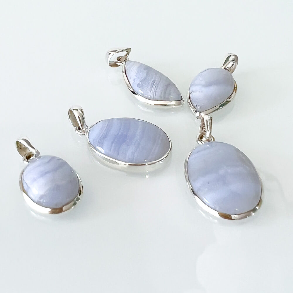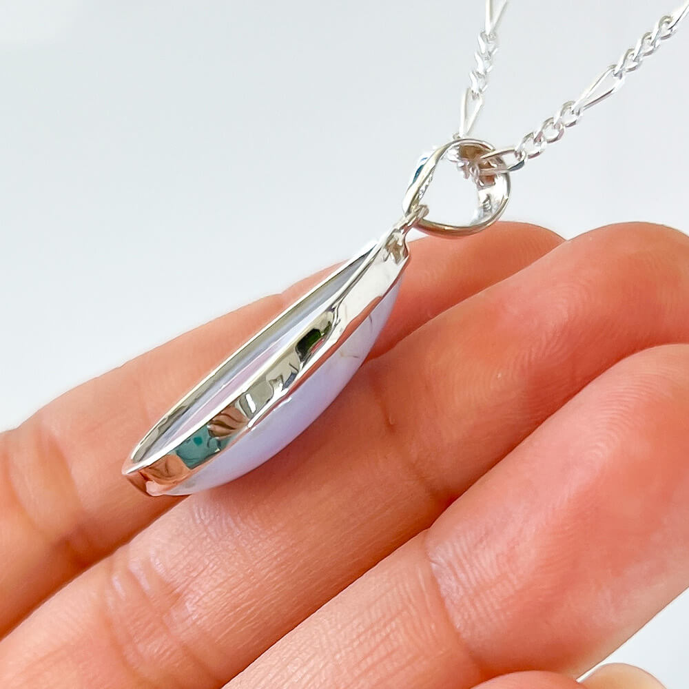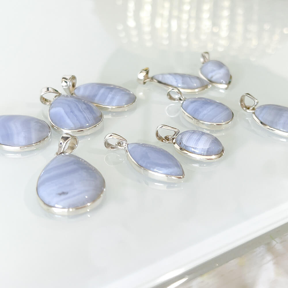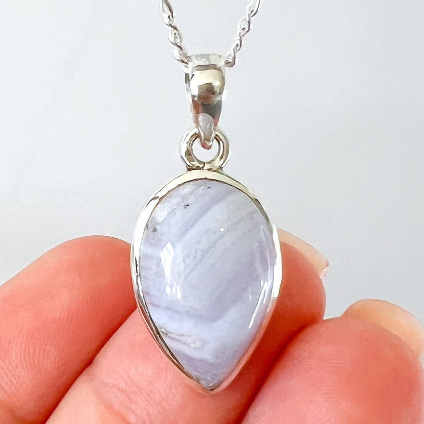 Collar con colgante de plata esterlina con ágata de encaje azul - A