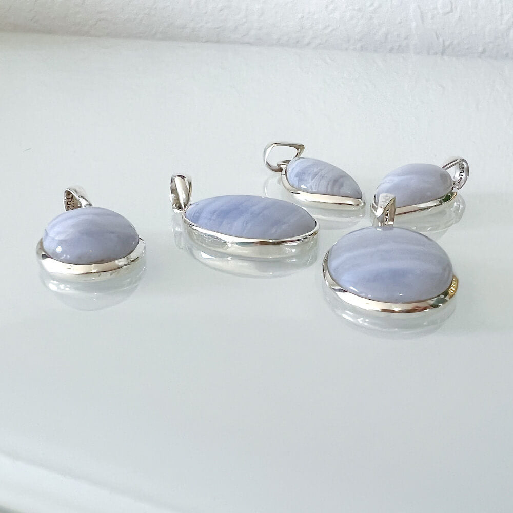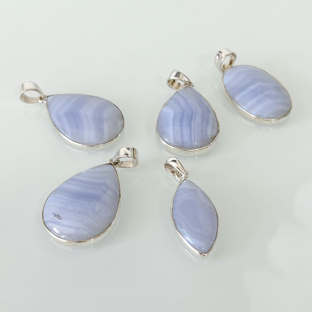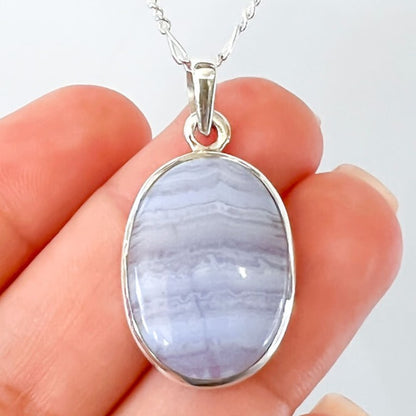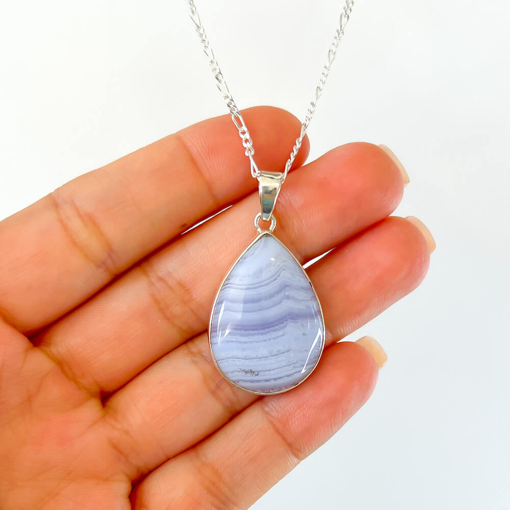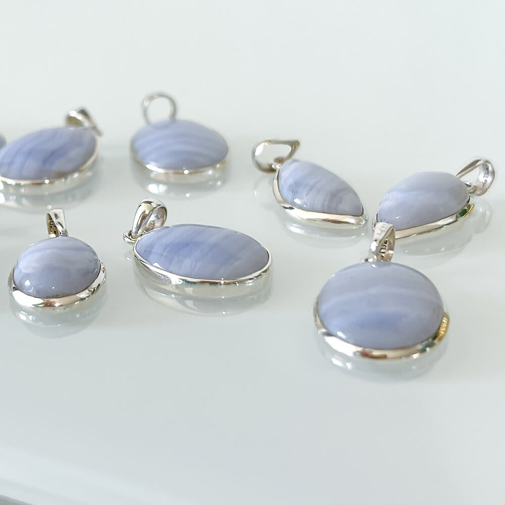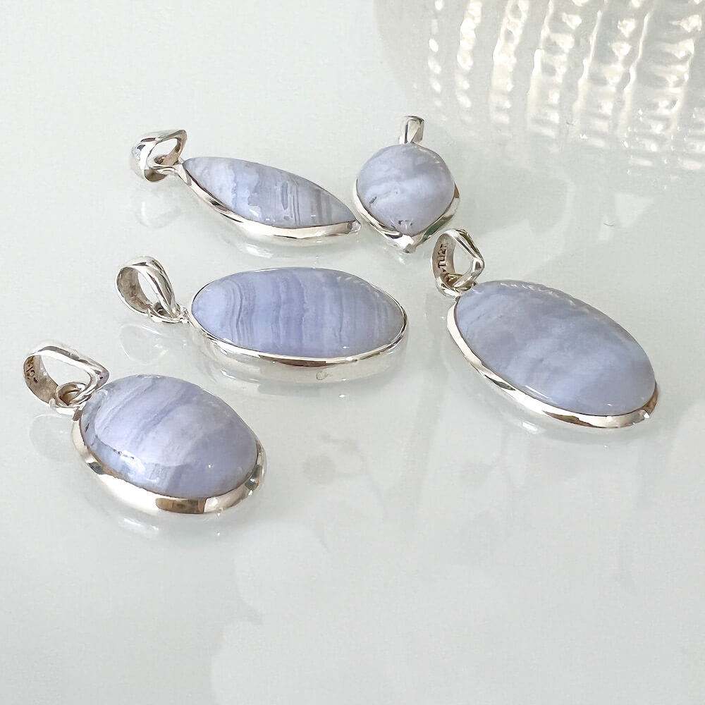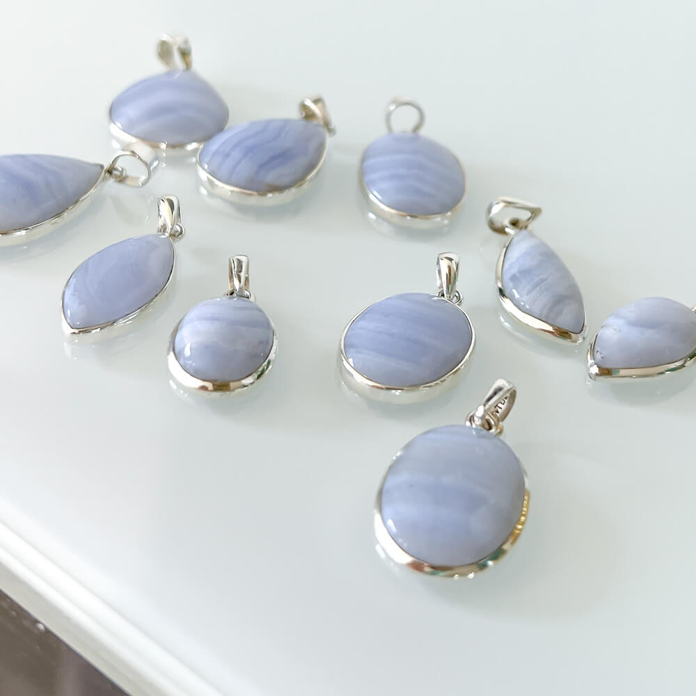 Collar con colgante de plata esterlina con ágata de encaje azul - A