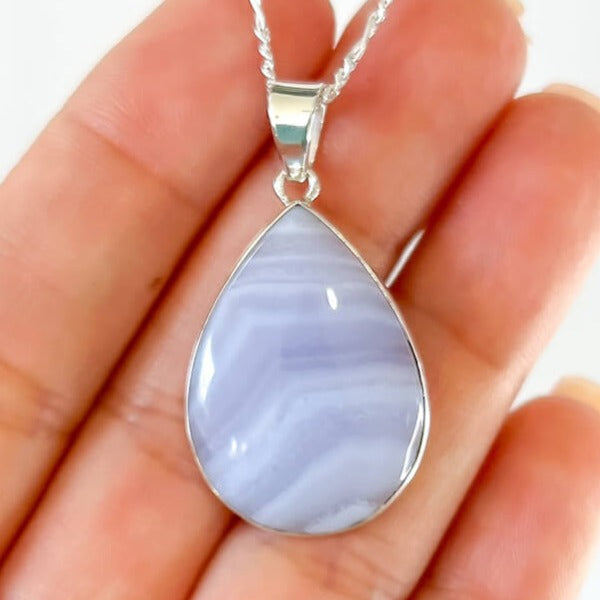Collar con colgante de plata esterlina con ágata de encaje azul