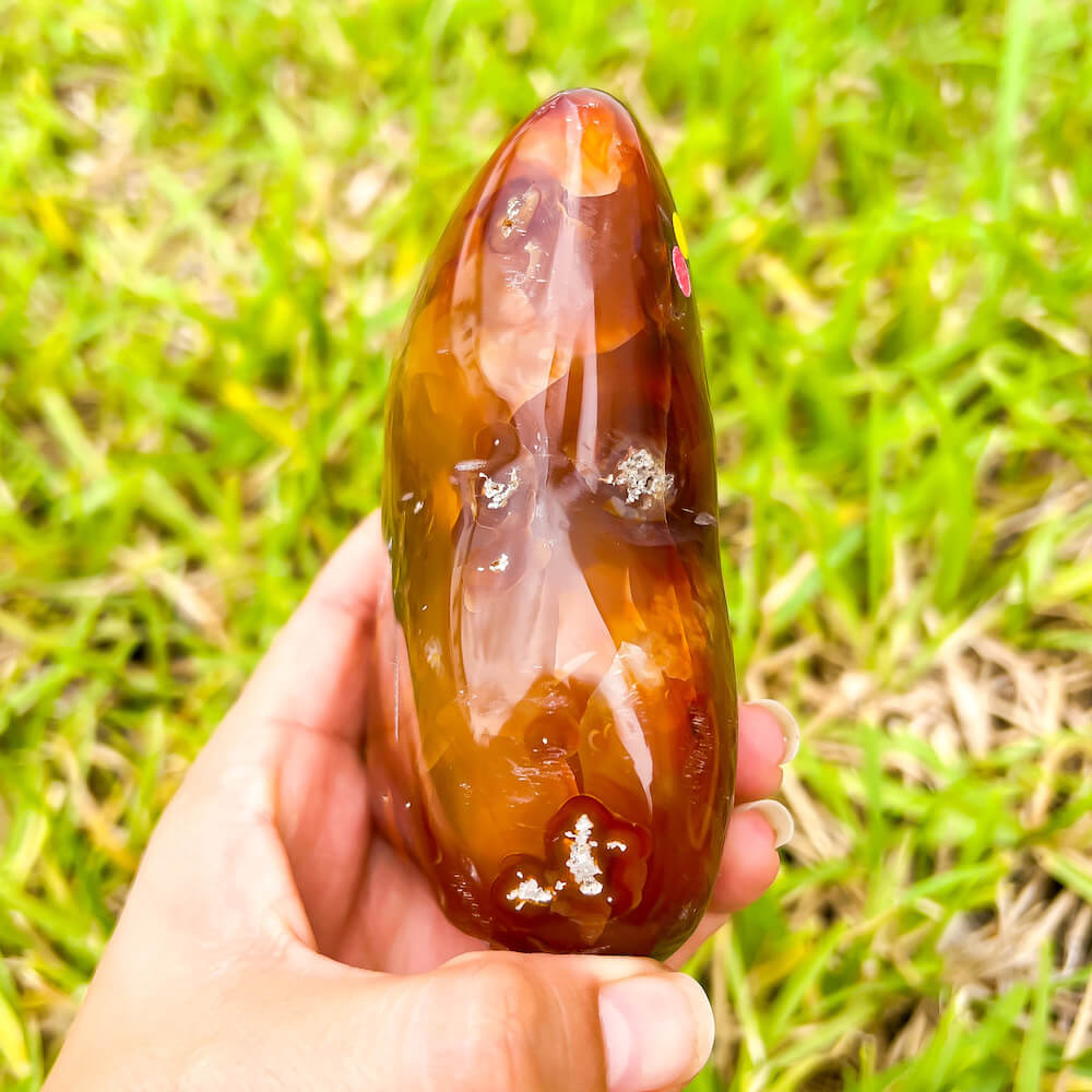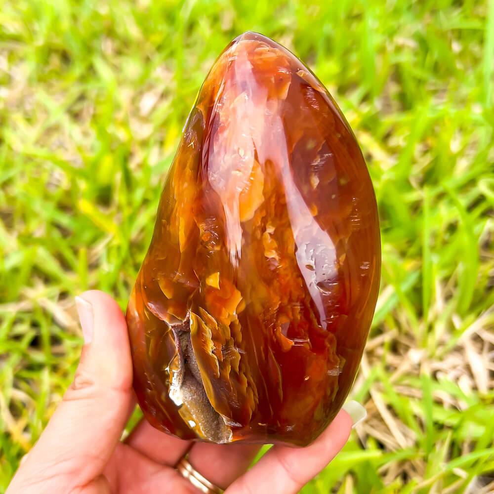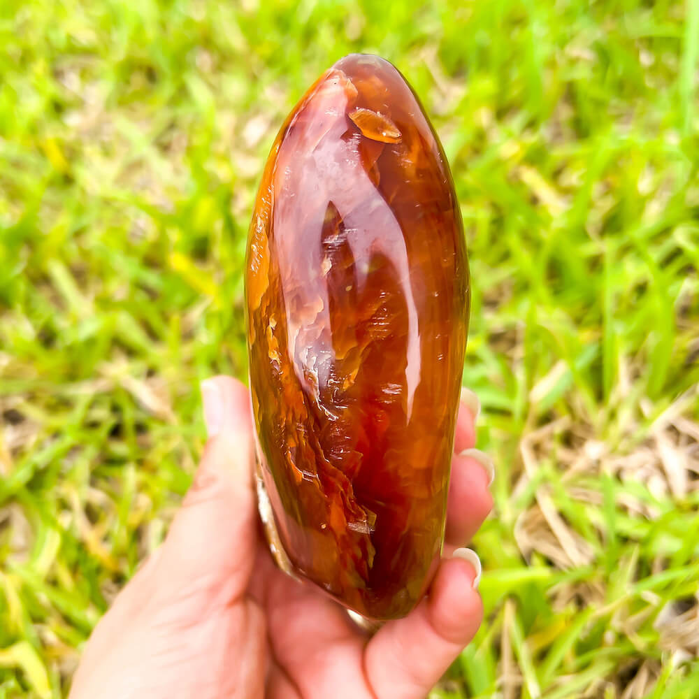 - Carnelian A: 407 grams | 3.62 in. x 2.50 in. x 2.04 in.