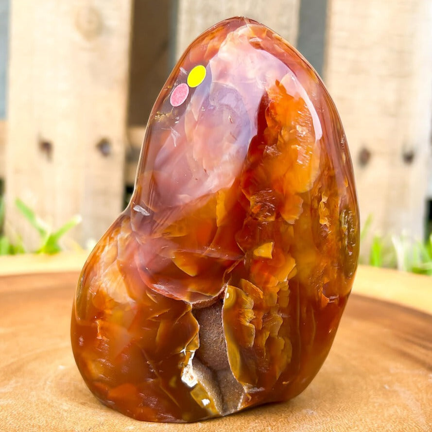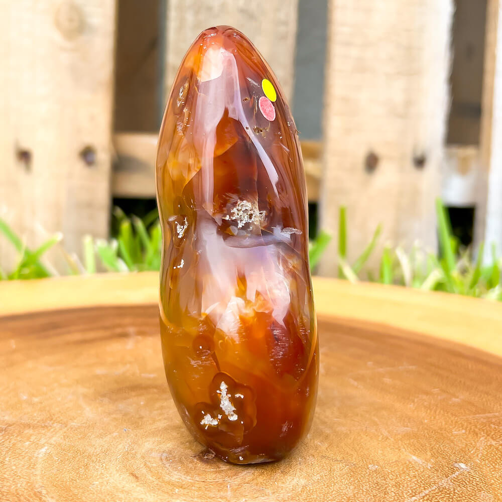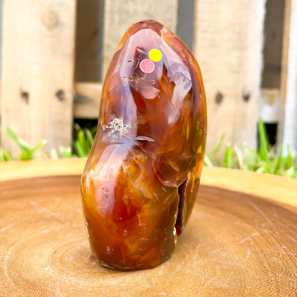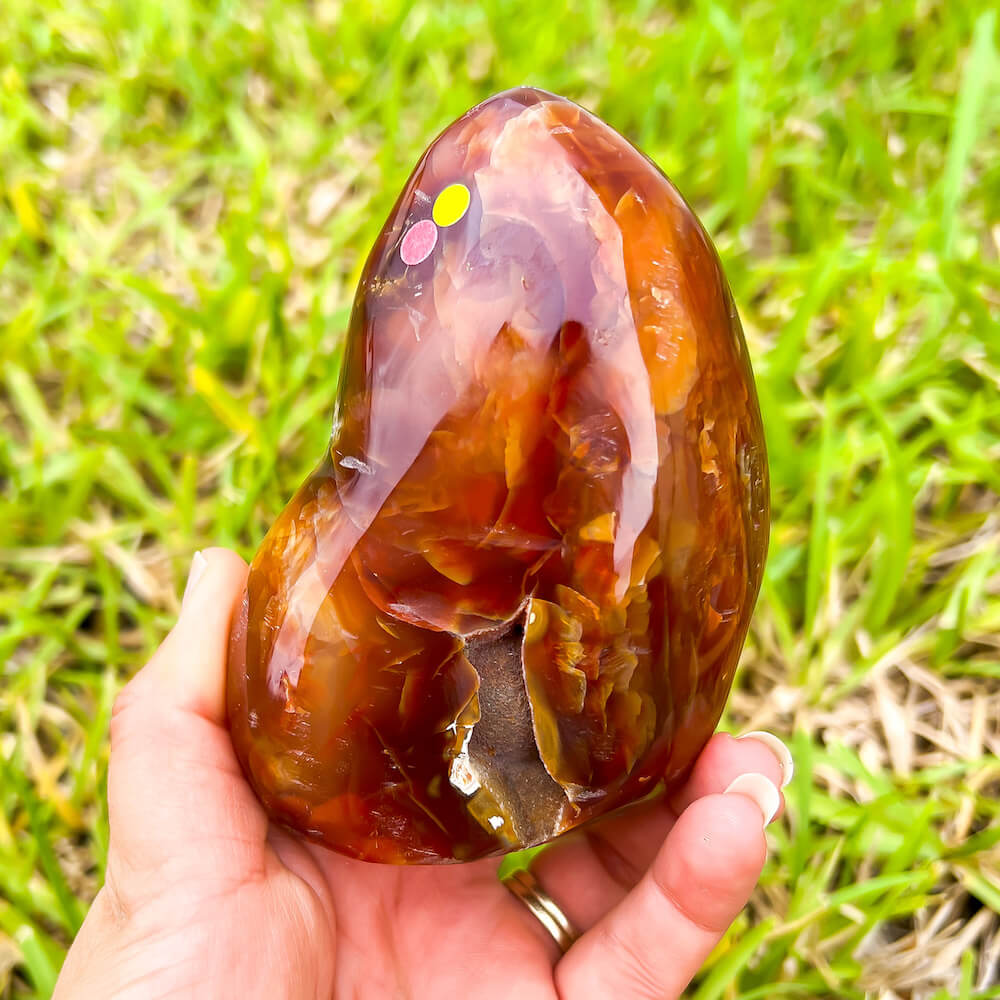 - Carnelian A: 407 grams | 3.62 in. x 2.50 in. x 2.04 in.