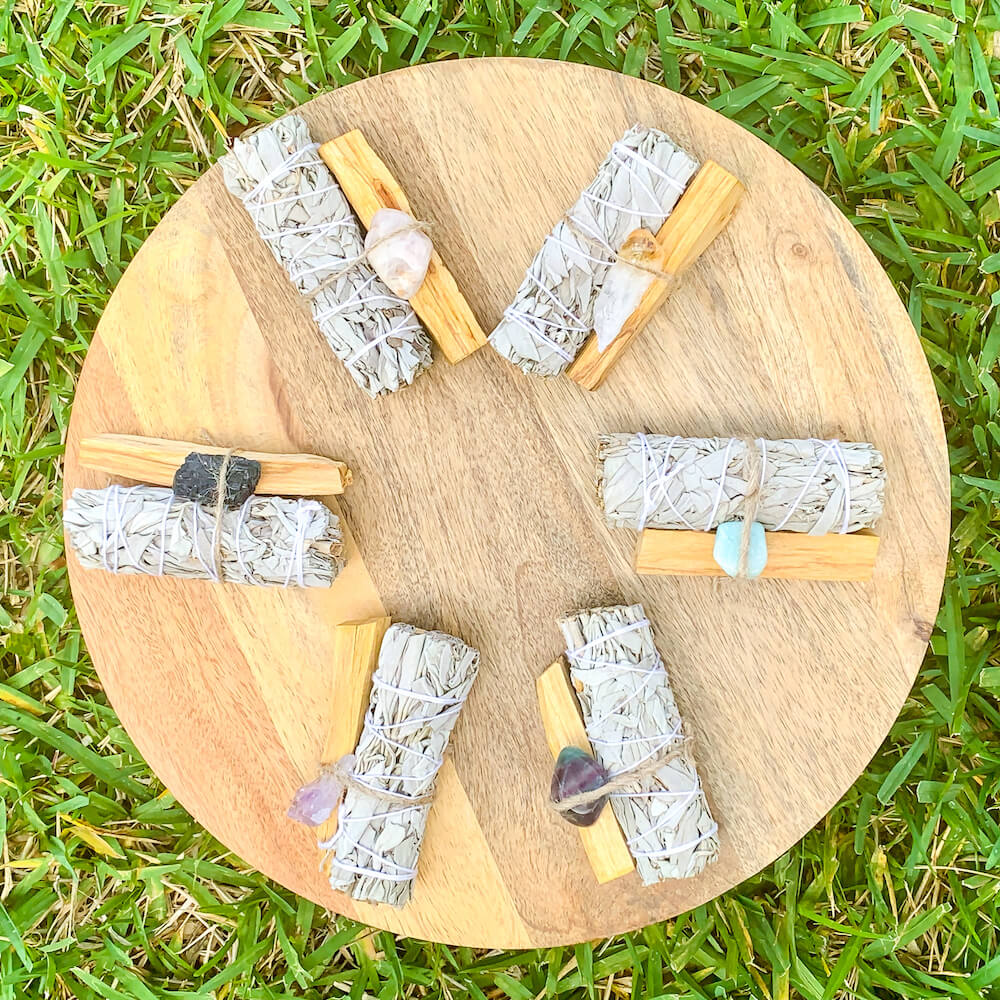 Paquete de manchas de citrino - Palo Santo - Salvia blanca - Citrino