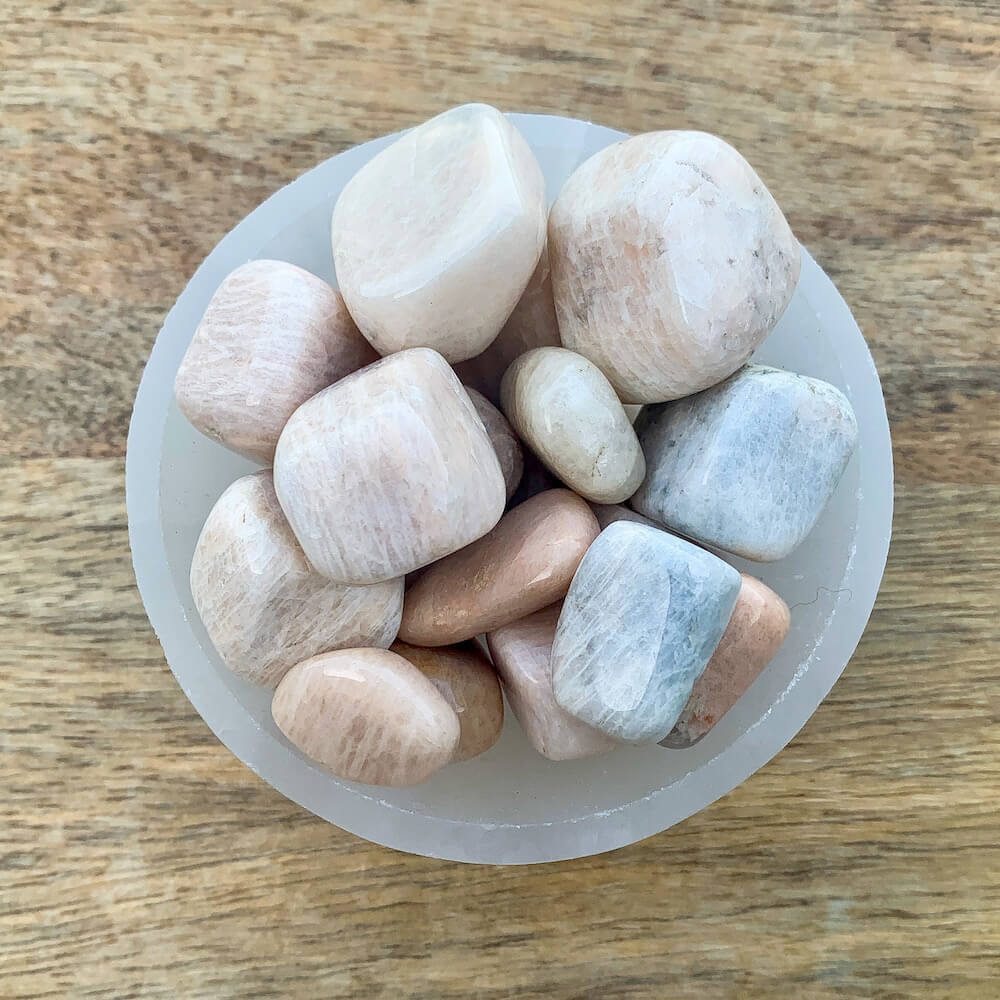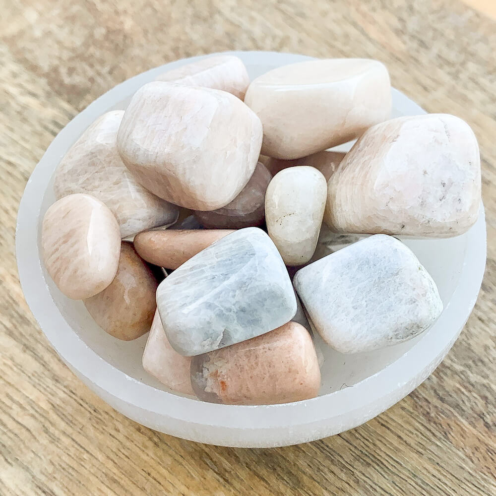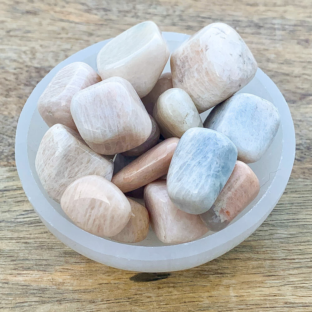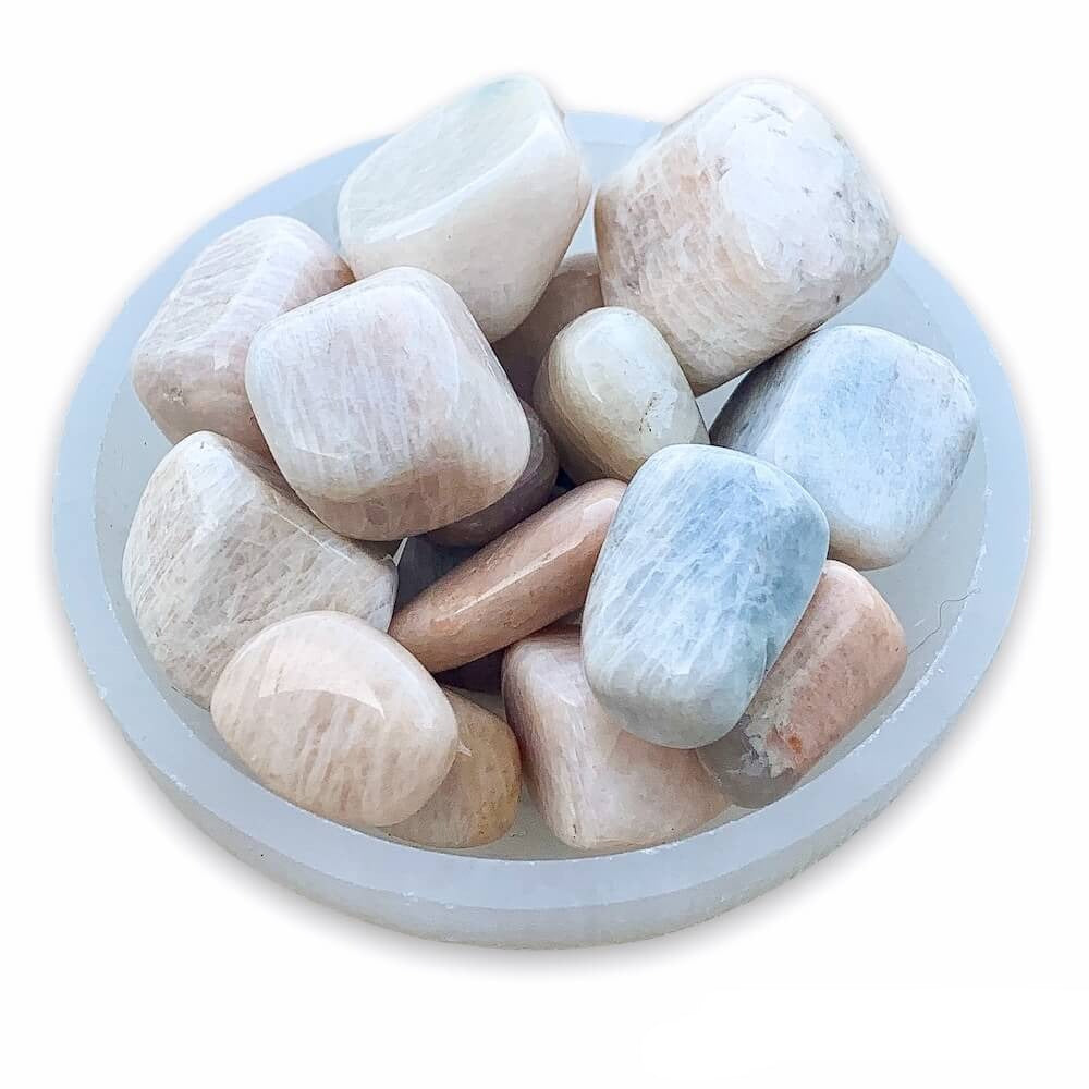 Se dice que la piedra lunar trae esperanza y mejora las energías femeninas, la sensibilidad, la intuición y las habilidades psíquicas. También se dice que trae fuertes energías de abundancia a la vida. También se asocia con el amor de todo tipo.