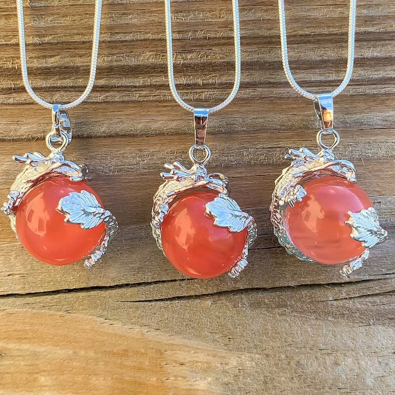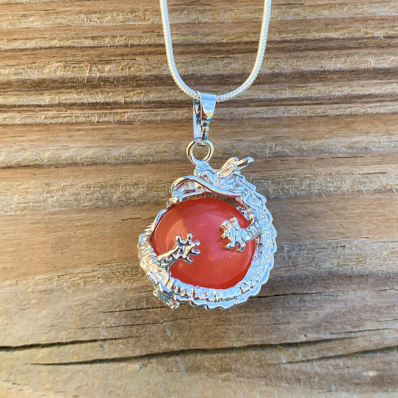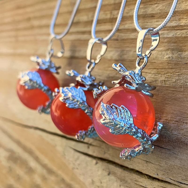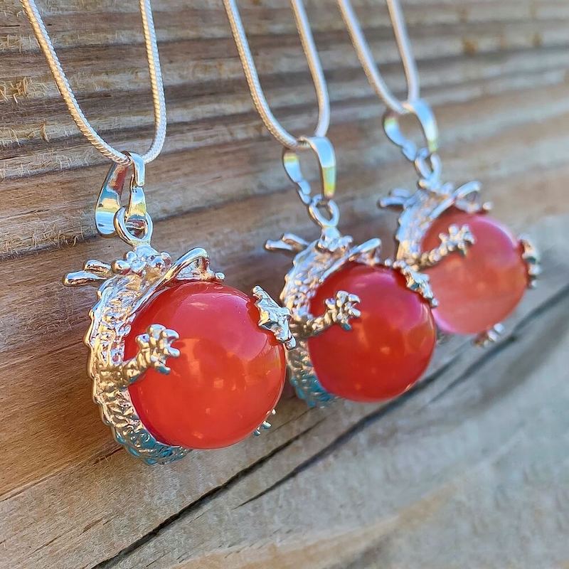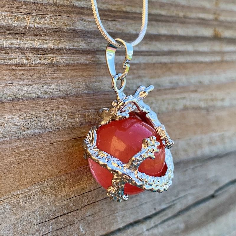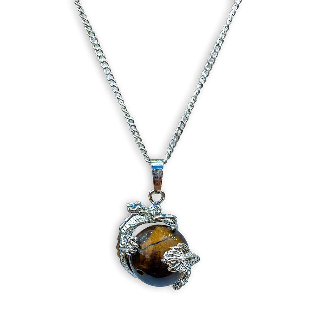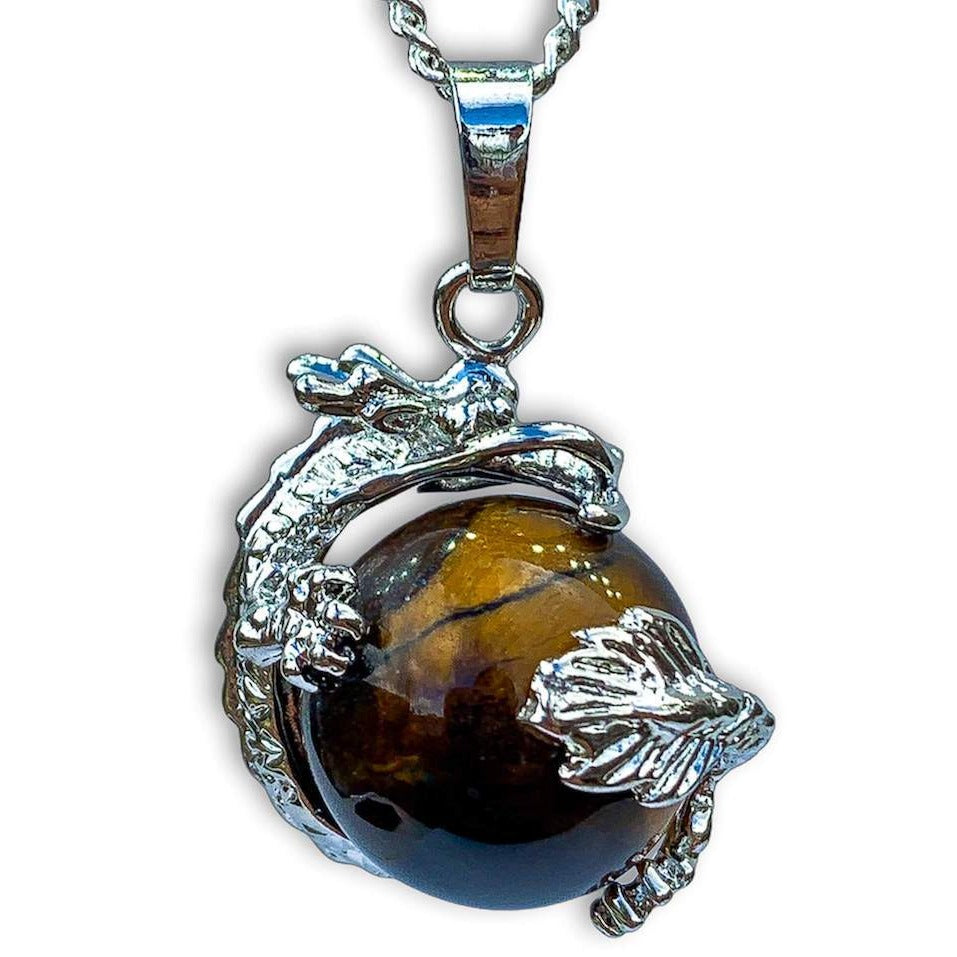 Collar con colgante de dragón con esfera de ojo de tigre amarillo