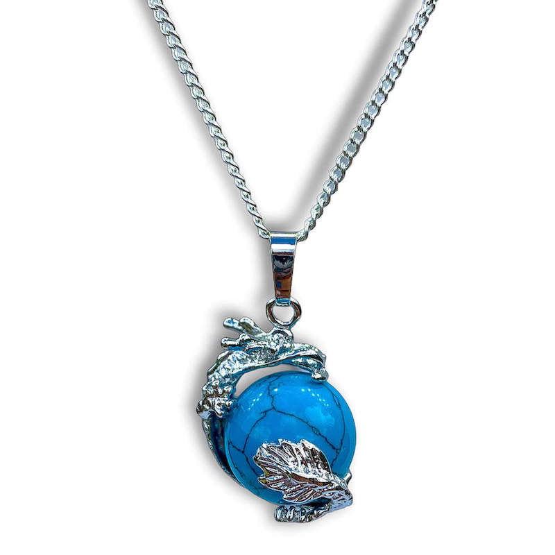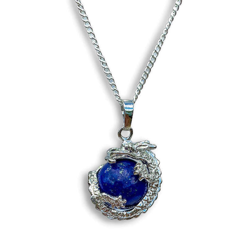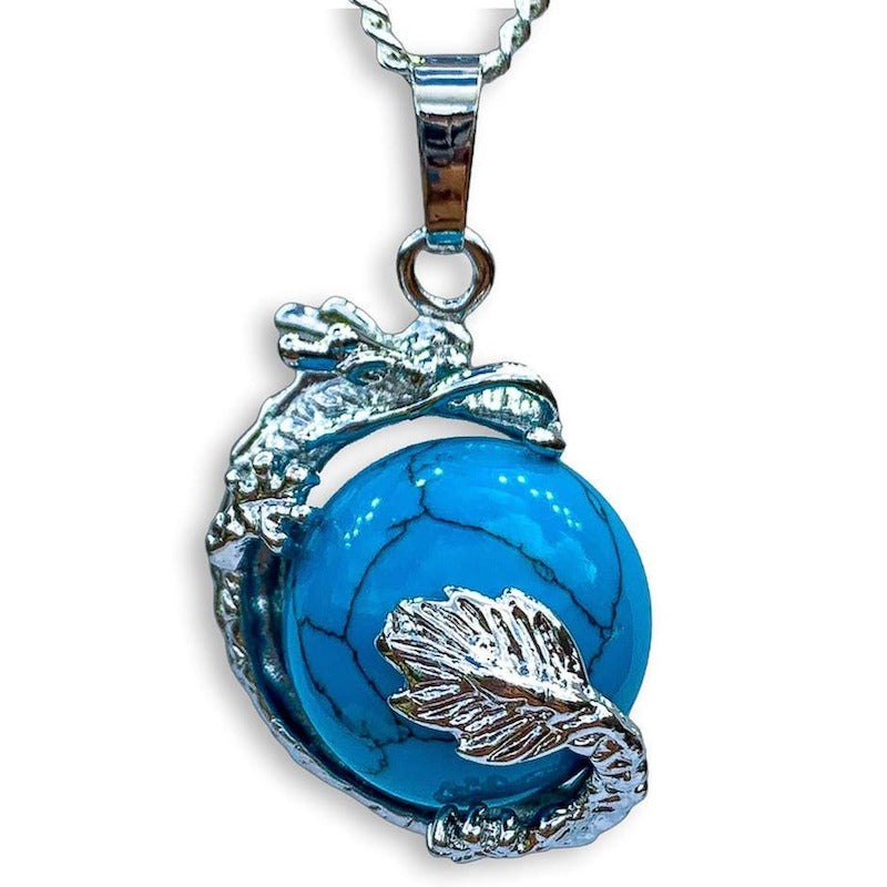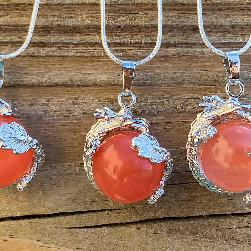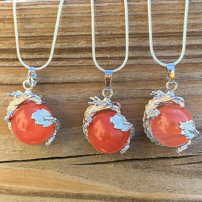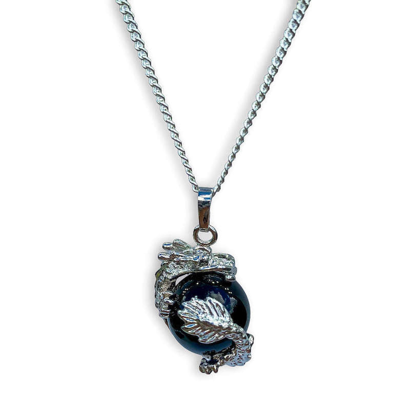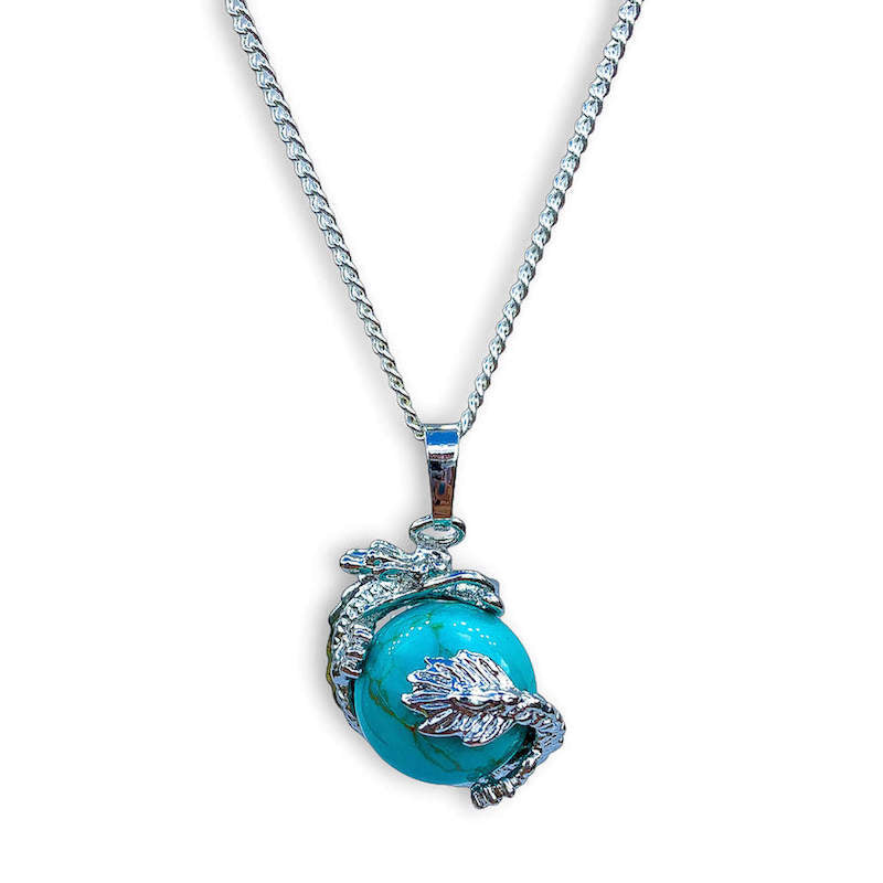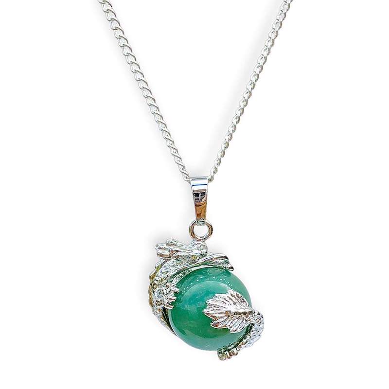 Collar con colgante de dragón con esfera de ojo de tigre amarillo