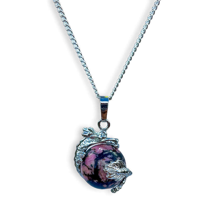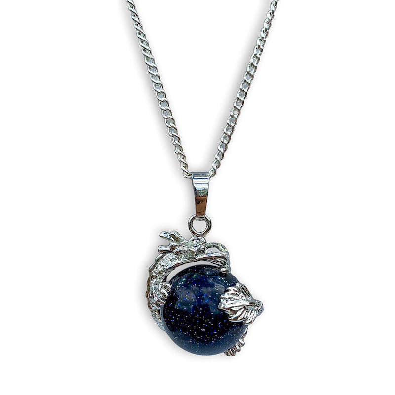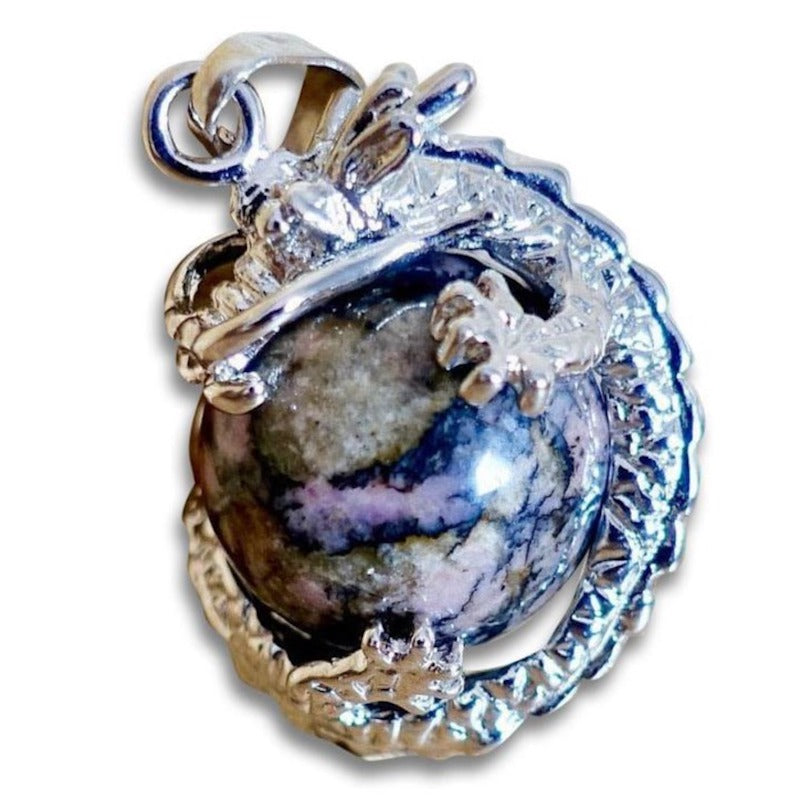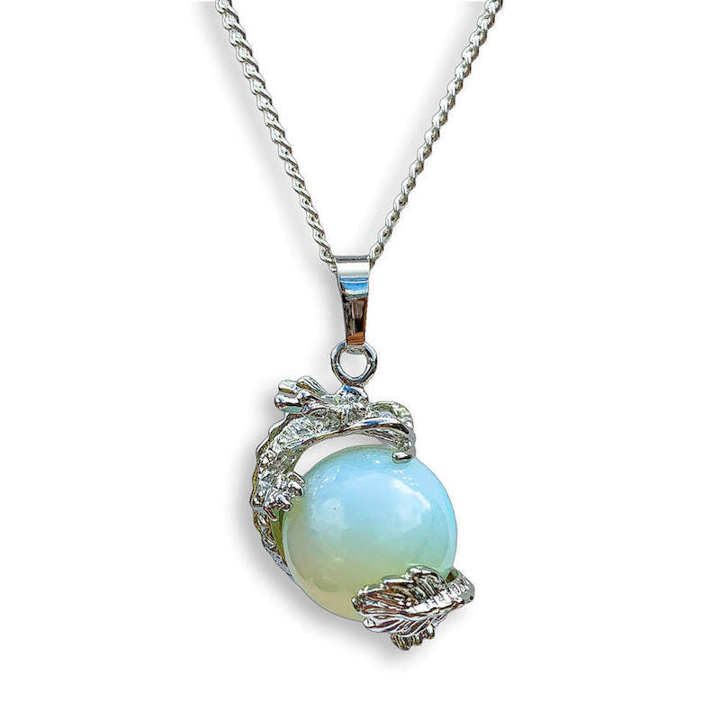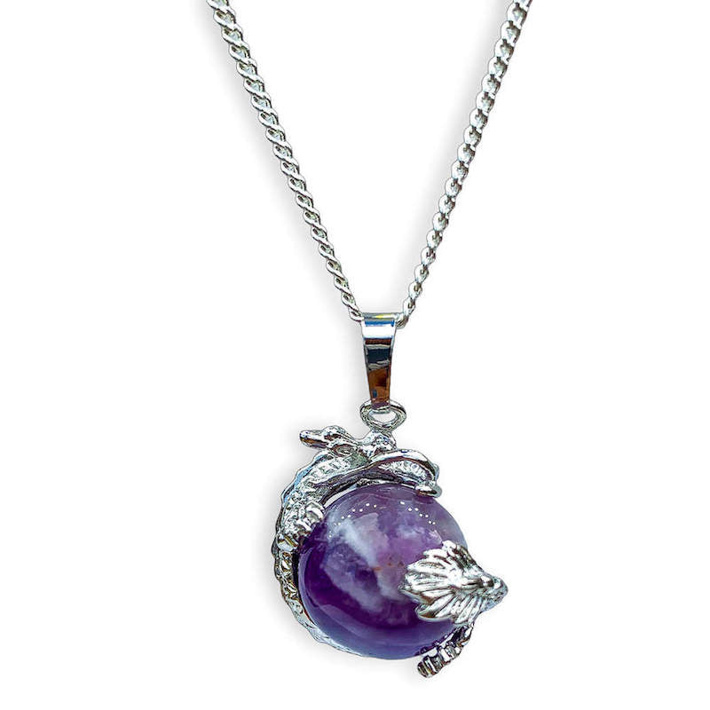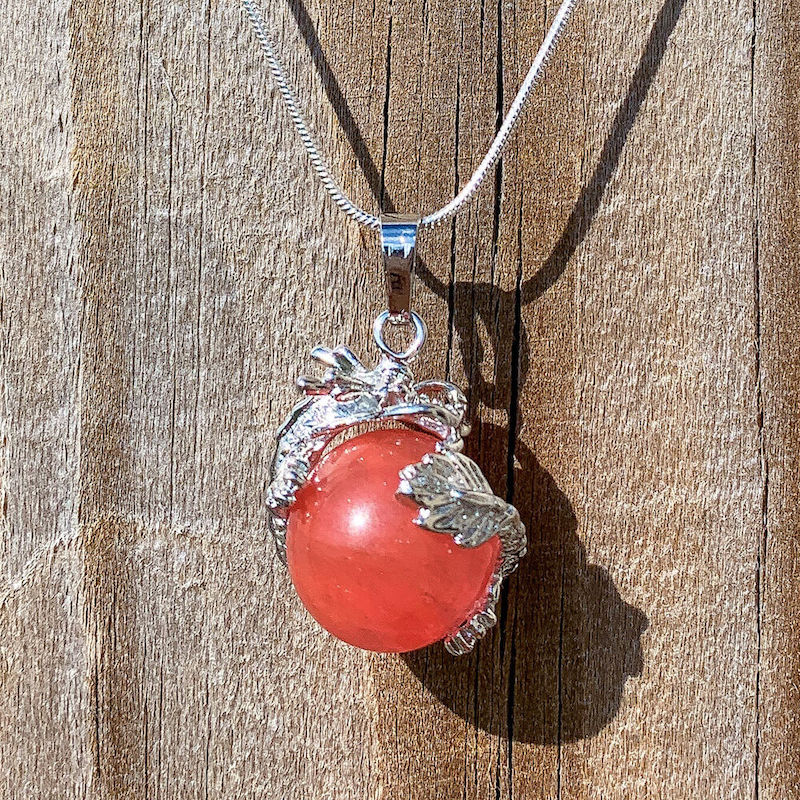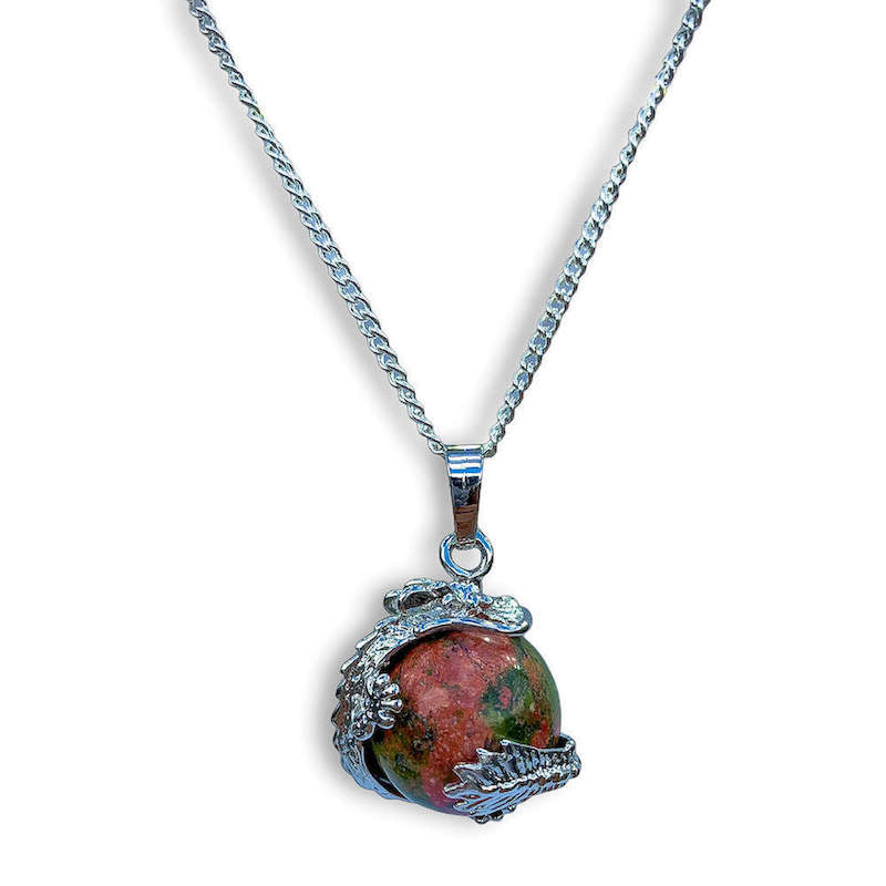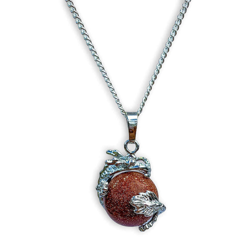 Collar con colgante de dragón con esfera de ojo de tigre amarillo