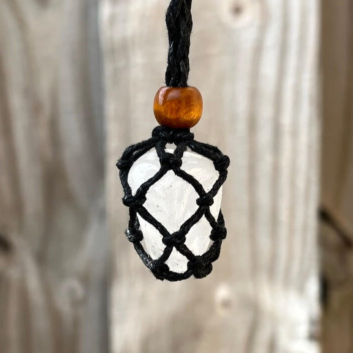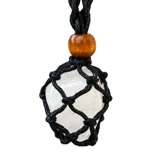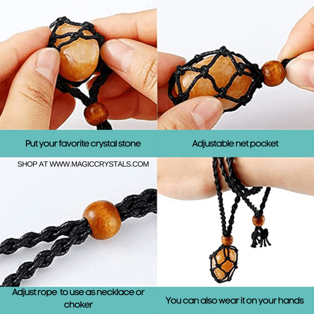 Cristales Mágicos. Bolsa de piedra de cristal de macramé vacía, sostenga su piedra favorita en un collar ajustable.