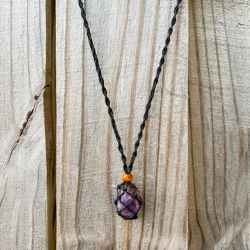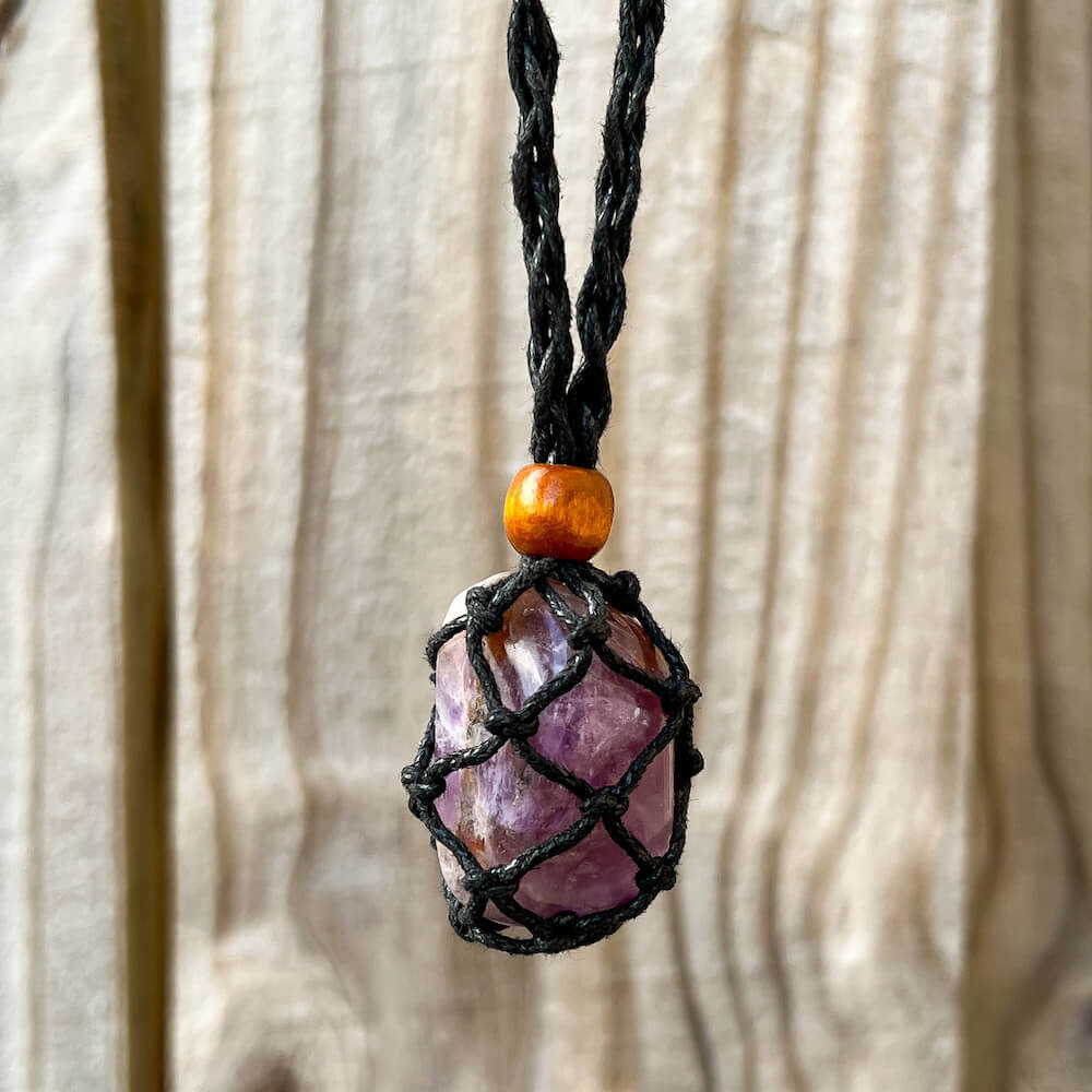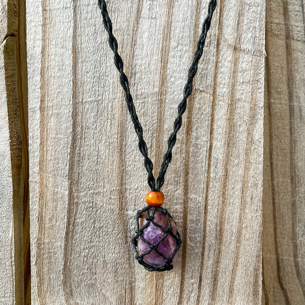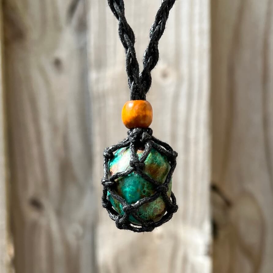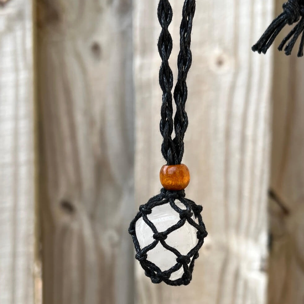 Cada collar tiene una cuenta deslizante de madera que no solo tiene un propósito decorativo, sino que también se usa para cerrar la bolsa, ¡para mantener su piedra segura en el interior!