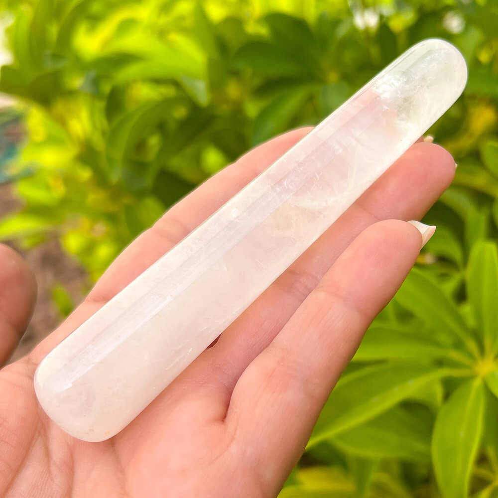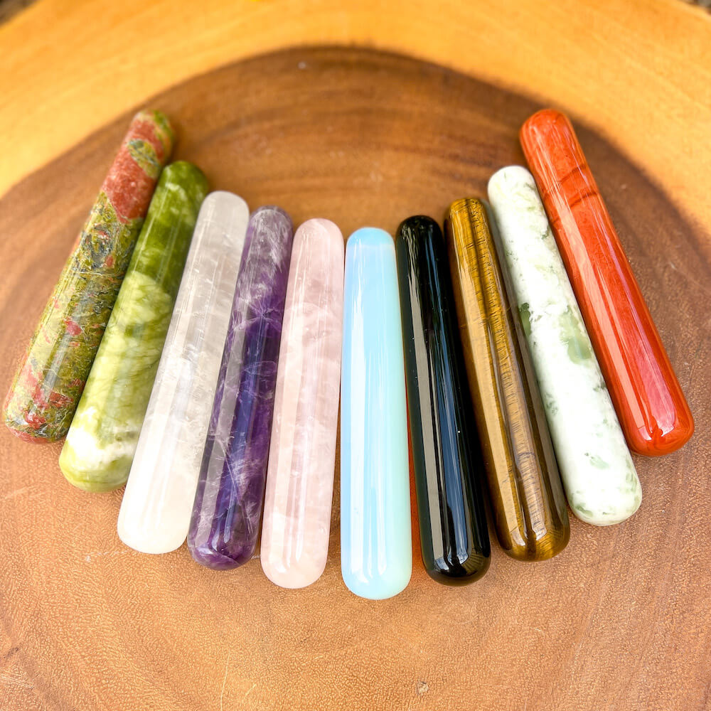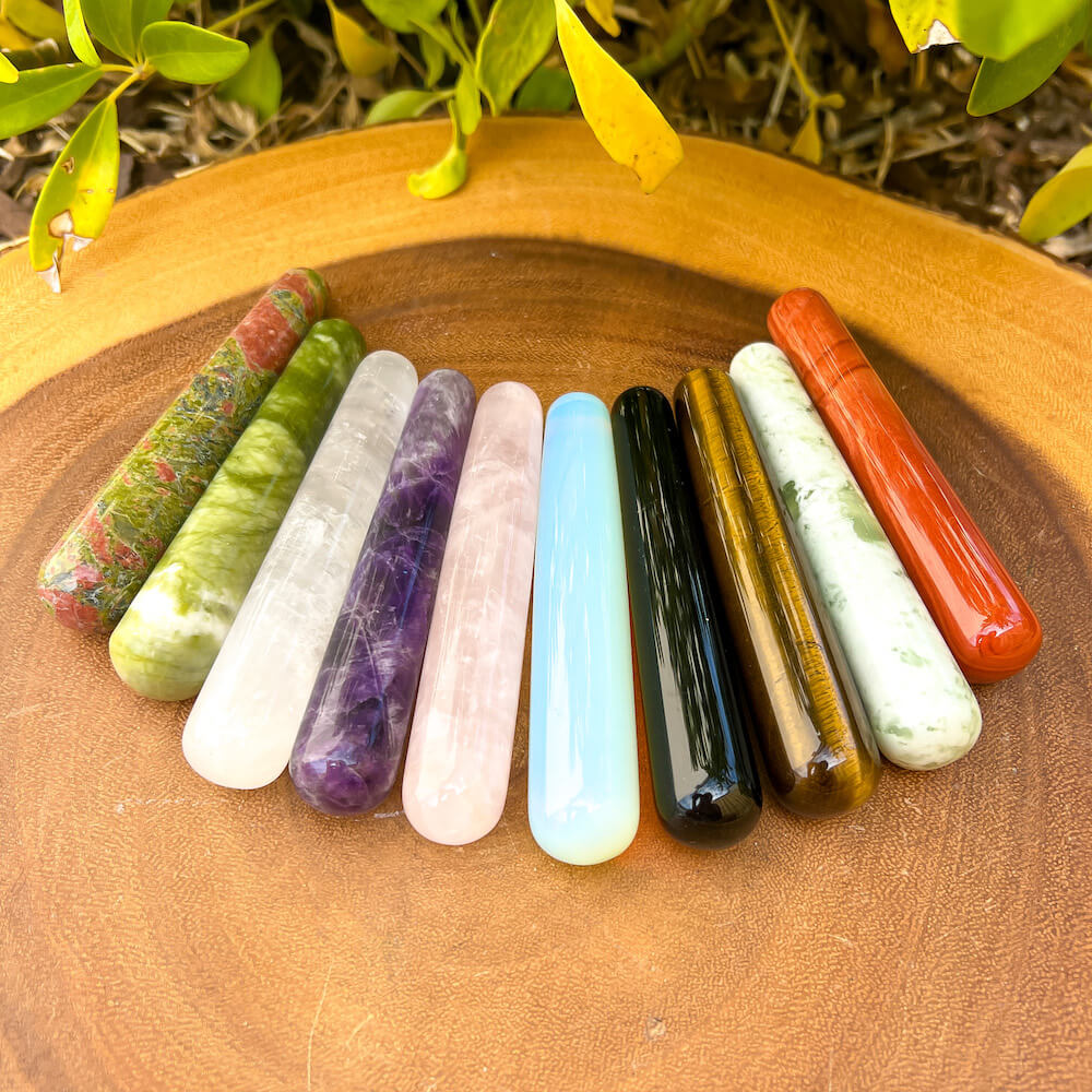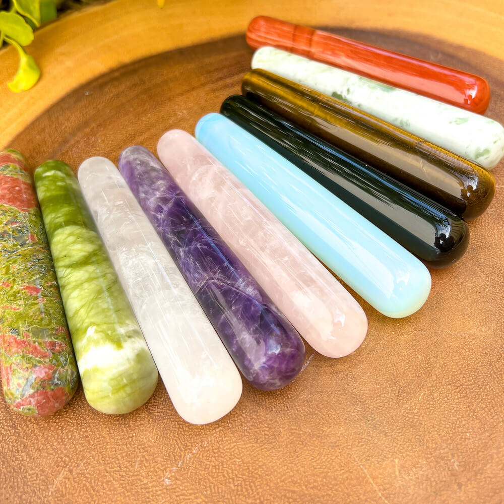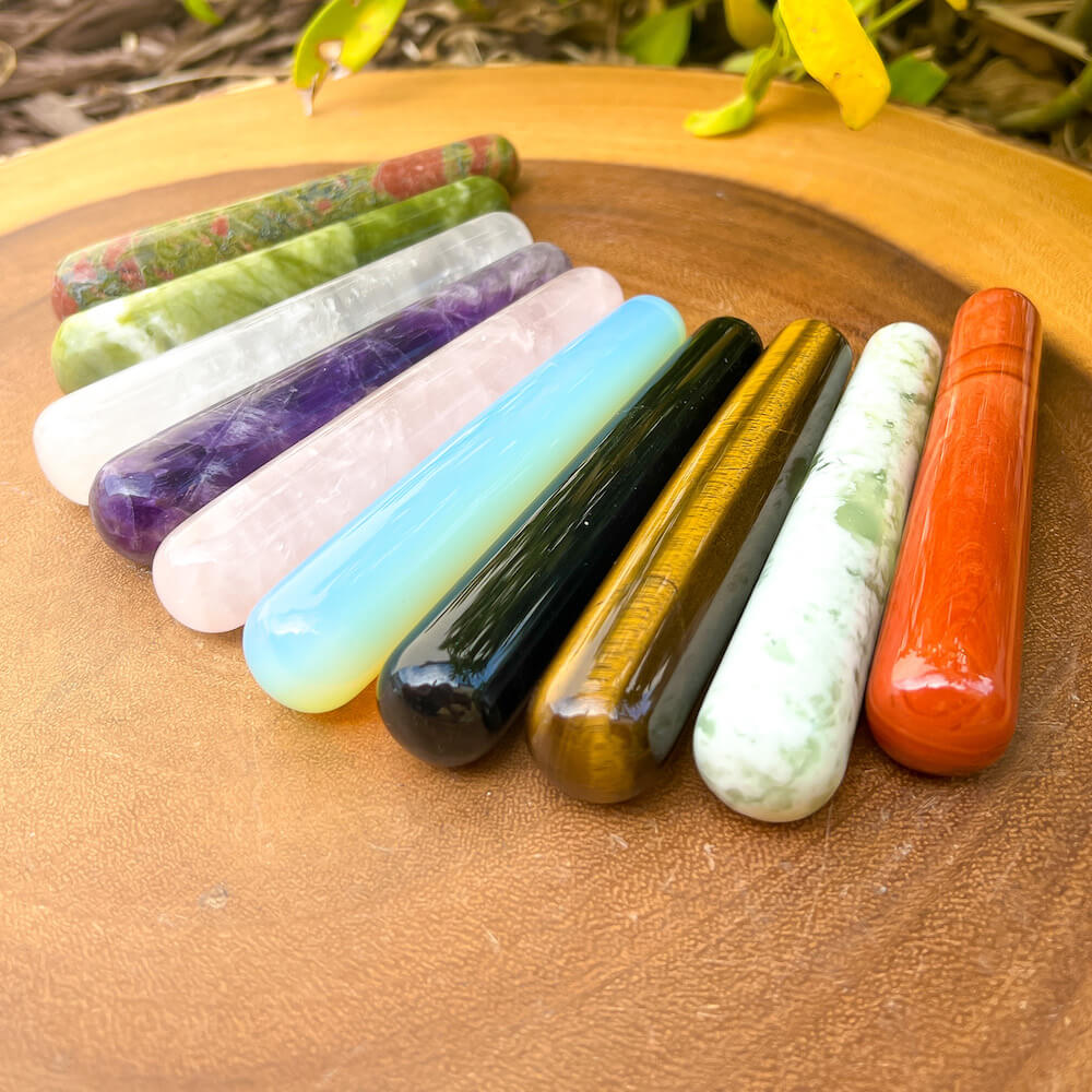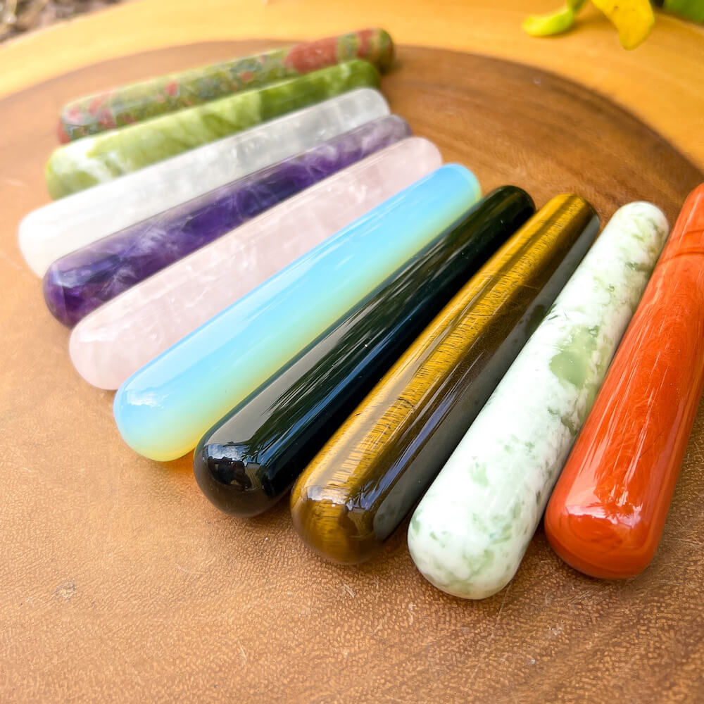 Nuestras varitas son perfectamente lisas y siempre se inspeccionan en busca de astillas y grietas antes del envío. No se utilizan productos químicos durante el proceso de fabricación. Sin rellenos ni tintes: el único material de la varita y el huevo es el cristal que ordenó y la cera de abeja natural. Solo almacenamos gemas de calidad.