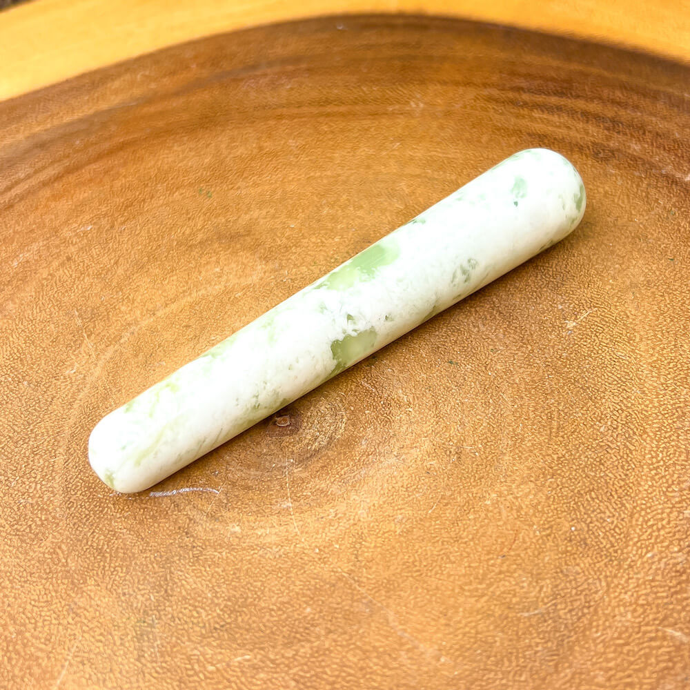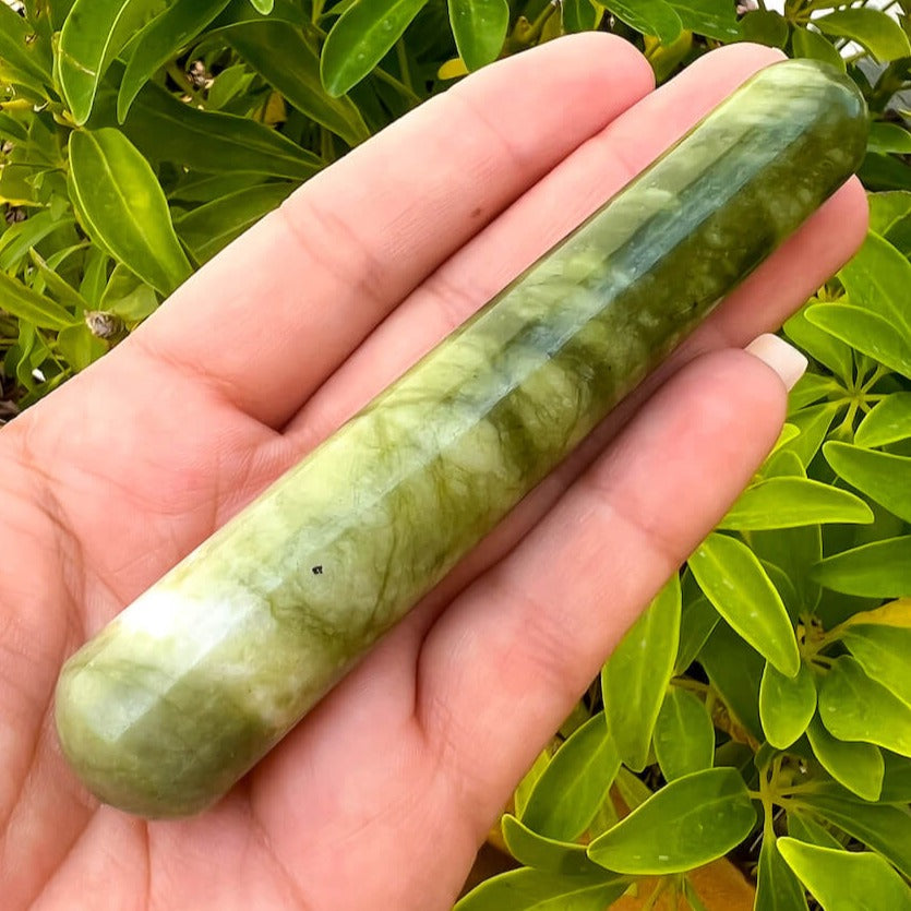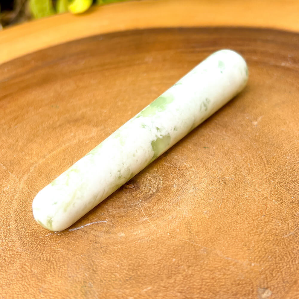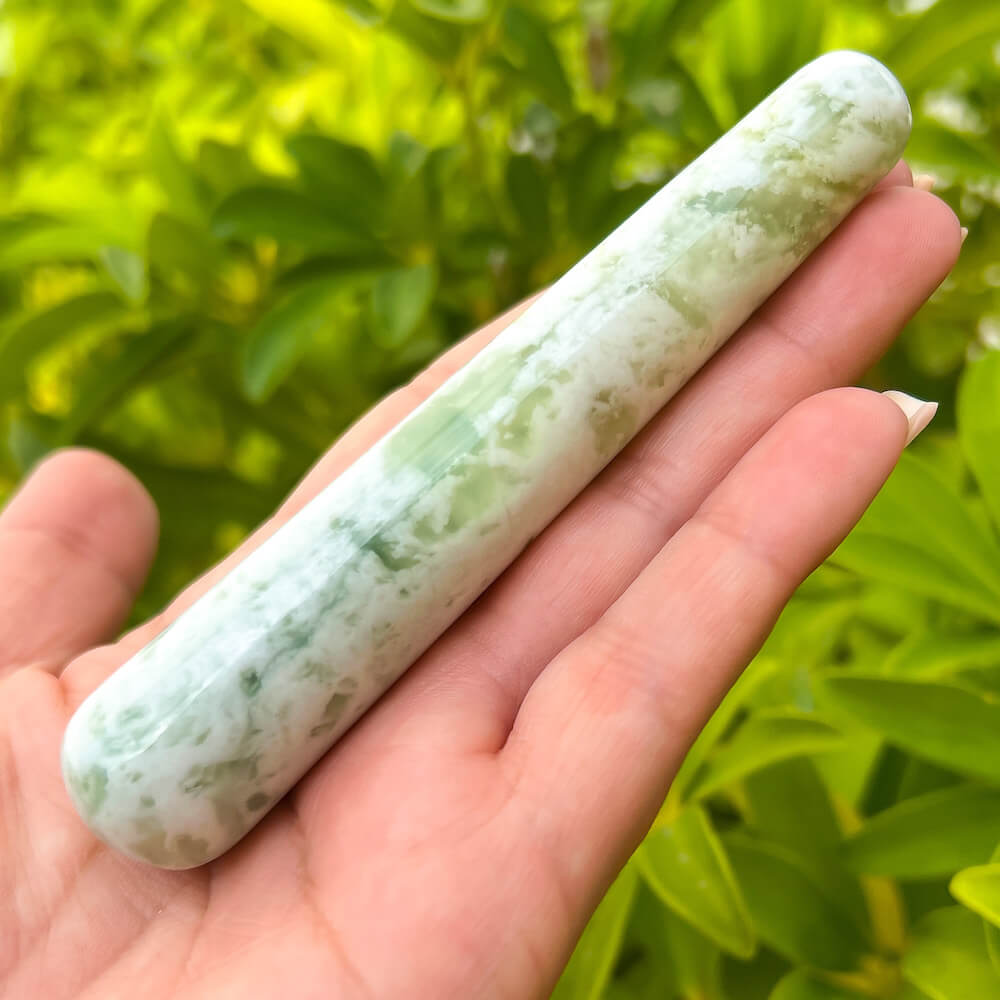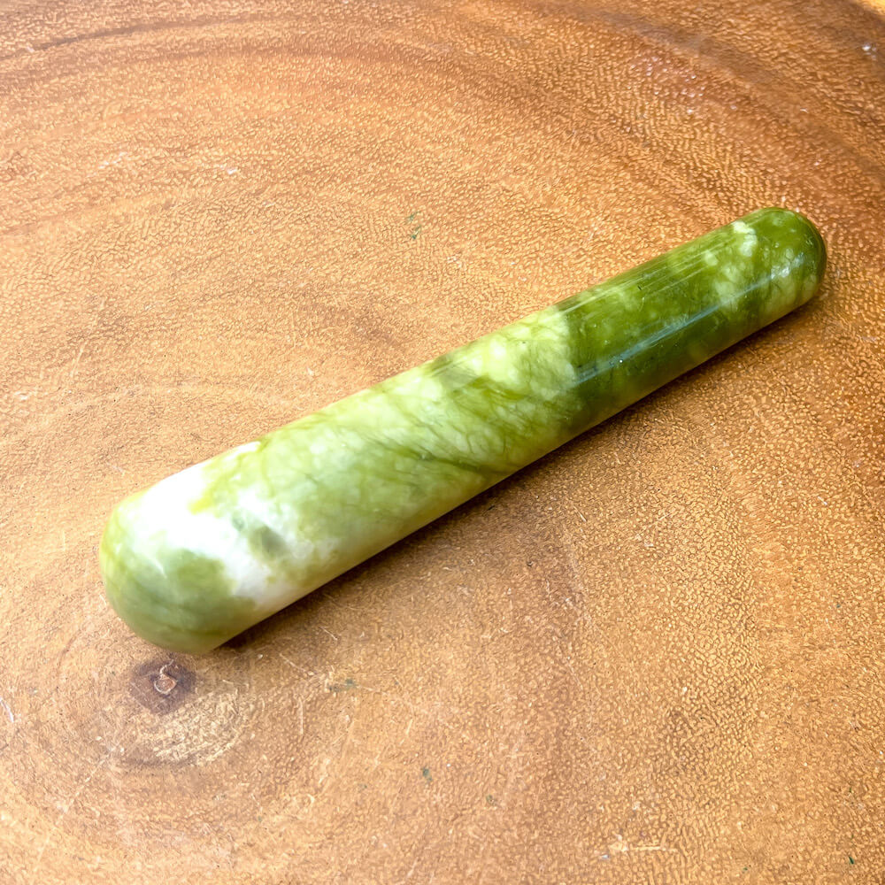Tenga en cuenta que cada varita es única en apariencia como cada uno de nosotros. Debido a que todas nuestras varitas están cortadas con jade 100% natural, siempre hay variaciones de color. Es posible que la varita de masaje real que recibió no se vea exactamente igual a la que se muestra en las imágenes de arriba, pero el color será similar.