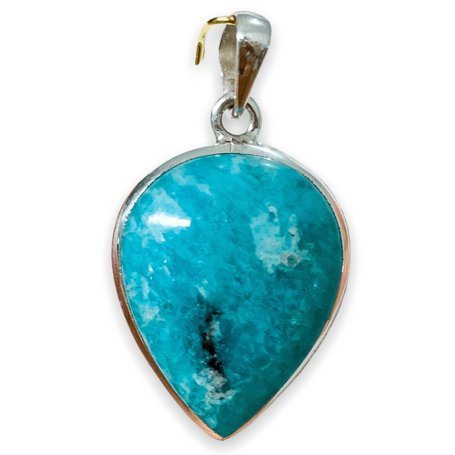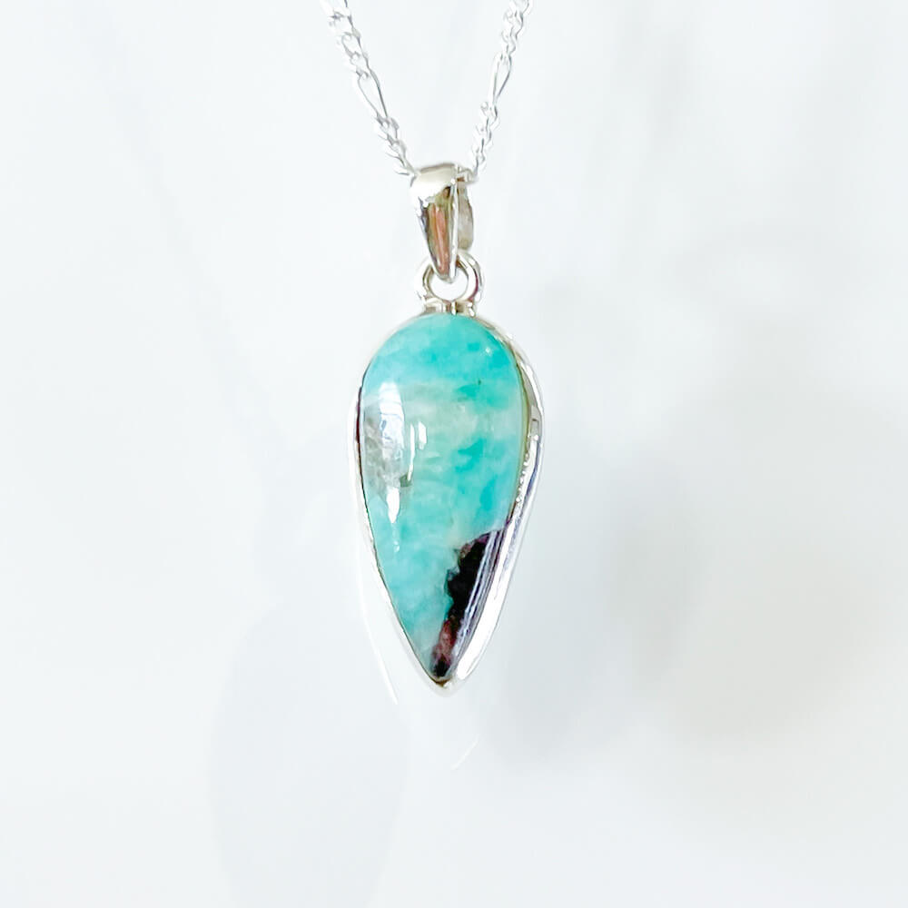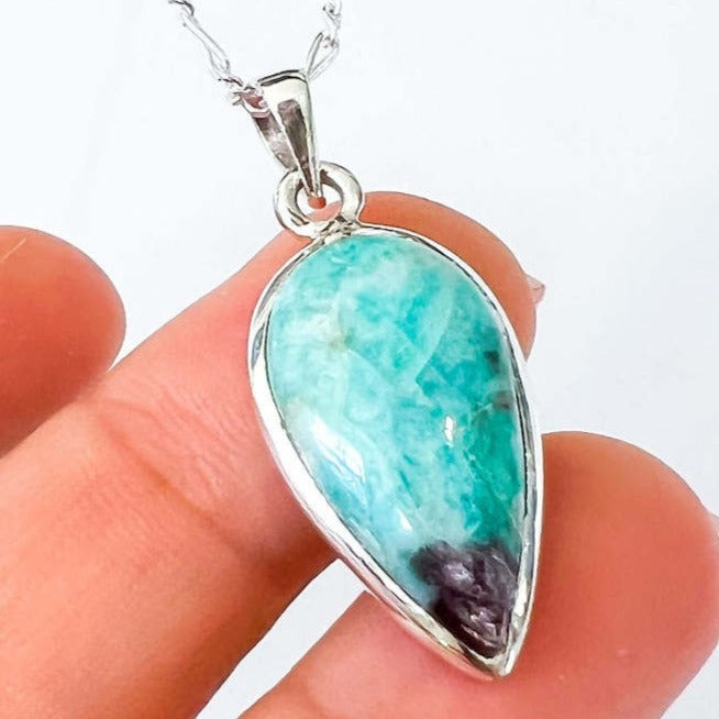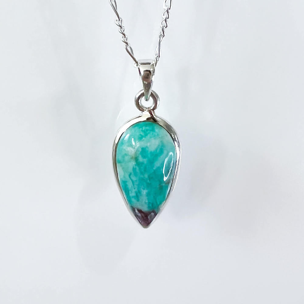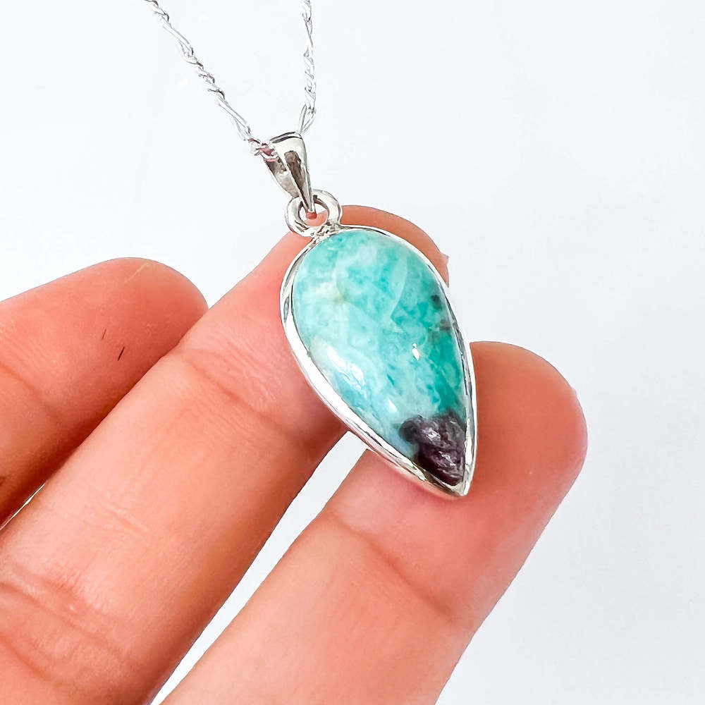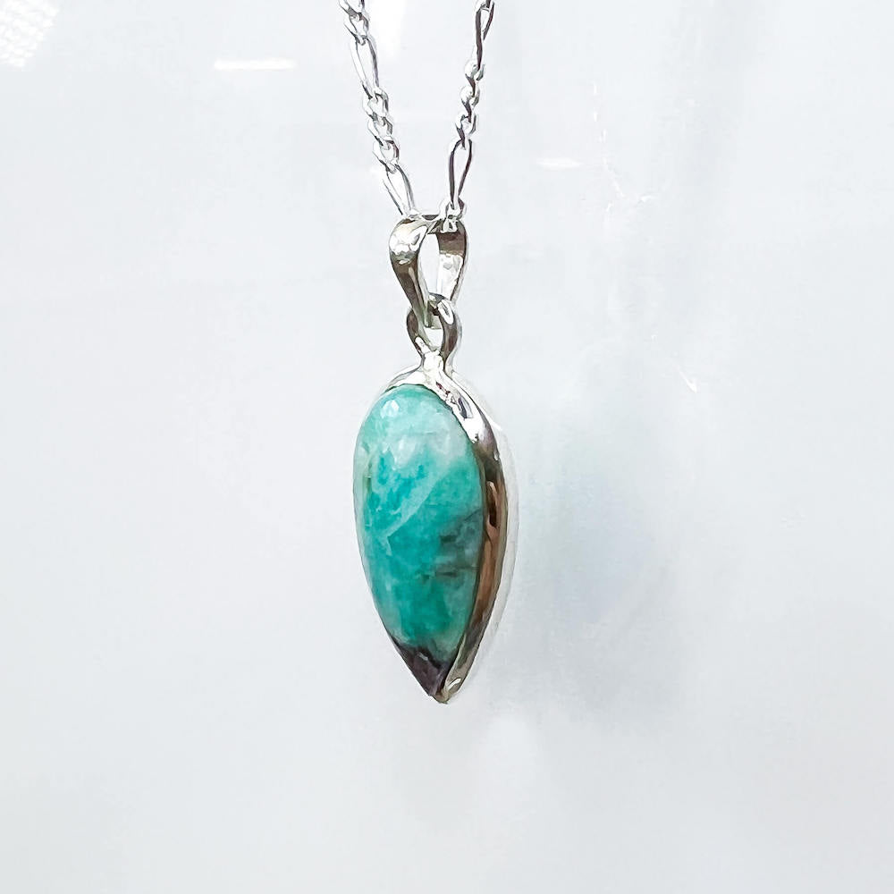 Collar con colgante de plata de ley con gota de piedra de amazonita azul genuina - E
