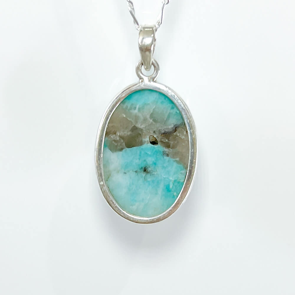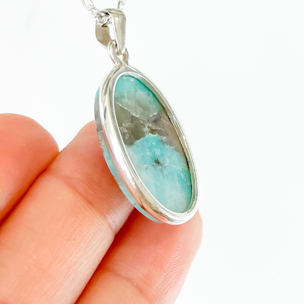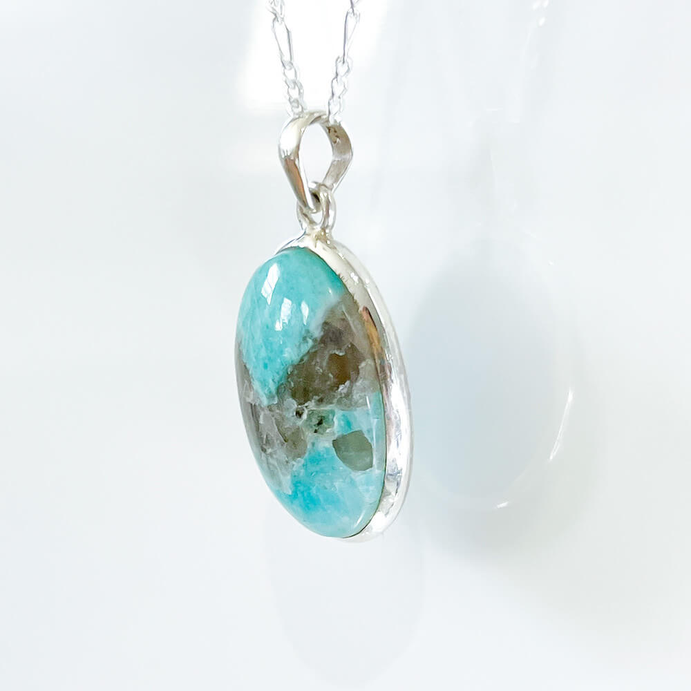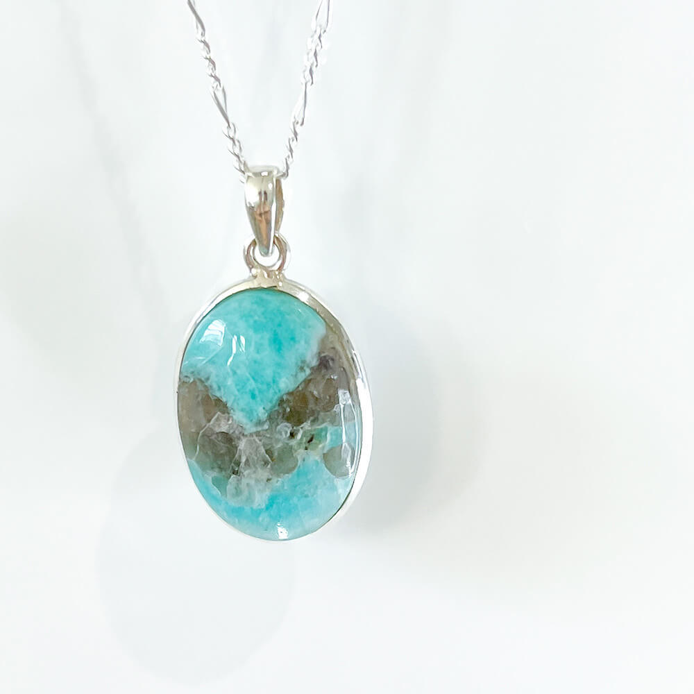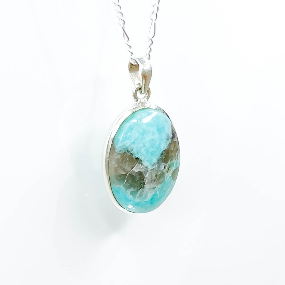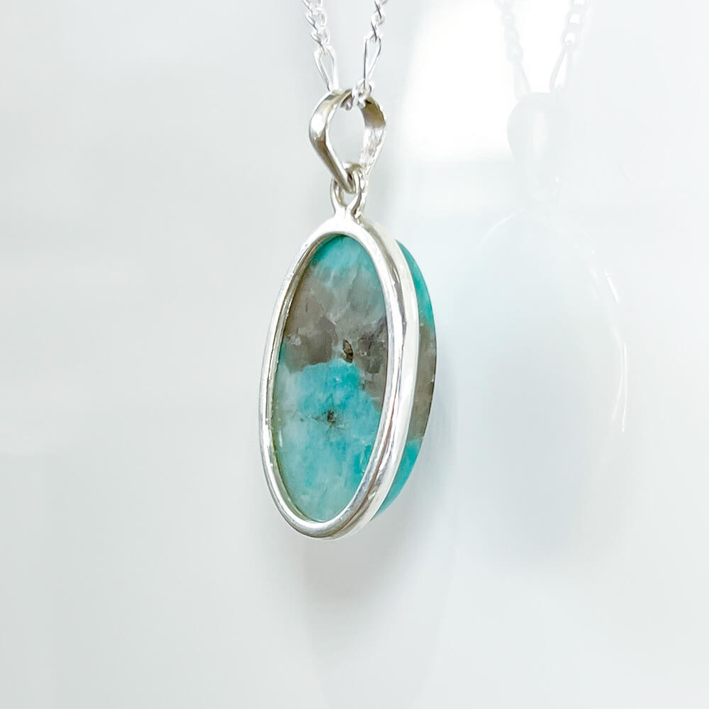 - Auténtica piedra amazonita pulida engarzada en plata de ley
