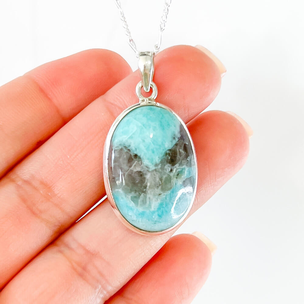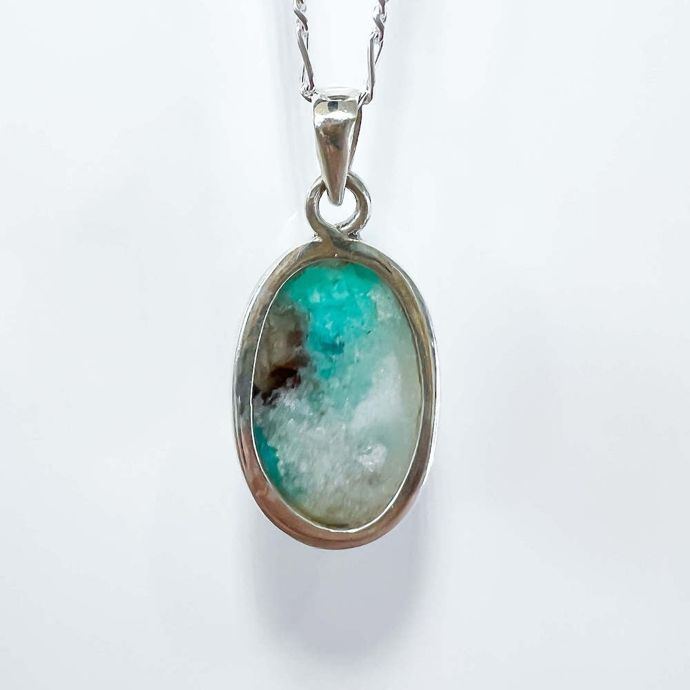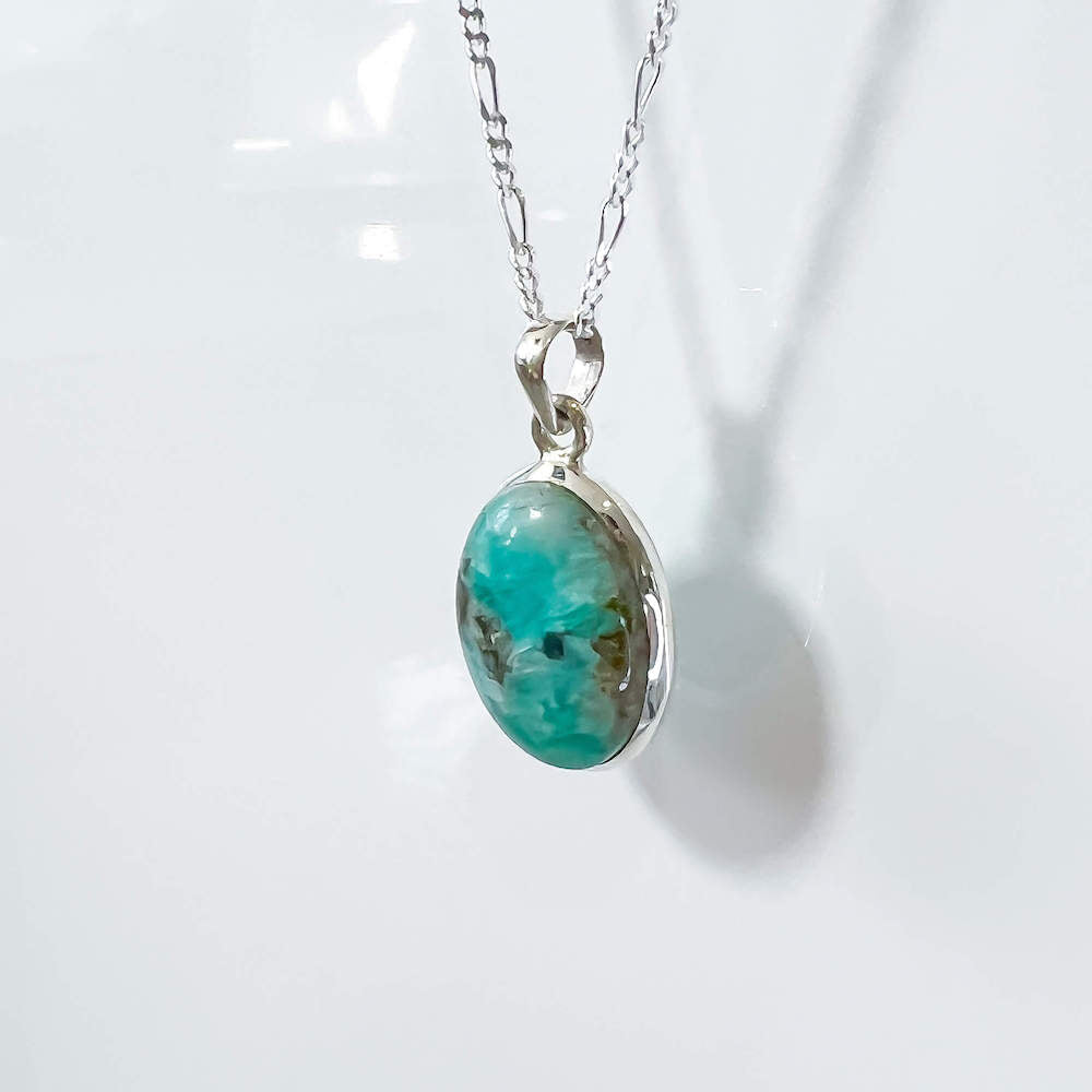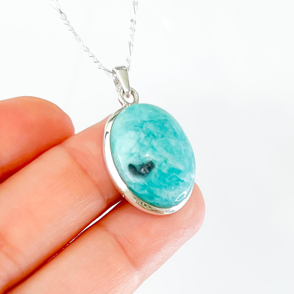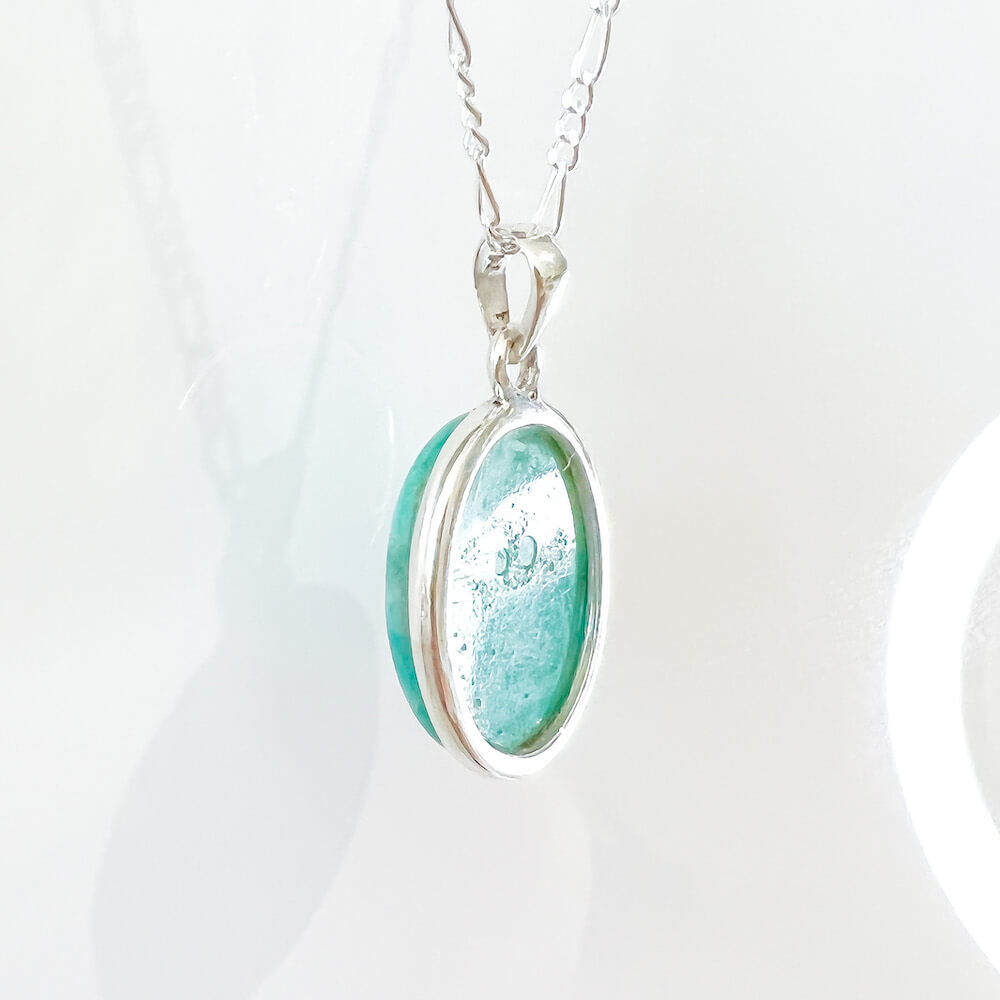 - Auténtica piedra amazonita pulida engarzada en plata de ley
