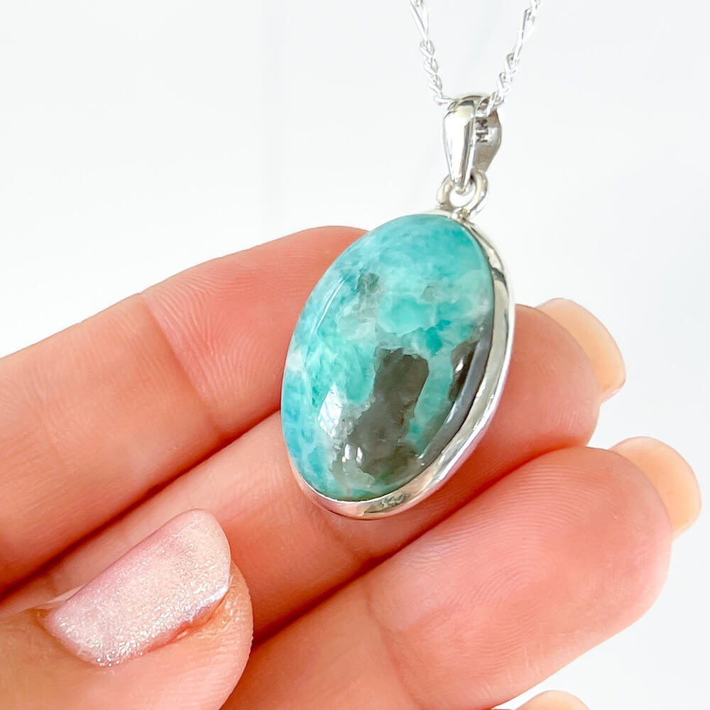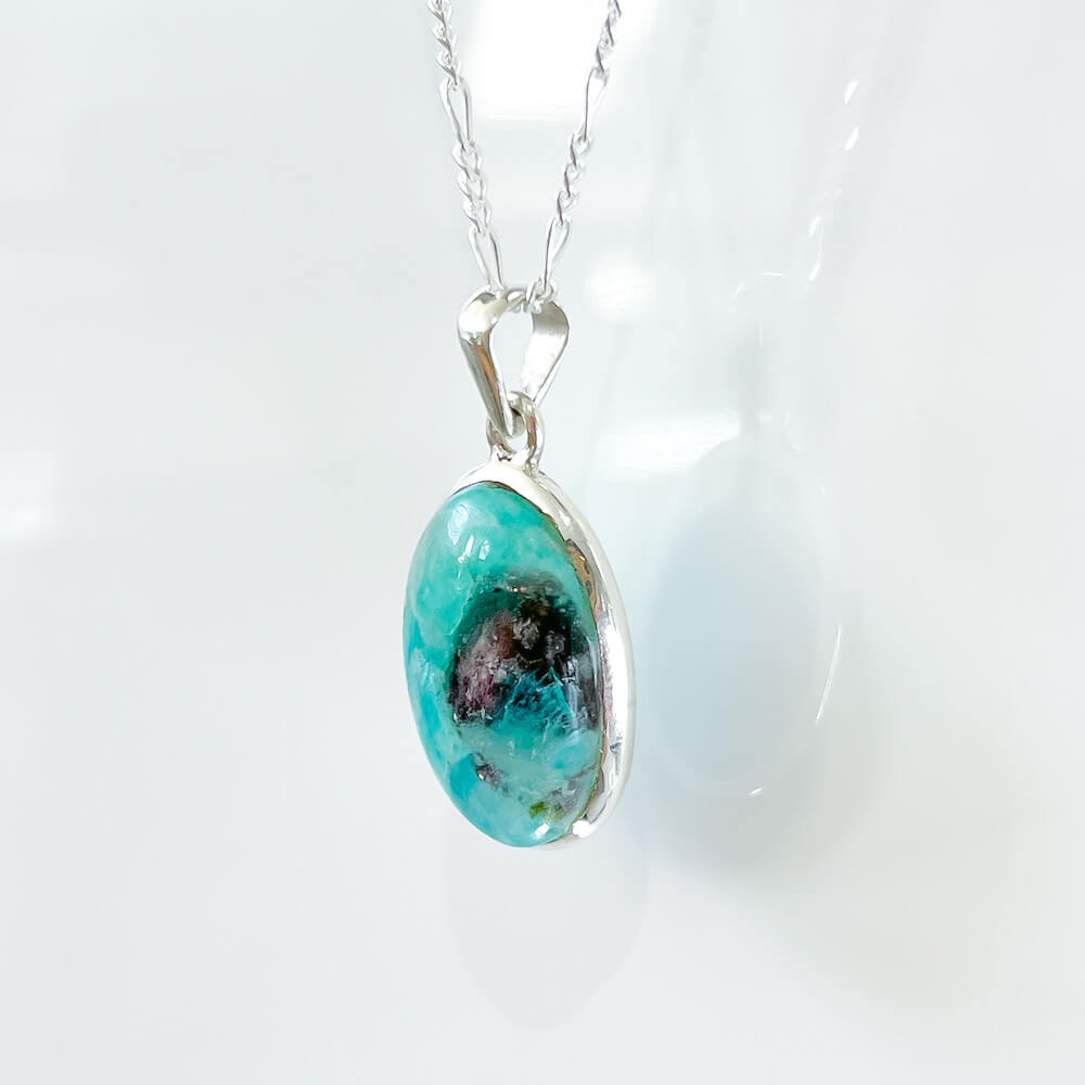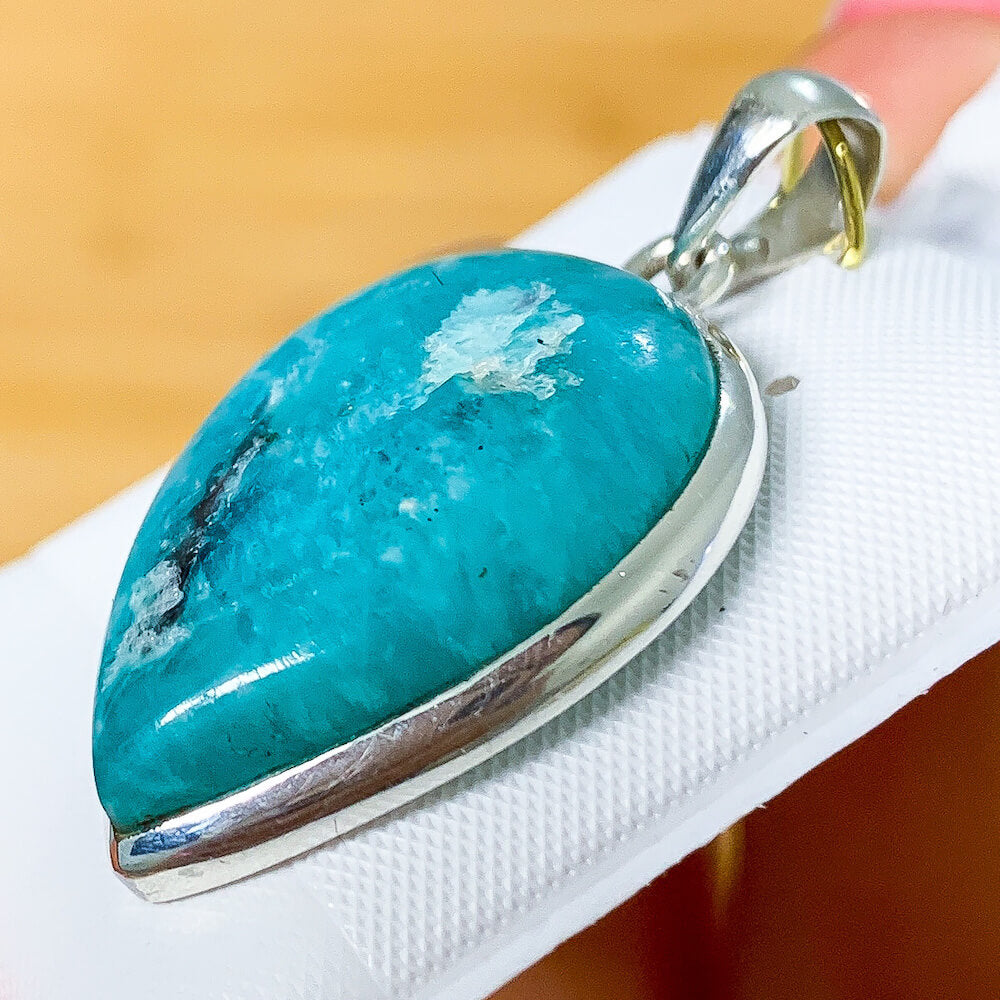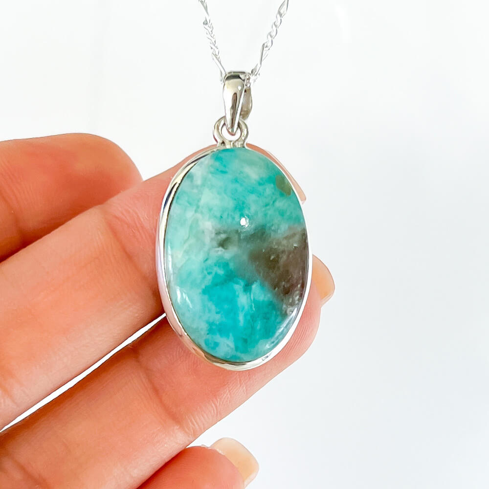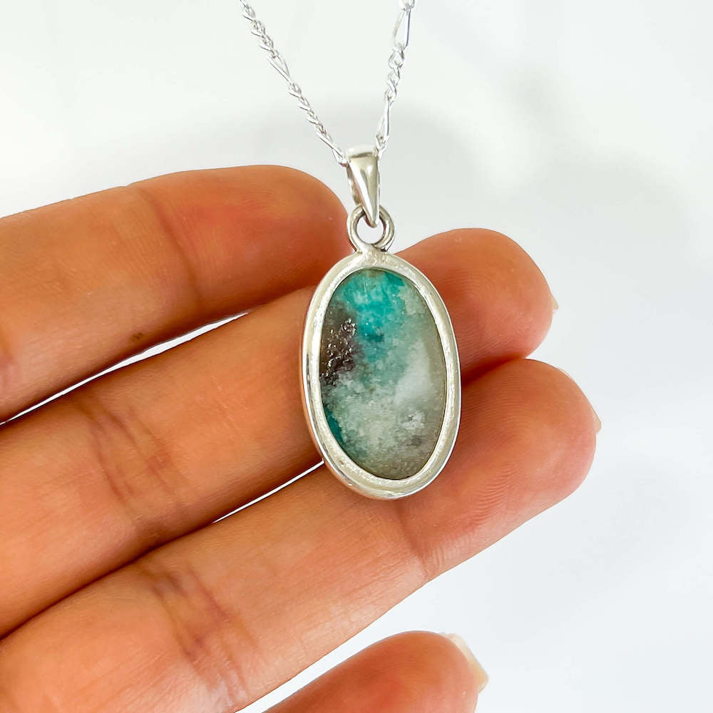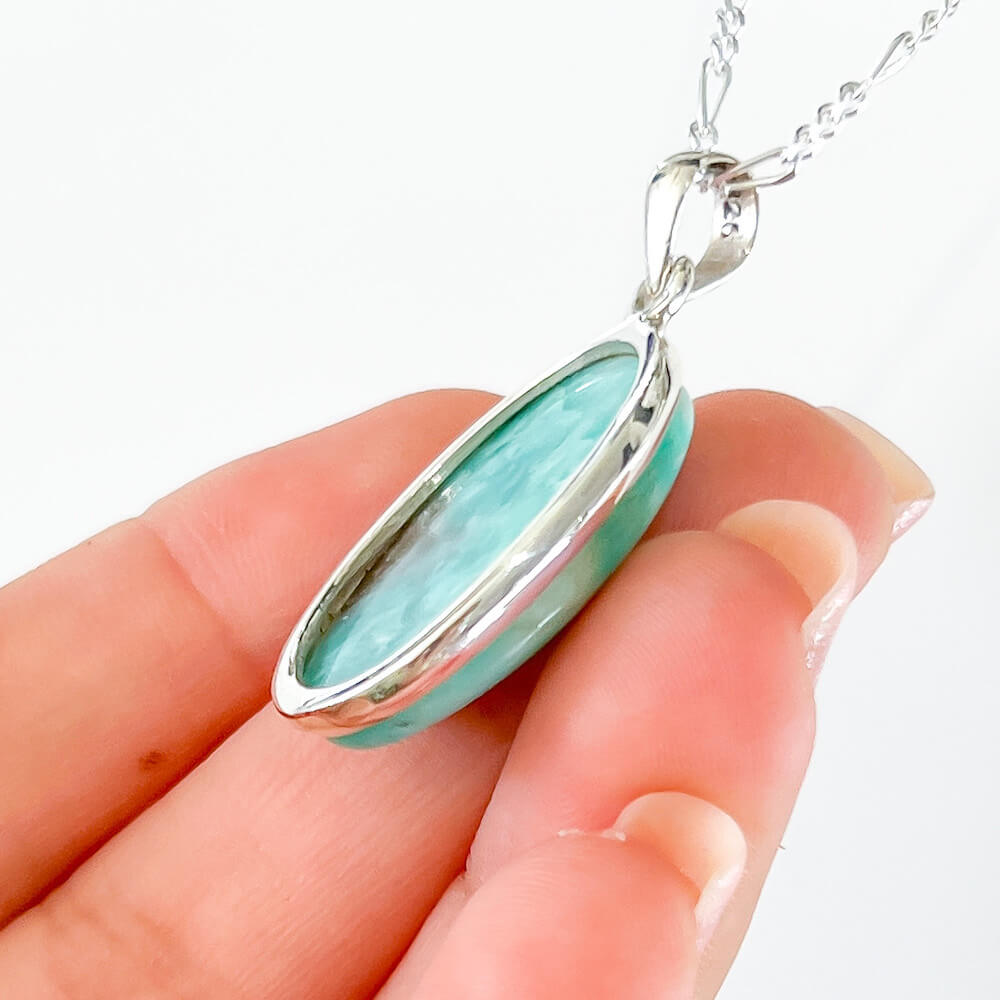 - Auténtica piedra amazonita pulida engarzada en plata de ley