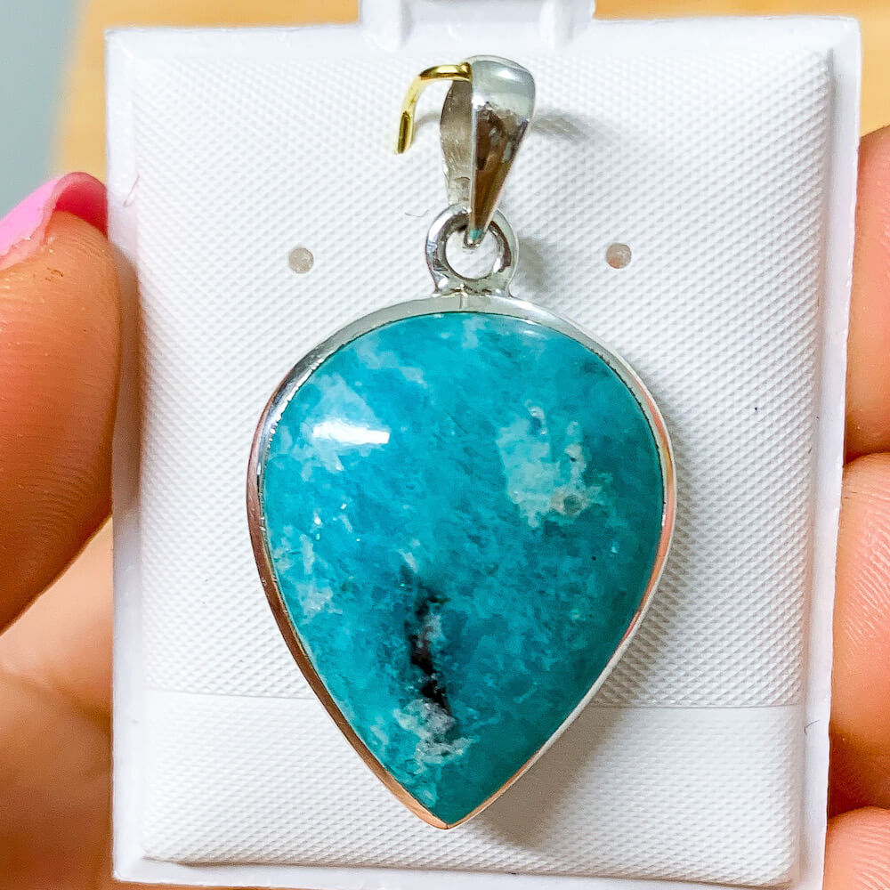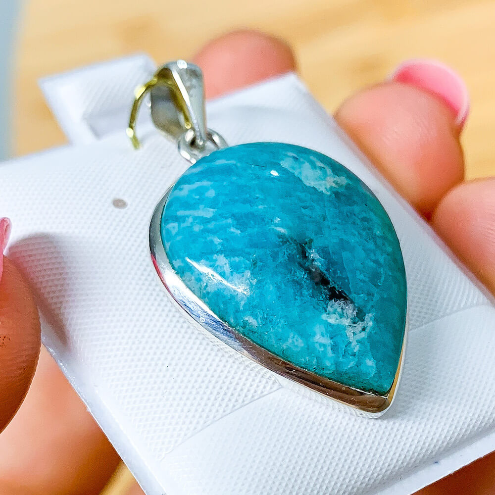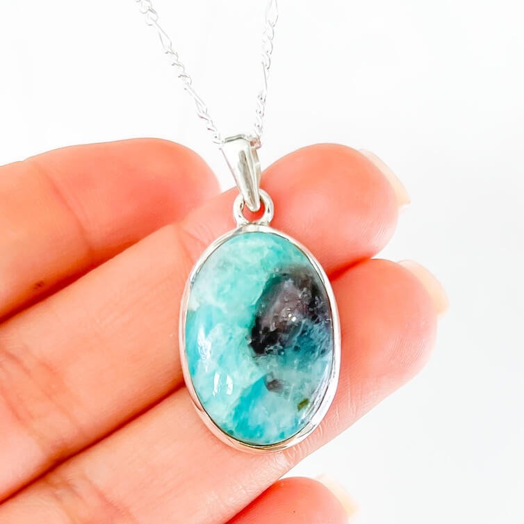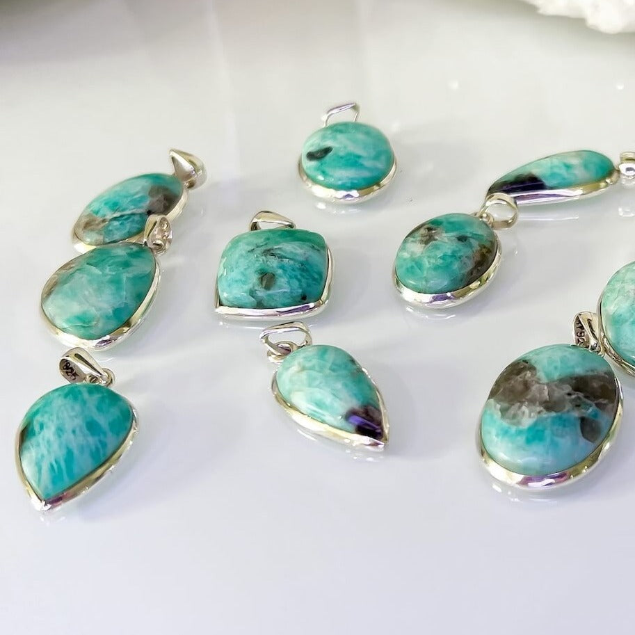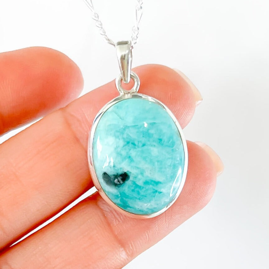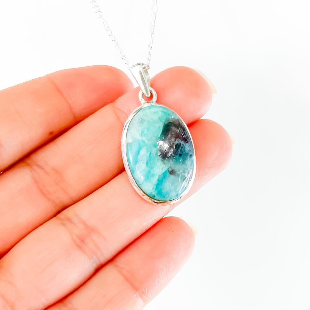 - Auténtica piedra amazonita pulida engarzada en plata de ley