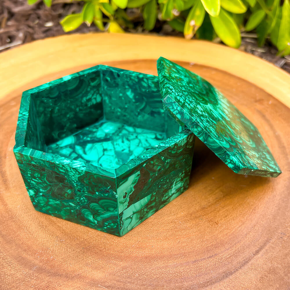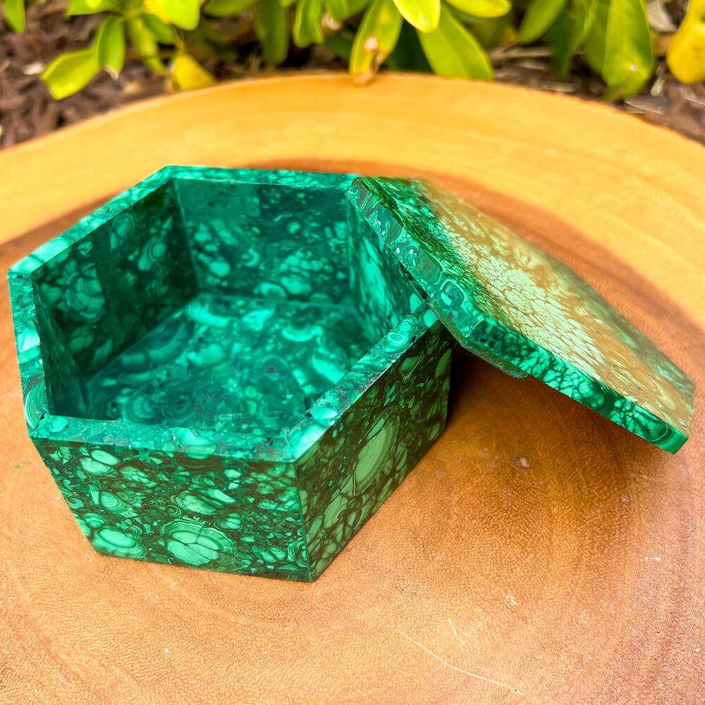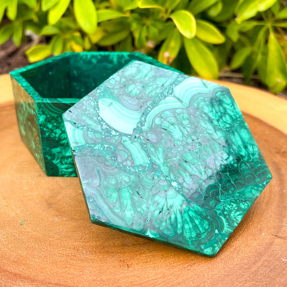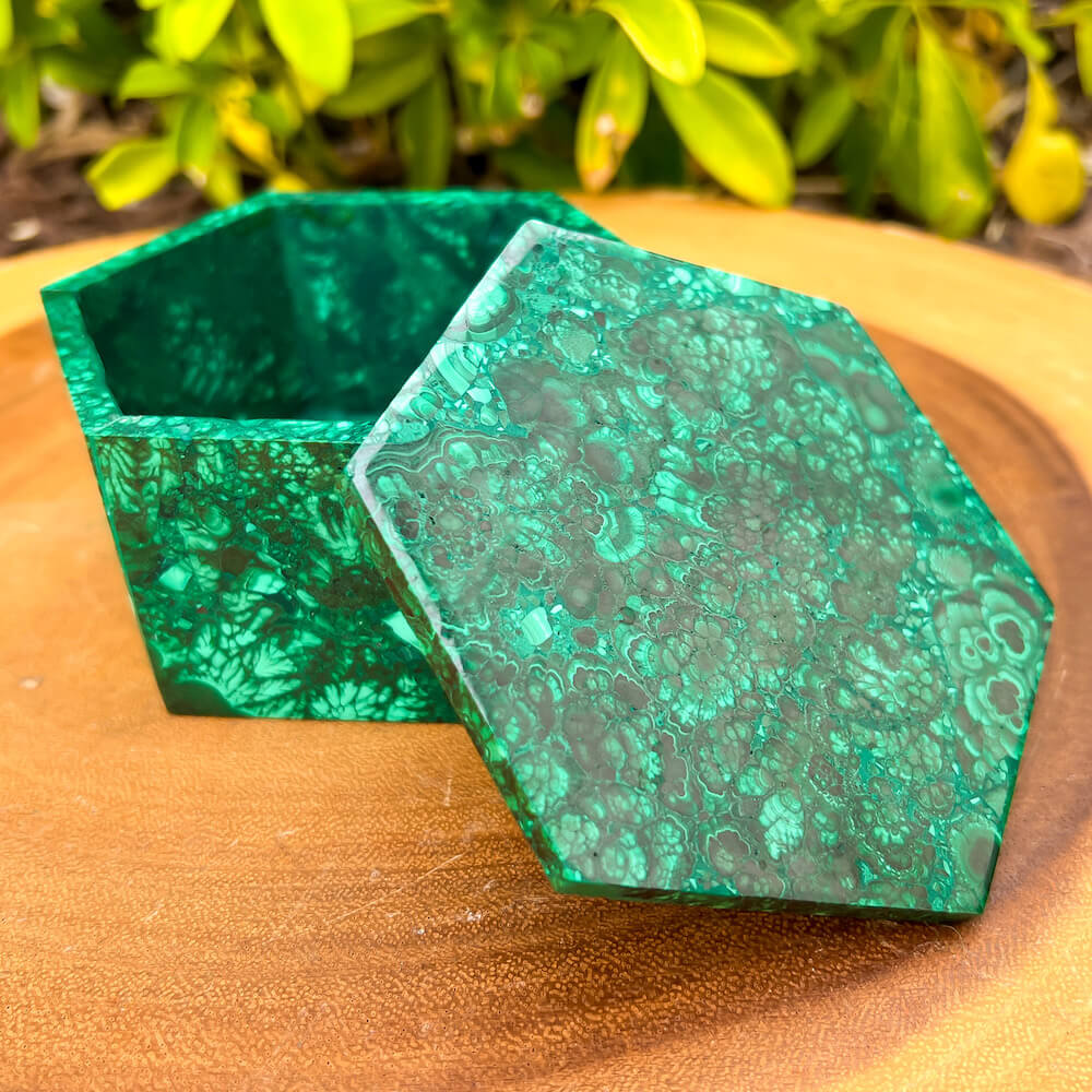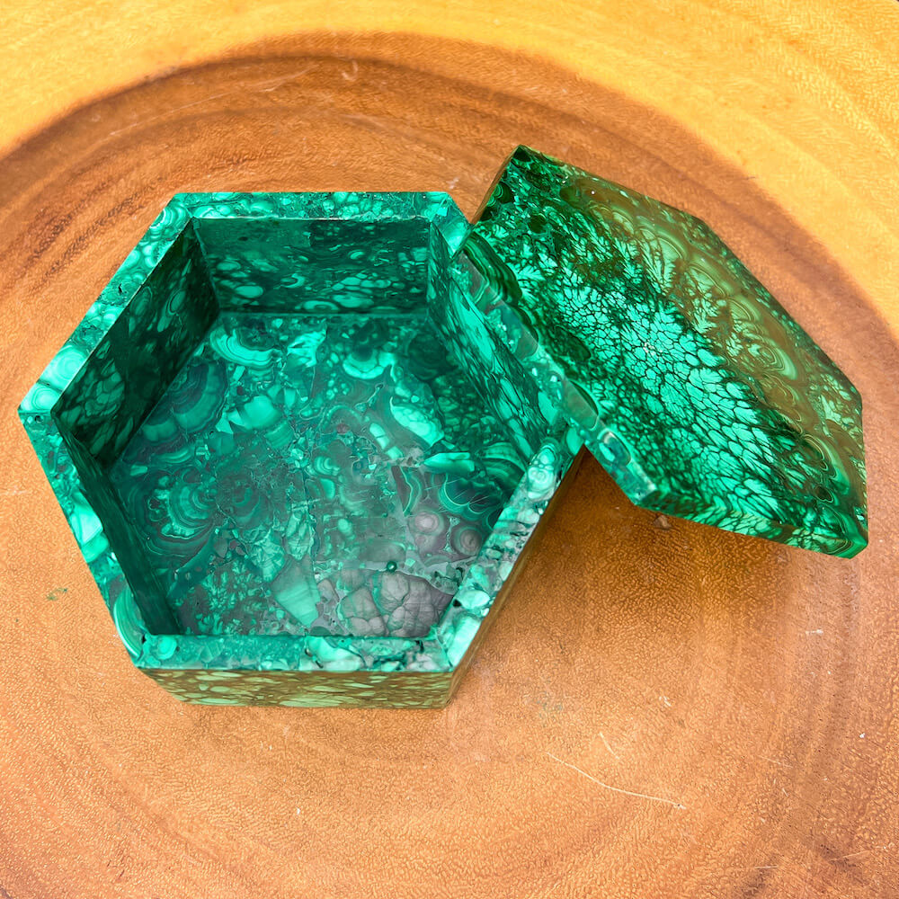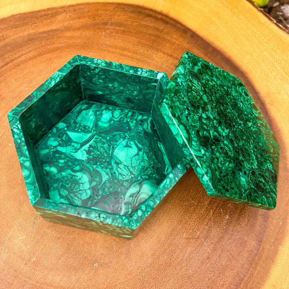 Joyero con Tapa de Malaquita Genuina - Hexágono