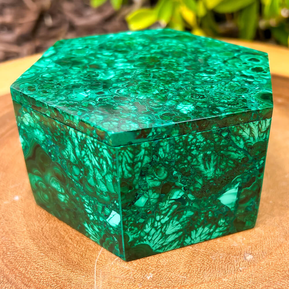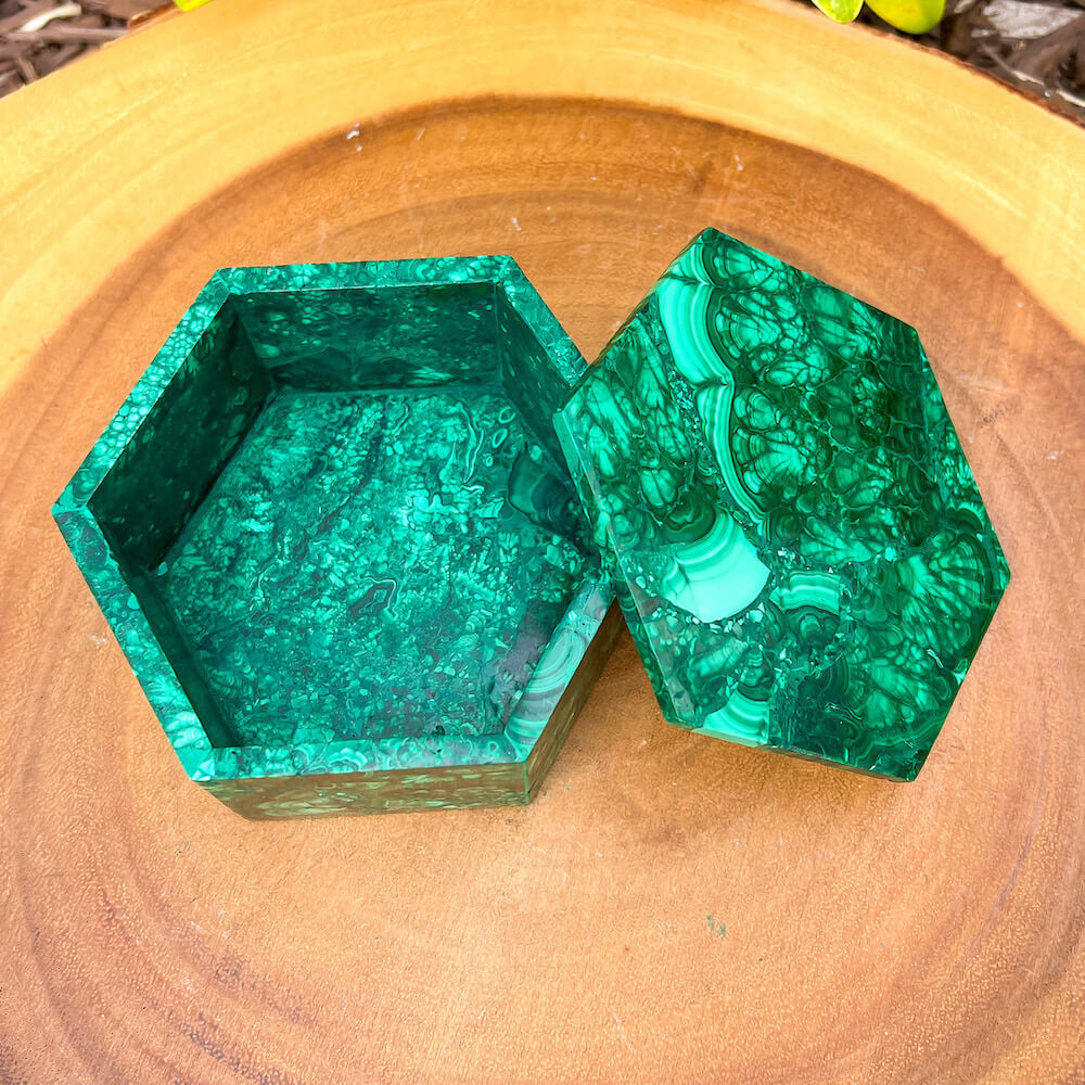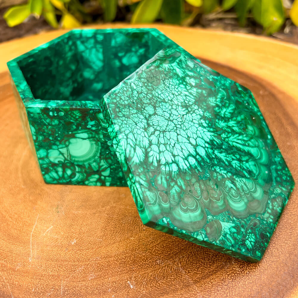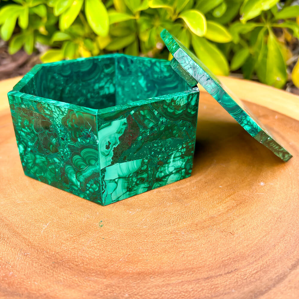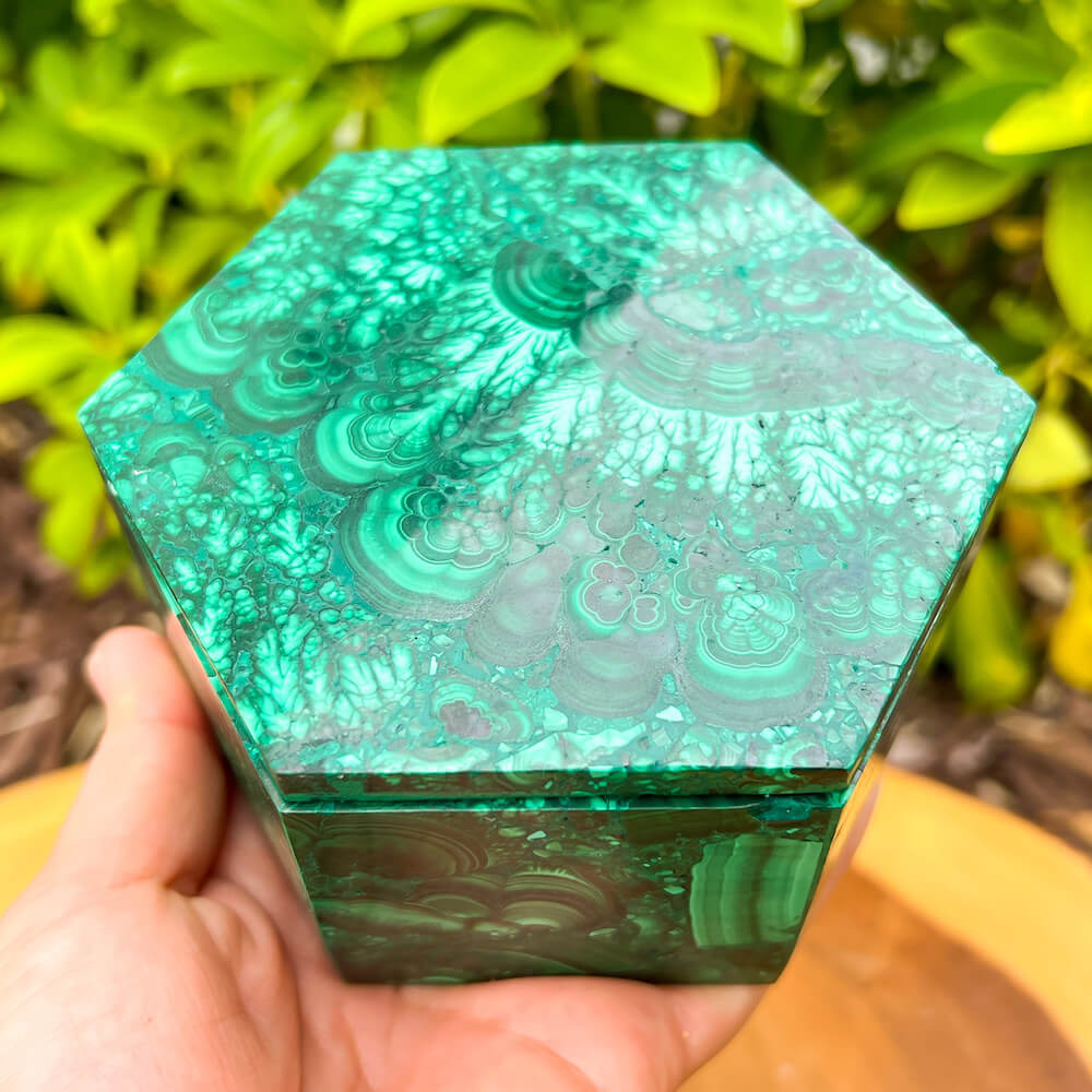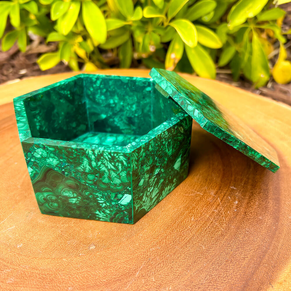 Joyero con Tapa de Malaquita Genuina - Hexágono