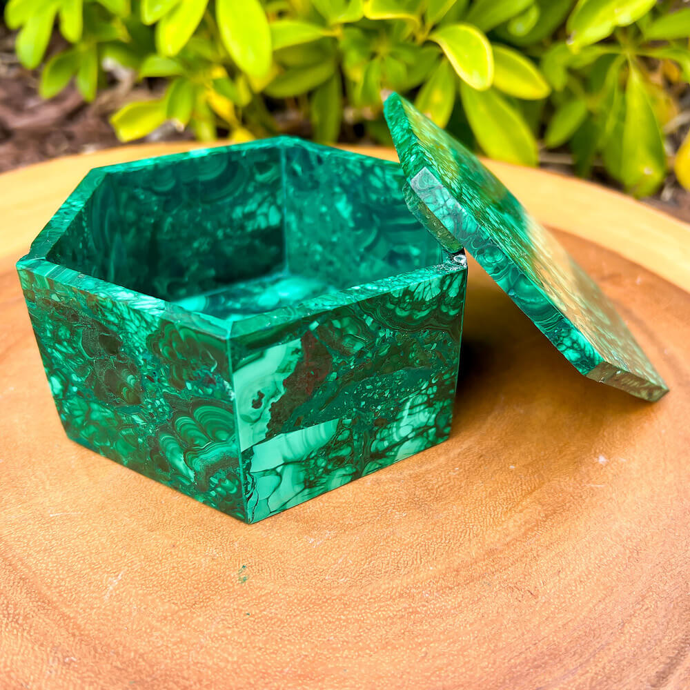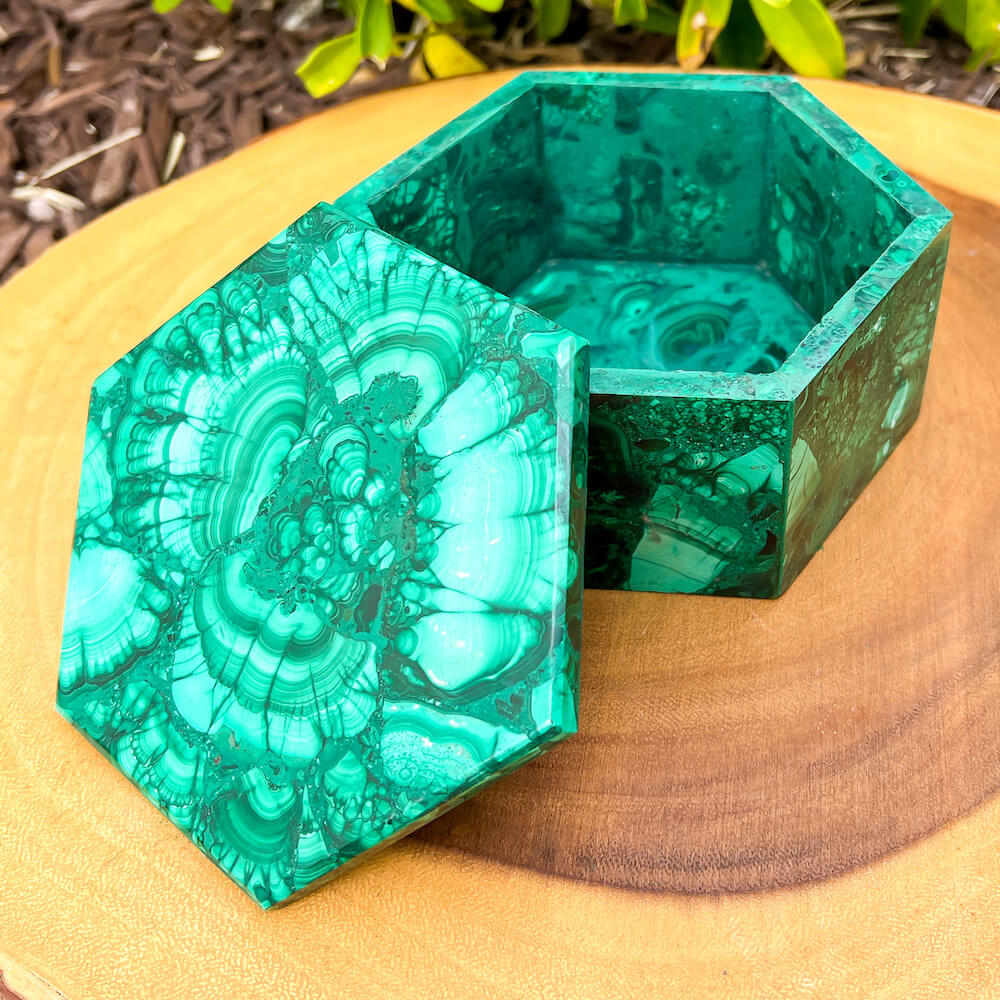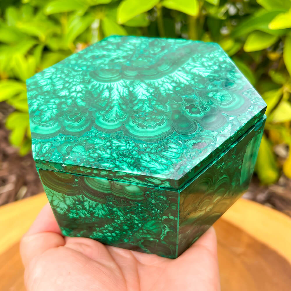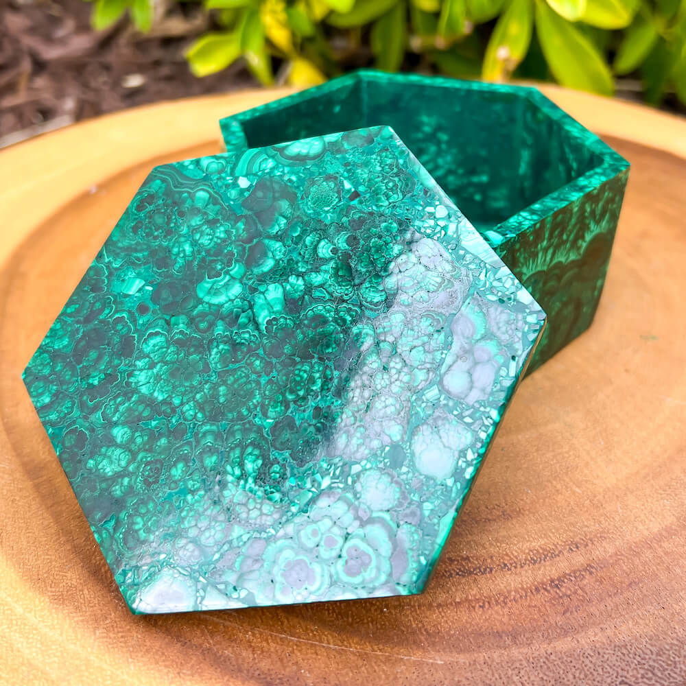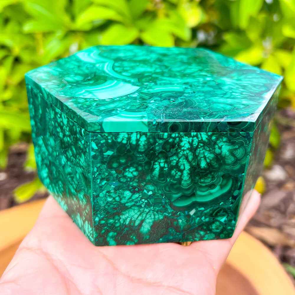 Joyero con Tapa de Malaquita Genuina - Hexágono