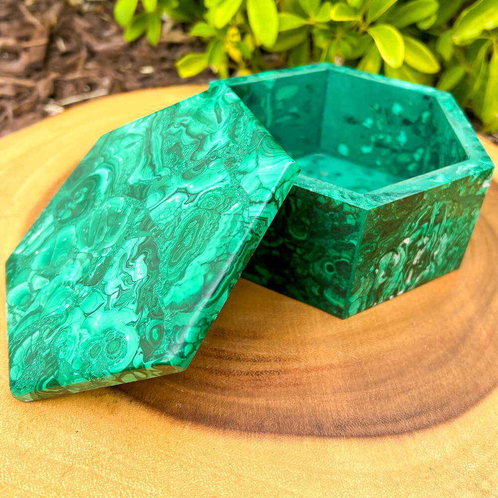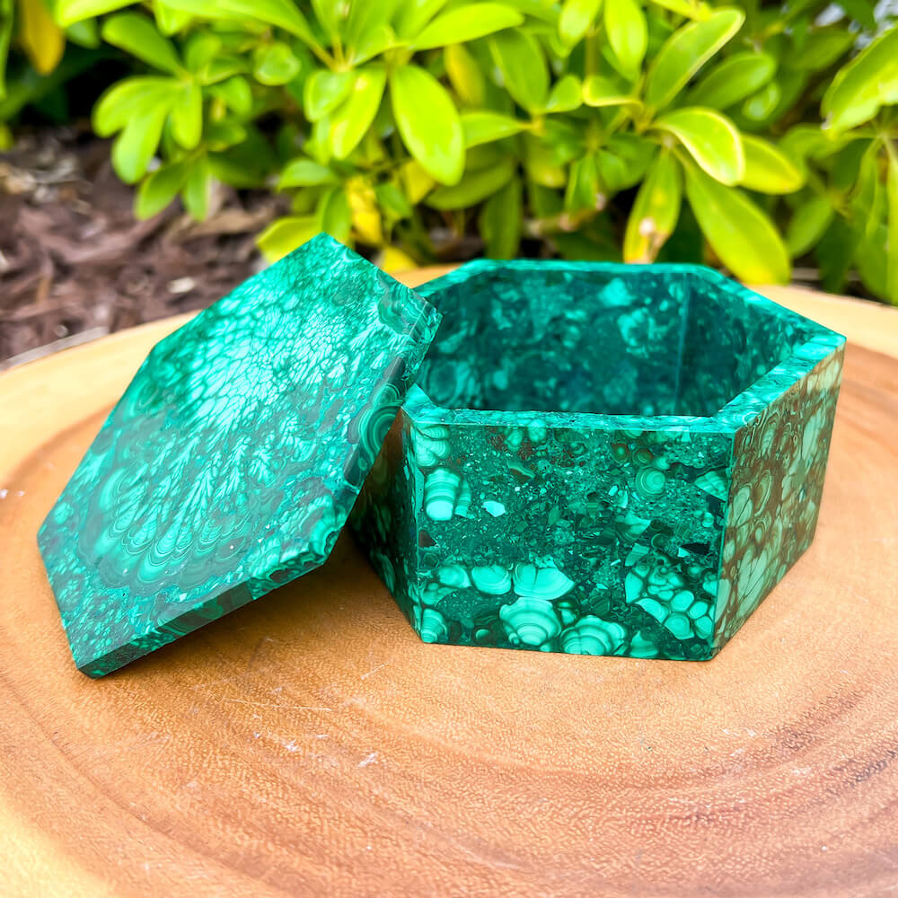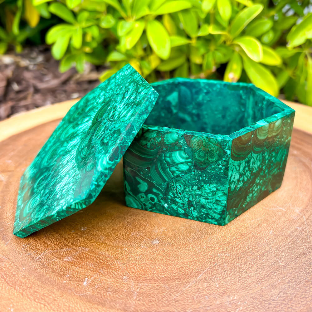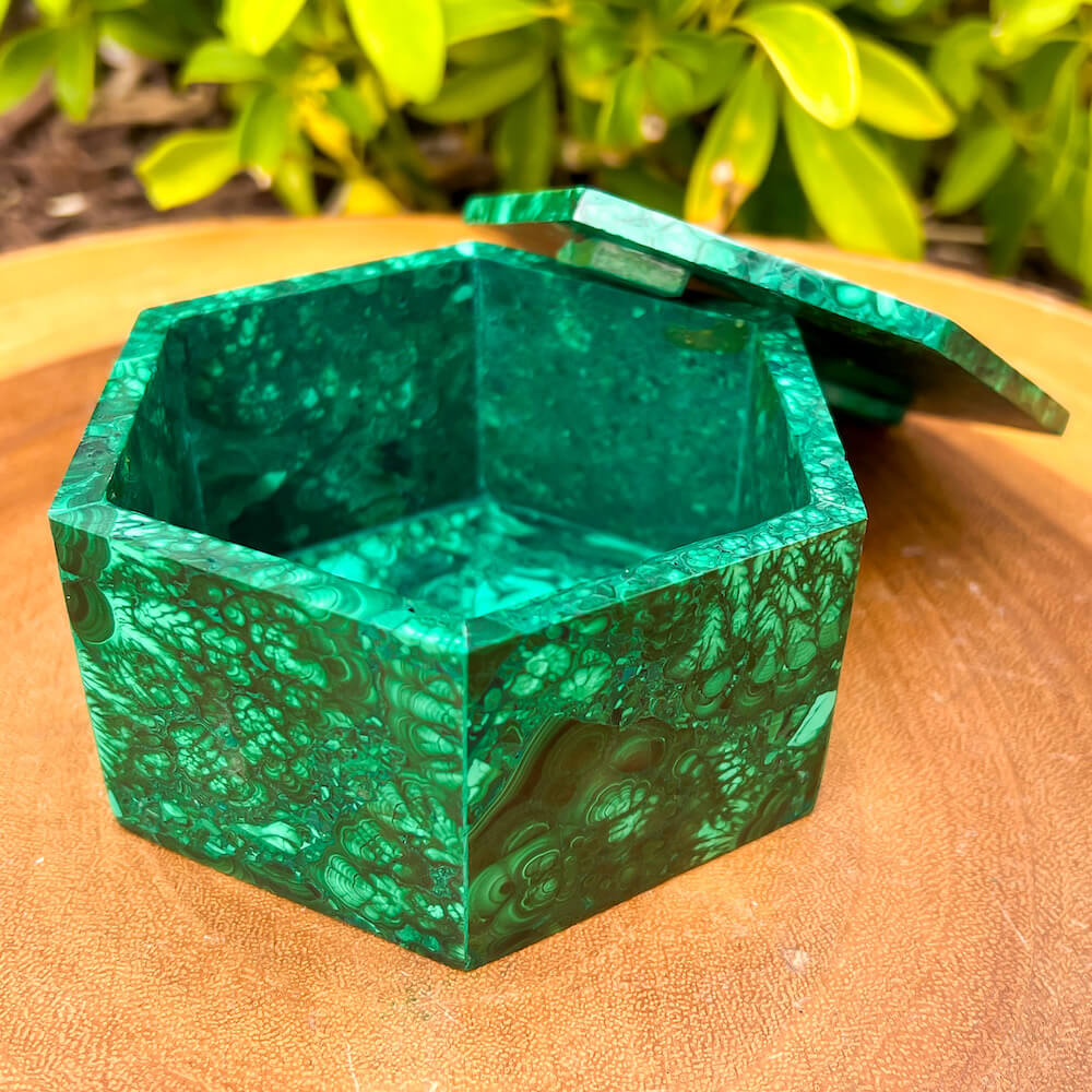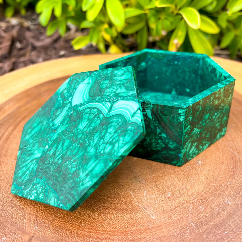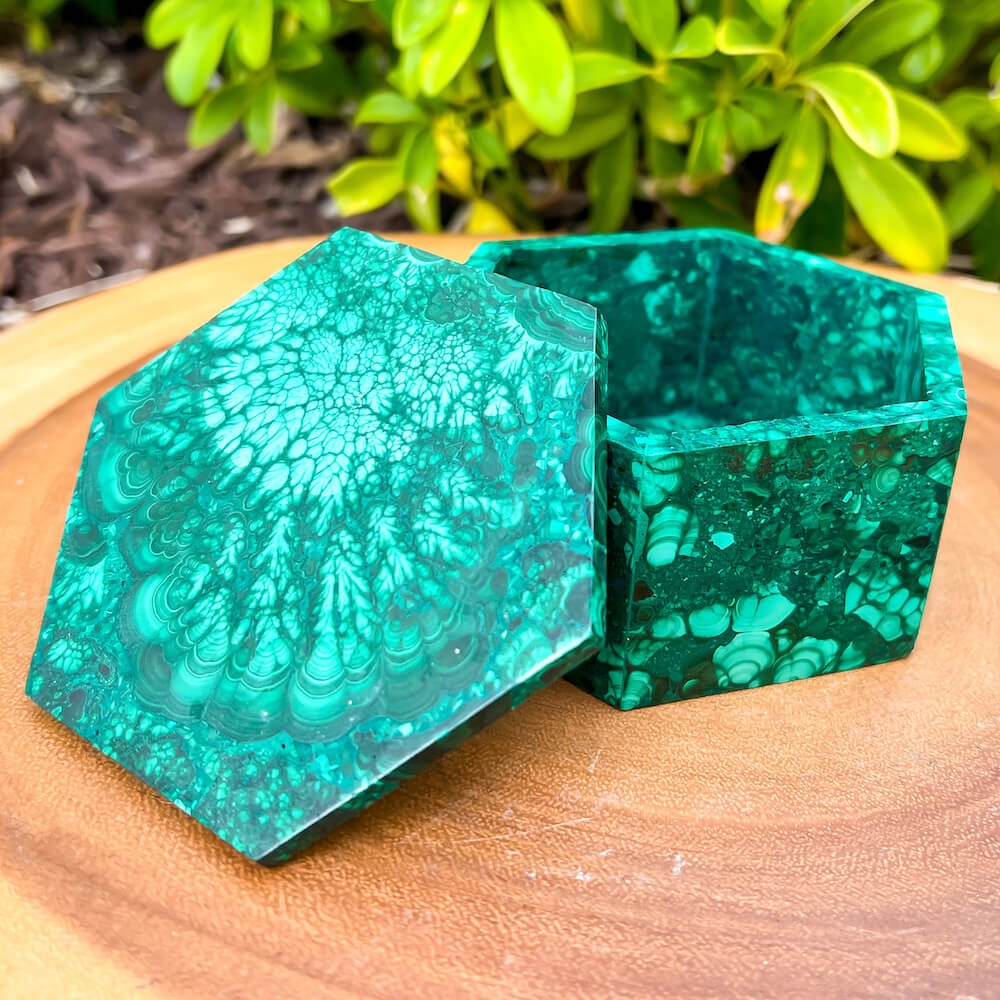 Joyero con Tapa de Malaquita Genuina - Hexágono