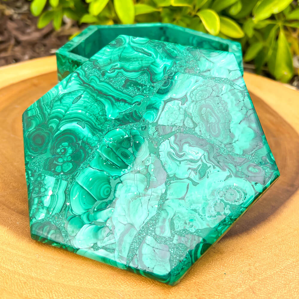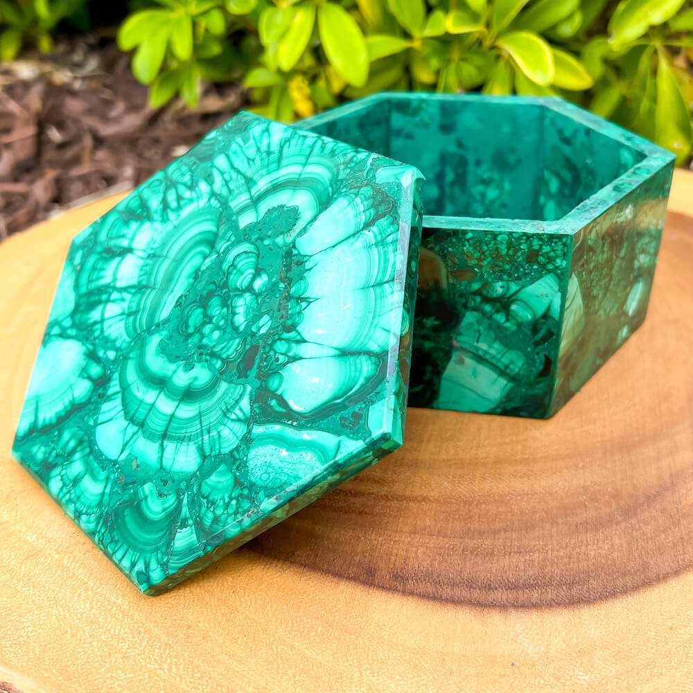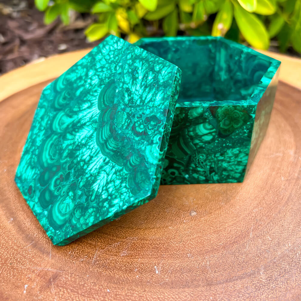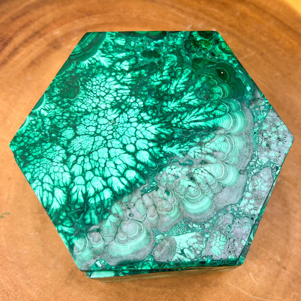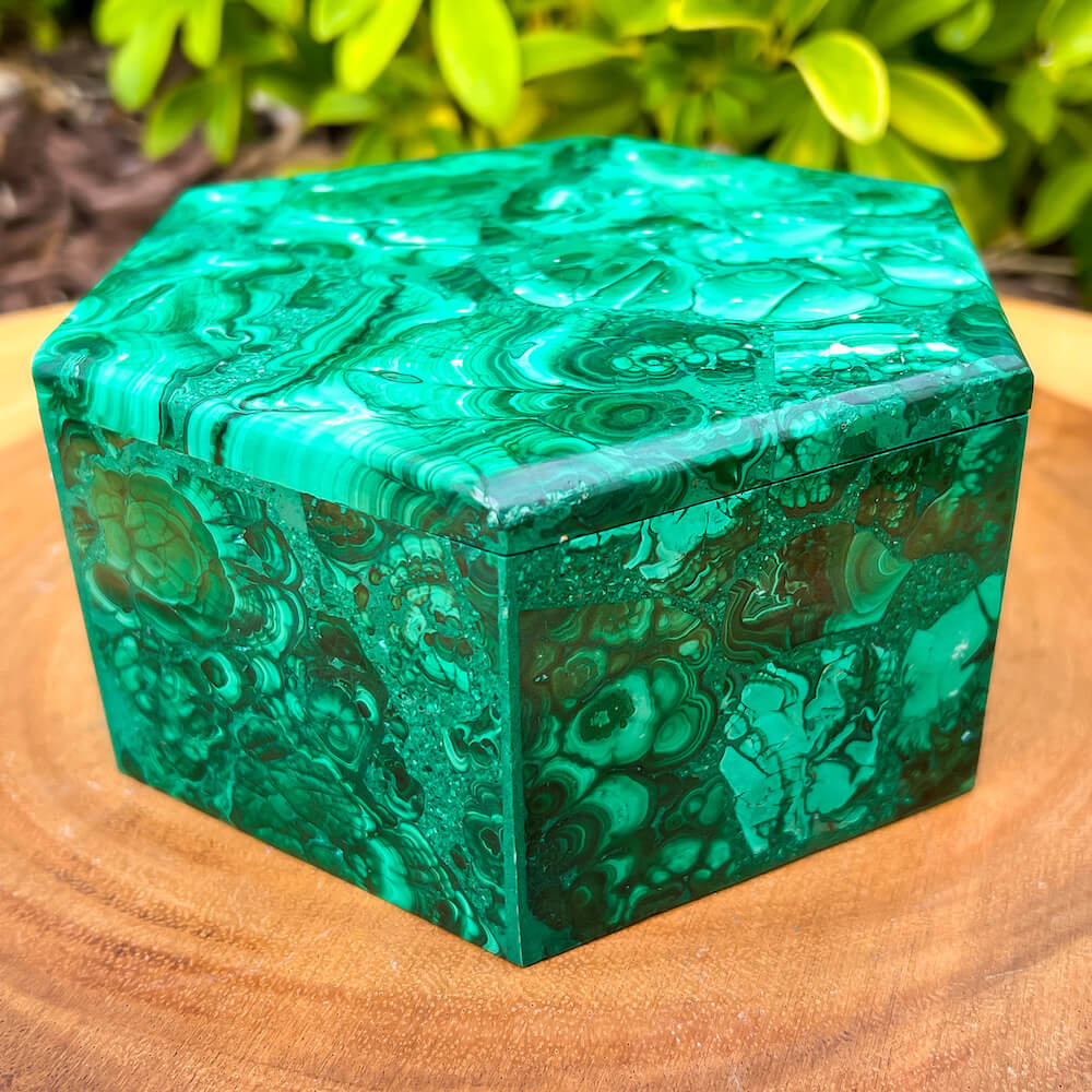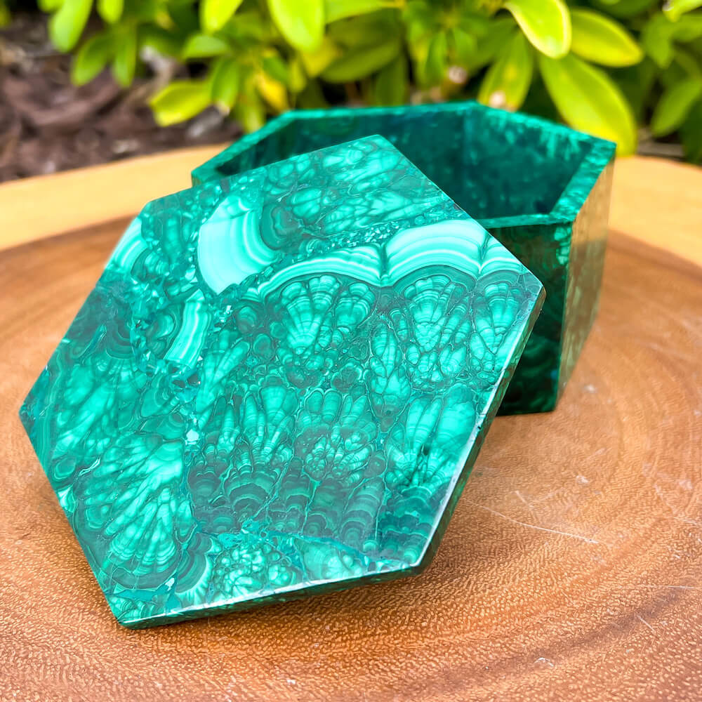 Joyero con Tapa de Malaquita Genuina - Hexágono